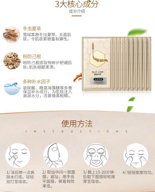 【面膜】*蓝色之恋虫草面膜养肤滋润保湿补水面膜10片盒装