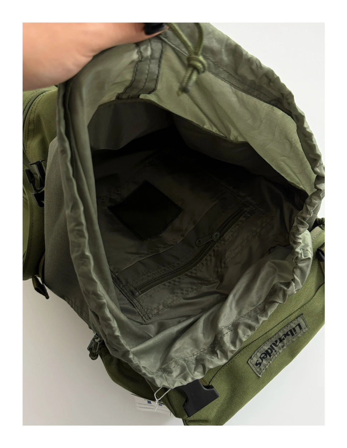 黑色军绿两色可选,100%尼龙面料大容量主隔层配翻盖拉绳