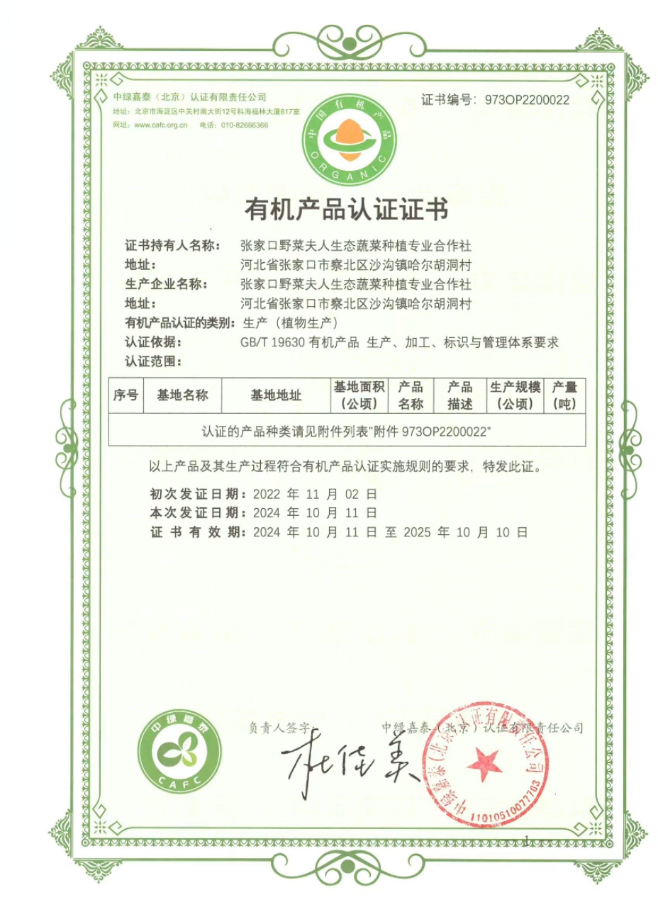 2006年在北京蔬菜批发市场打拼的李鹏飞回乡创业,成立了野菜夫人生态农场,目前农场种植面积300亩,19年来一直倡导环境友好式耕种模式,采用草原散养羊粪发酵肥,不用化肥、农药、除草剂,人工锄草 ,不用生长激素,遵循作物生长规律,合理轮作防止病虫害及适当季节休耕养地。