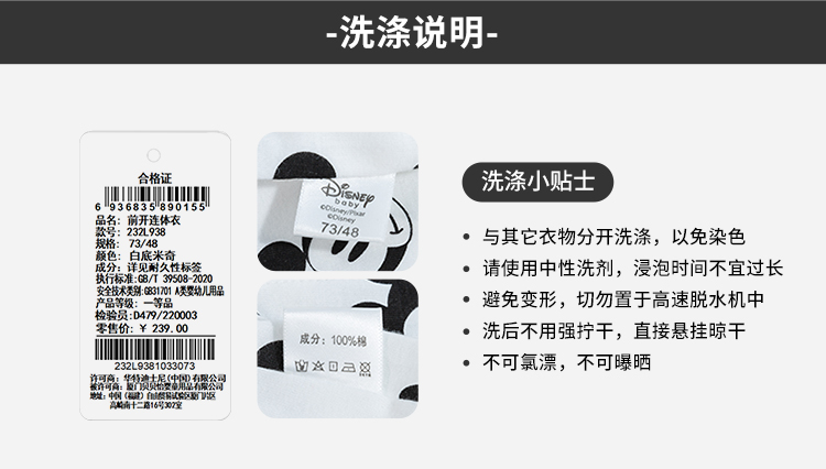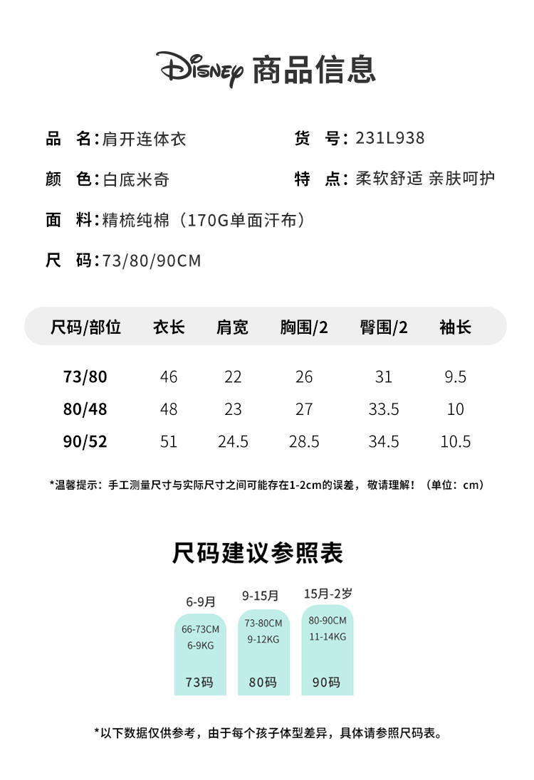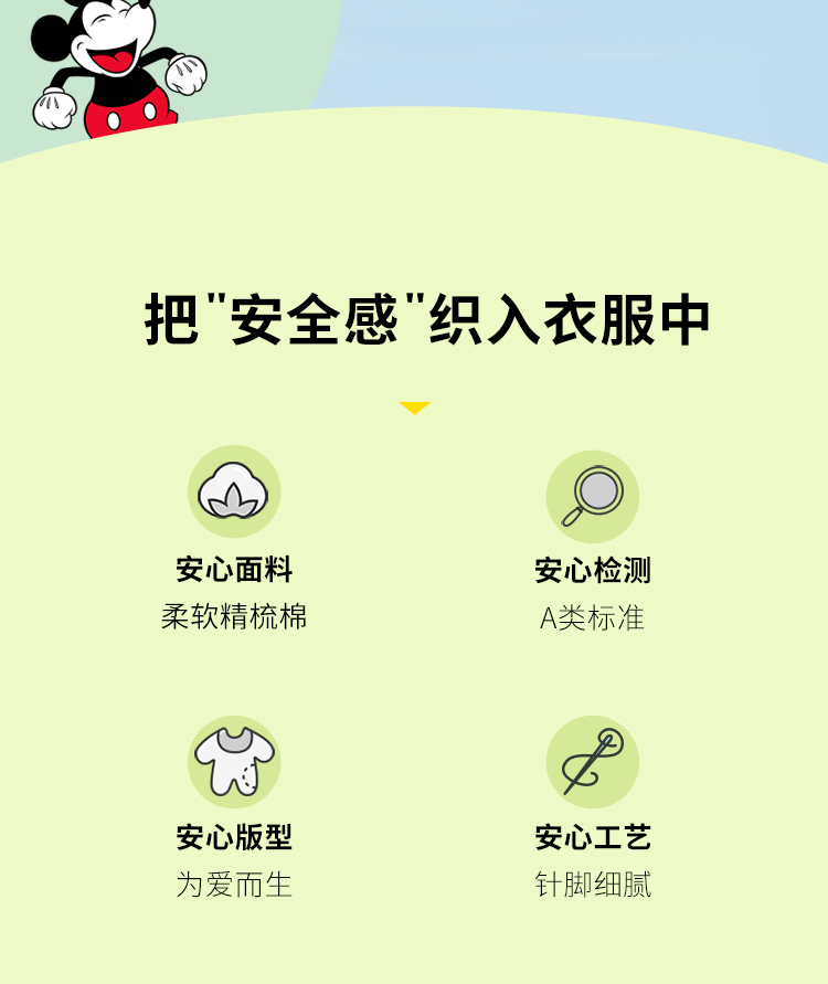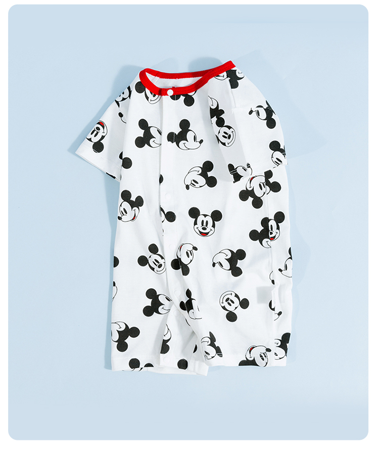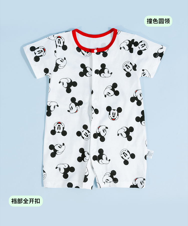 迪士尼童装男童纯棉前开连体衣夏季亲肤舒适米奇宝宝新生儿哈衣