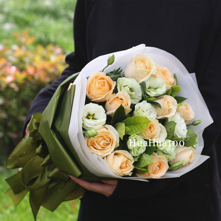 一心一意F款丨11朵香槟玫瑰加桔梗/束