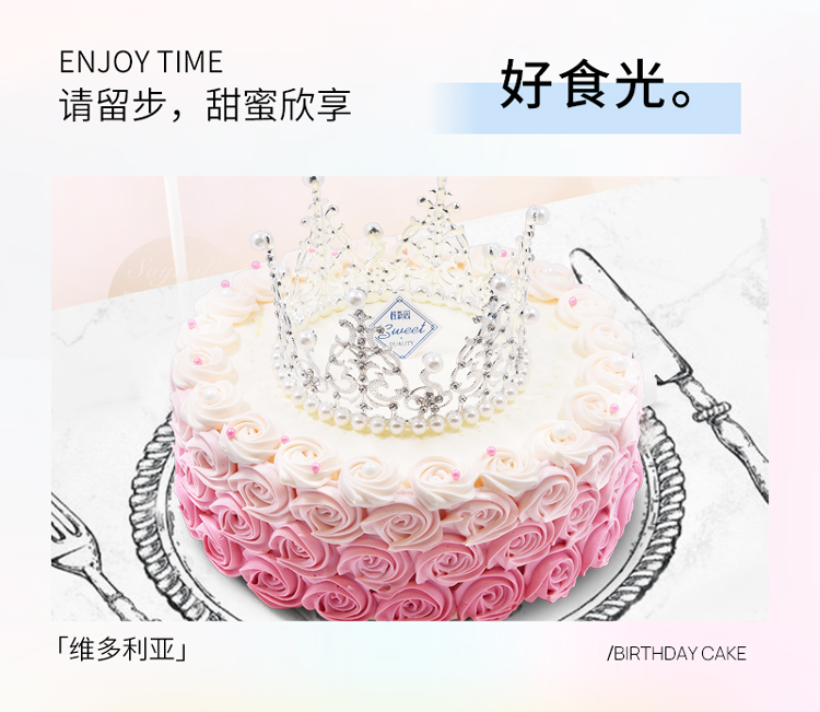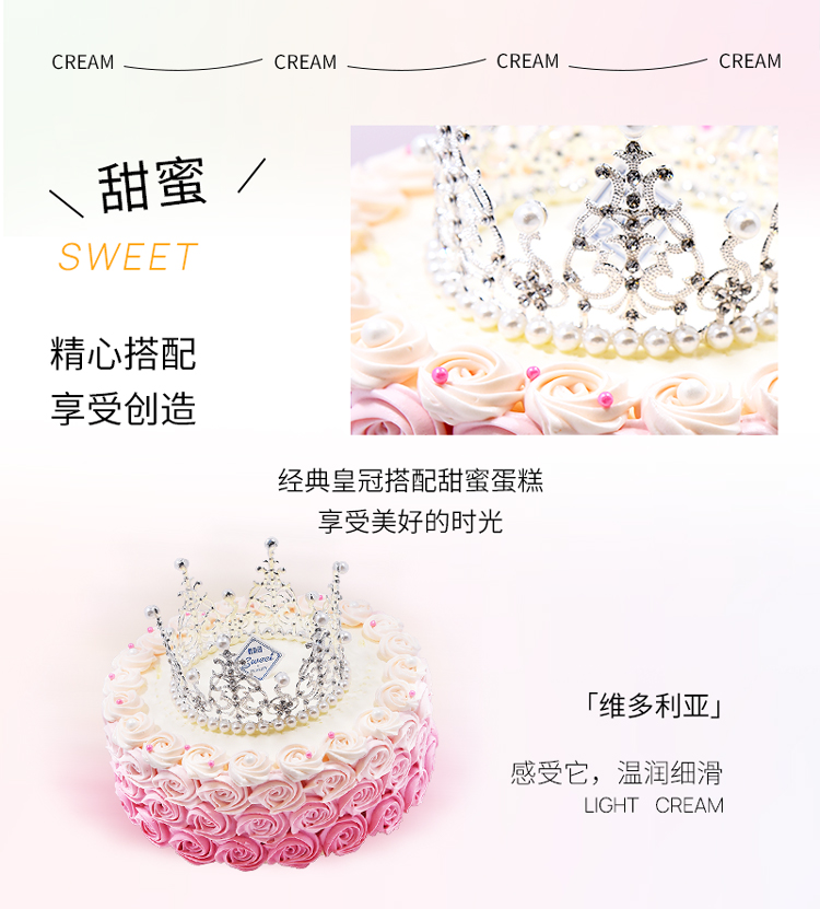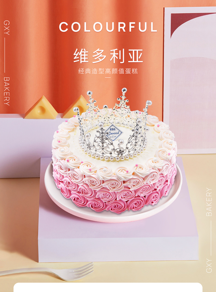 【维多利亚 】特色创意生日蛋糕—纯乳脂与牛奶奶油混合,夹层口味升级,细腻香甜