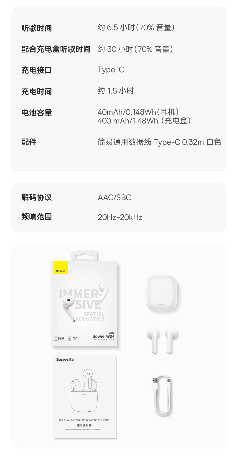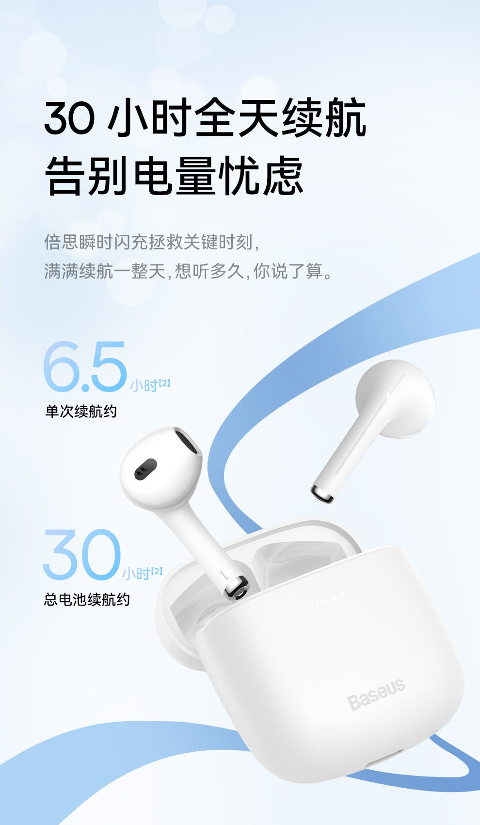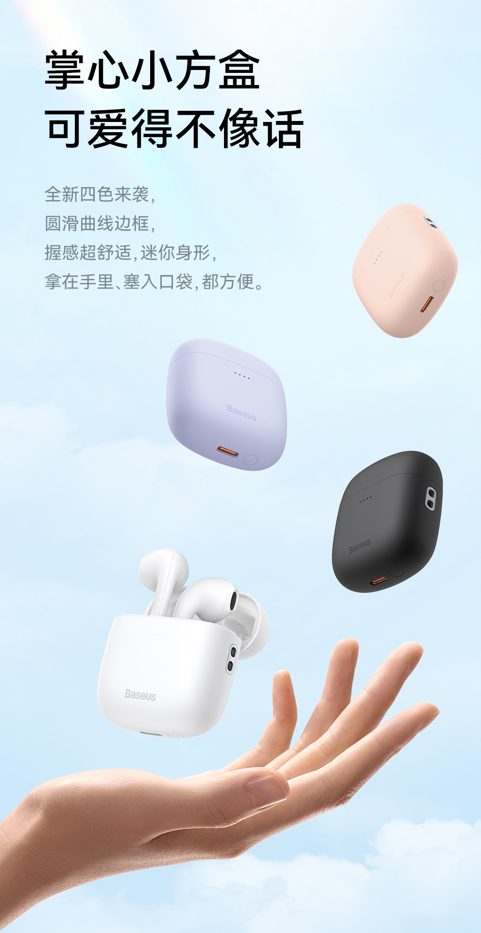 倍思 Bowie系列 W04 蓝牙5.3 真无线蓝牙耳机 半入耳运动适用苹果华为小米