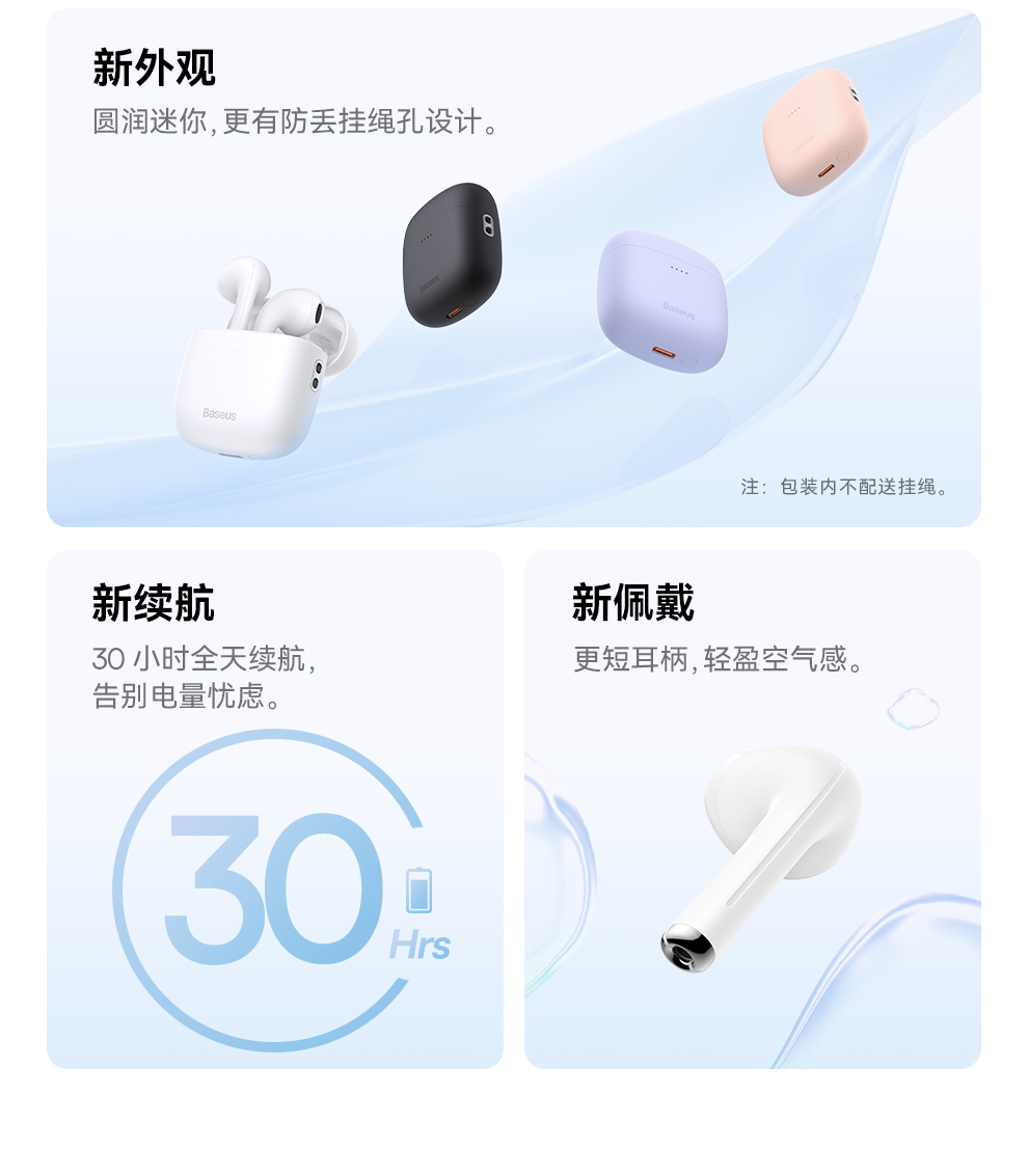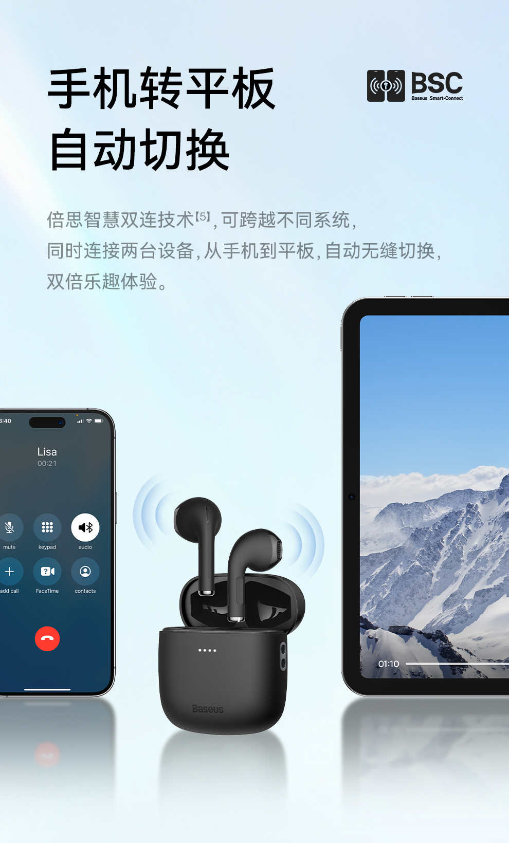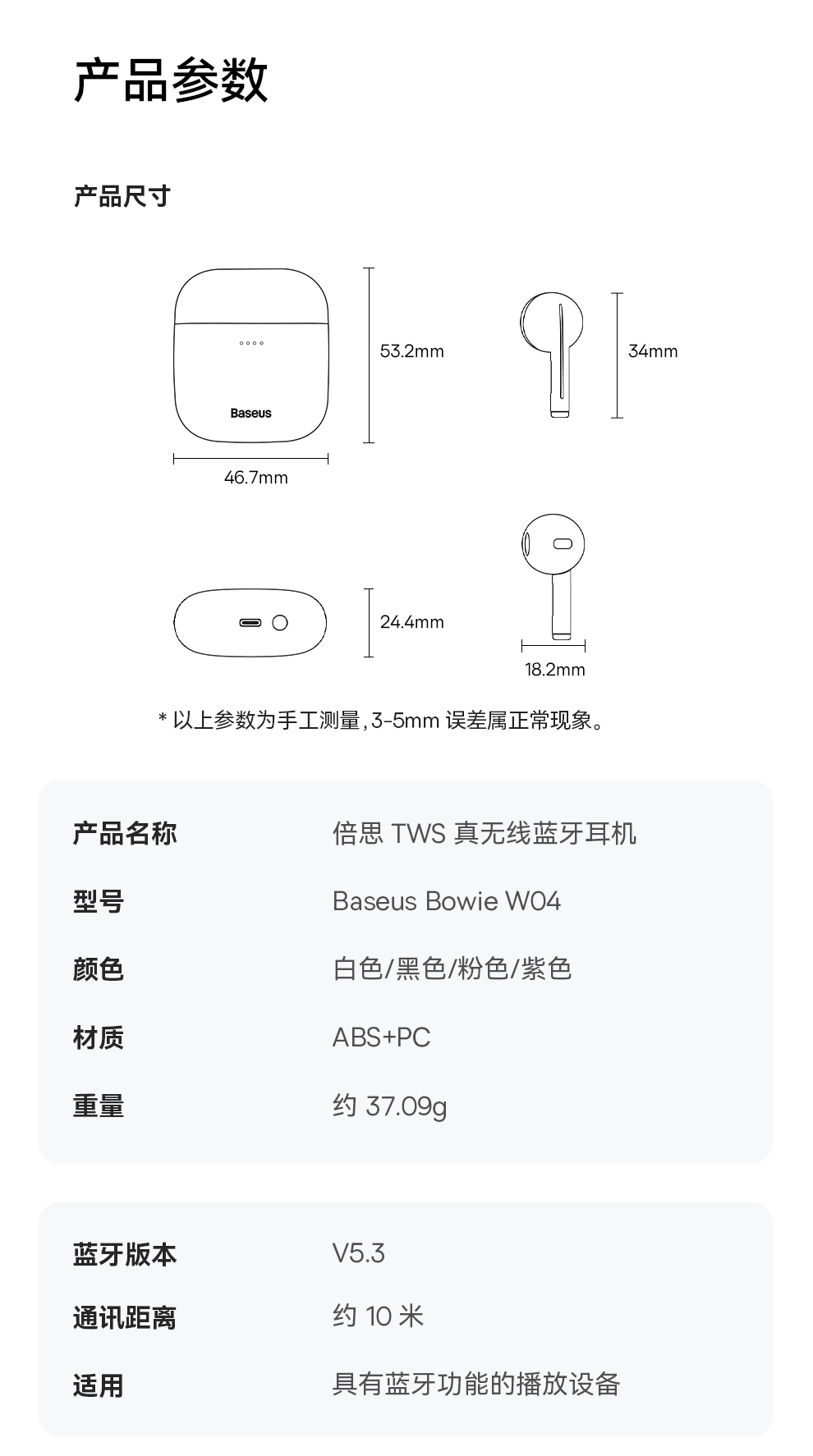 倍思 Bowie系列 W04 蓝牙5.3 真无线蓝牙耳机 半入耳运动适用苹果华为小米