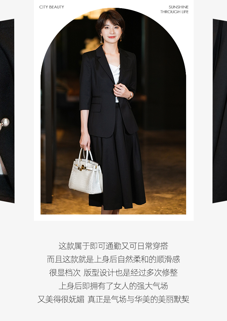 高级感时尚套装女早秋新款赫本风职业西装半身裙两件套