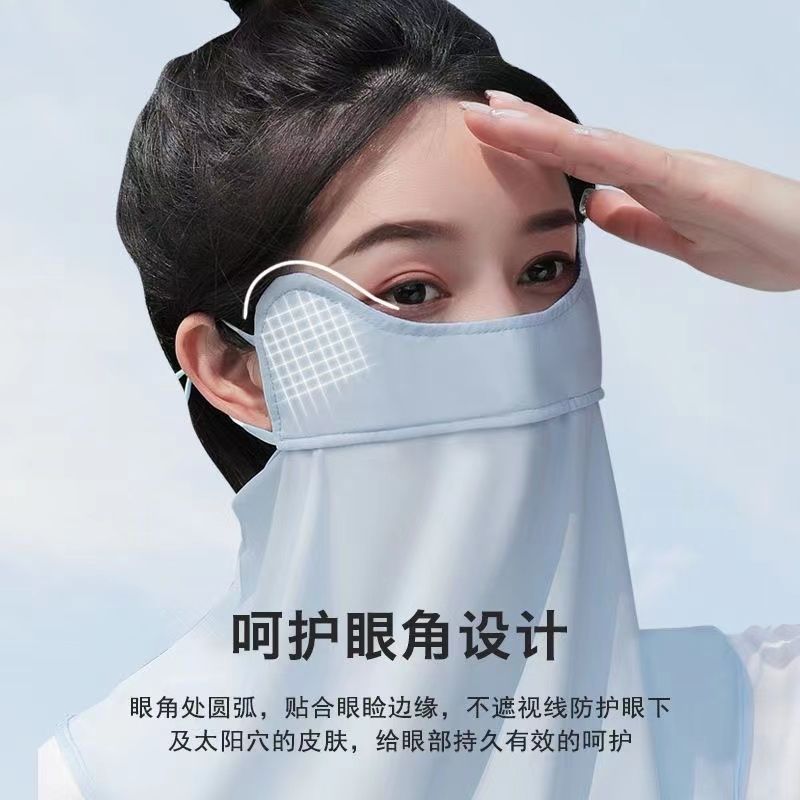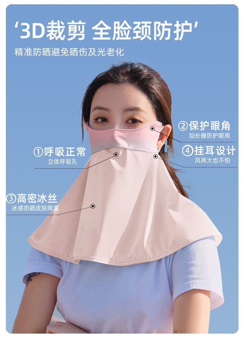 夏季冰丝薄款腮红渐变色防晒护颈面罩女防紫外线遮全脸口罩护眼角