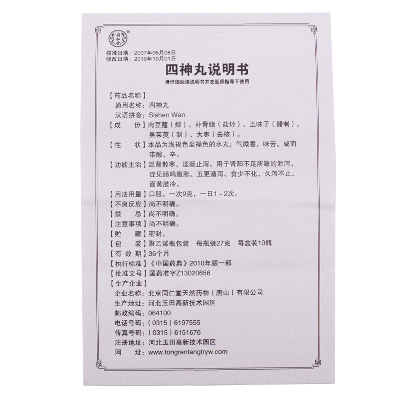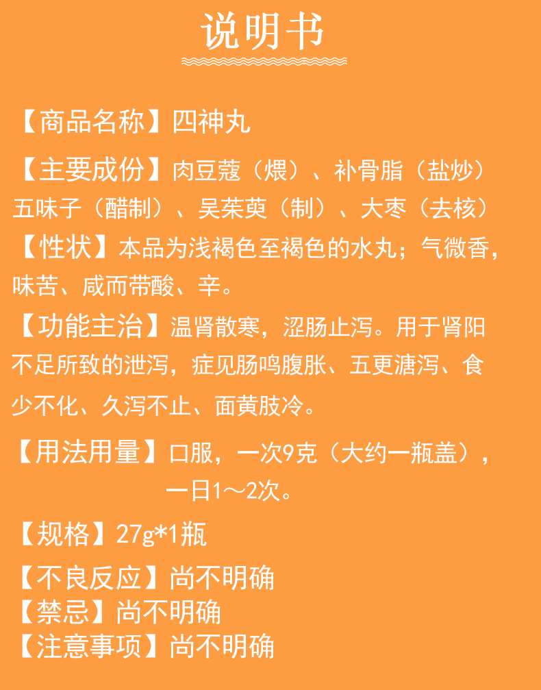 同仁堂 四神丸 27g/瓶 温肾散寒 涩肠止泻 用于肾阳不足引起的肠鸣腹胀食少不化久泻不止面黄肢冷