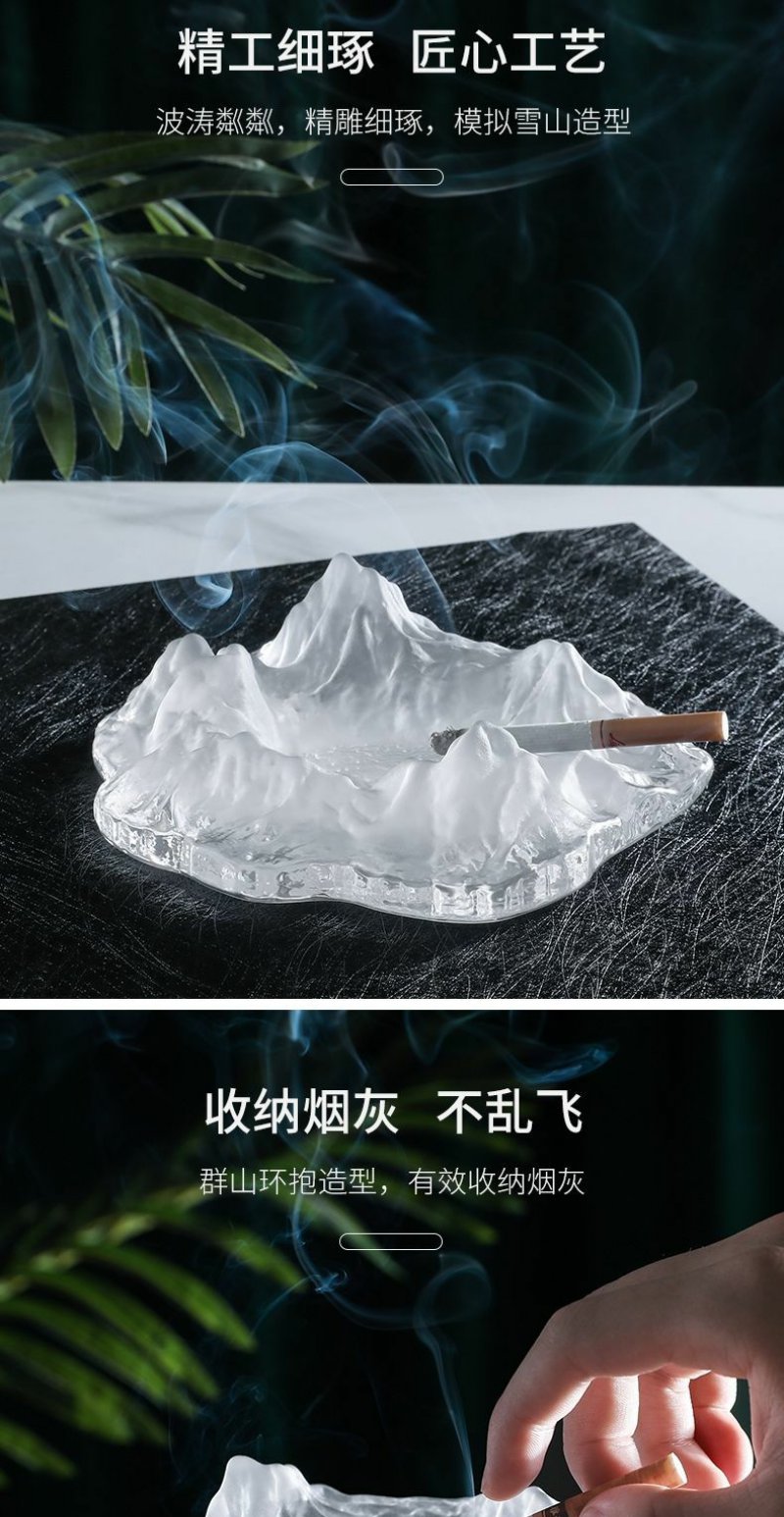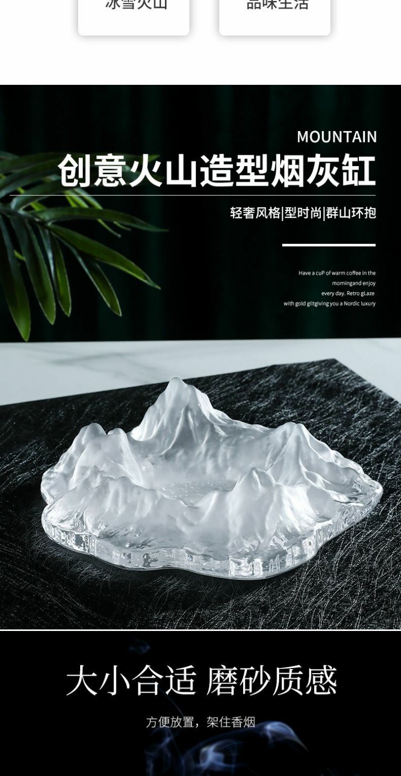 玻璃烟灰缸家用礼物客厅高颜值创意个性潮流复古轻奢琉璃冰山