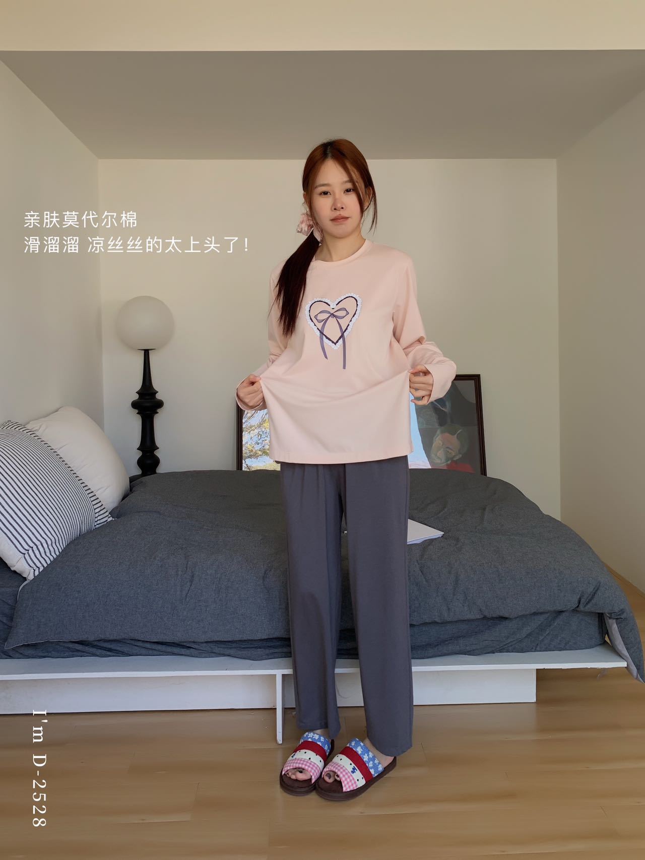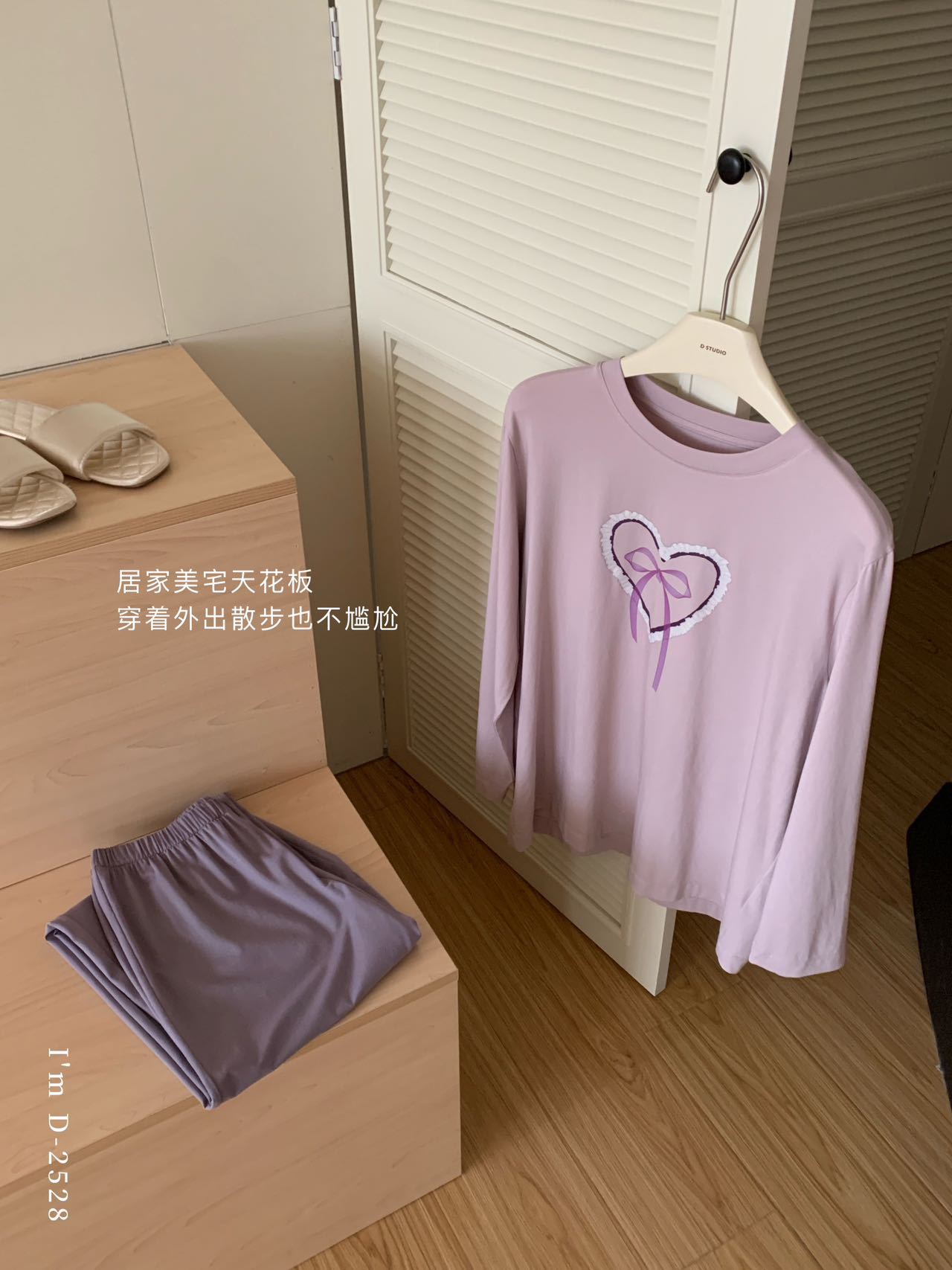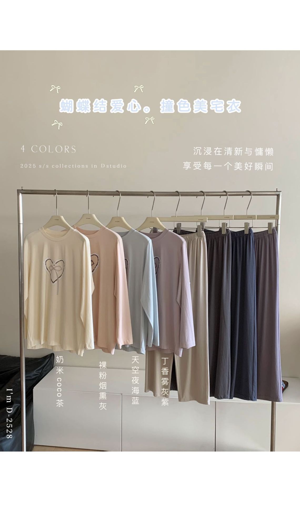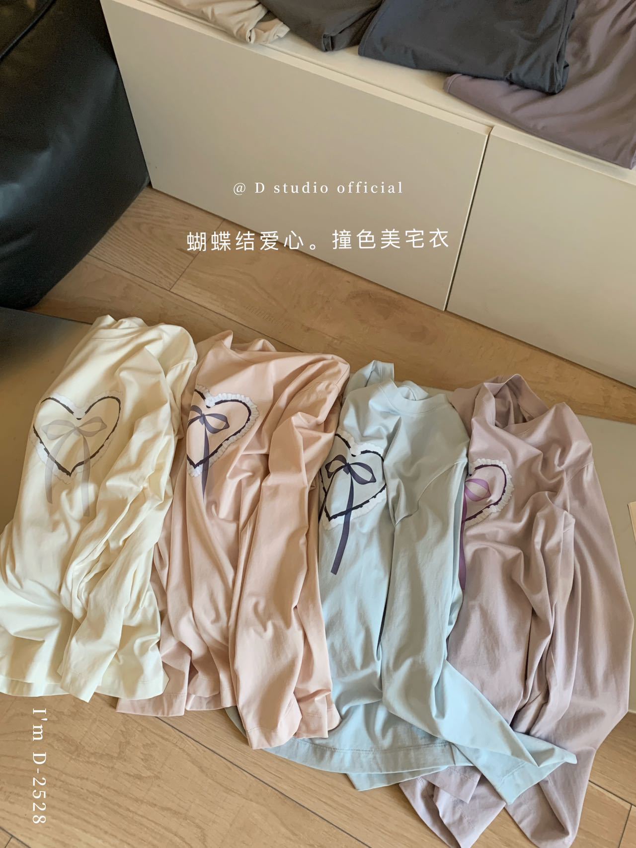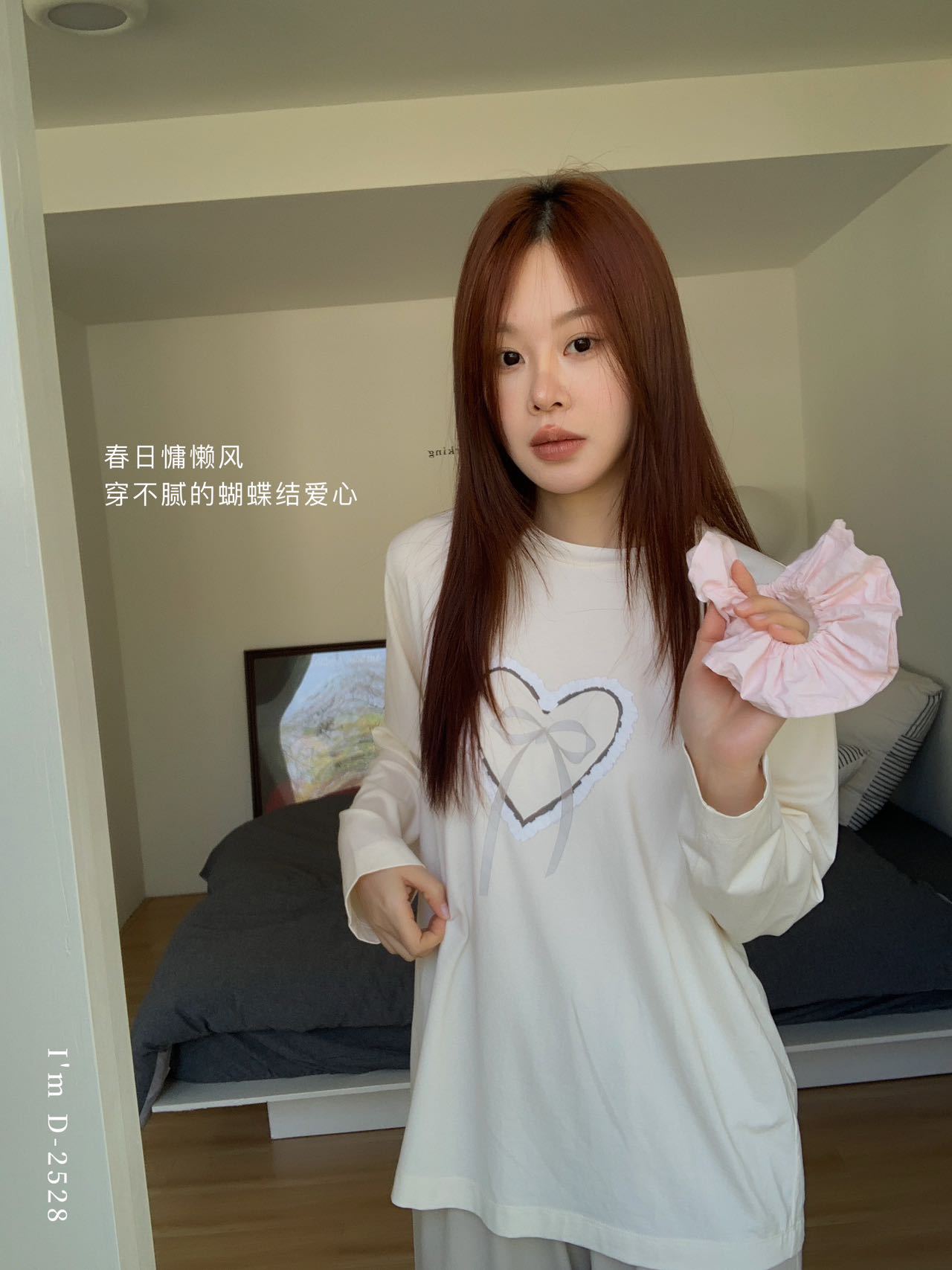 【少女心爆棚】2025春新款家居服女蝴蝶结爱心撞色美宅衣可外穿睡衣遛弯衣
