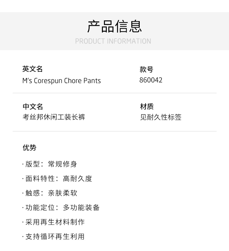 HOUDINI胡丁尼Corespun Chore考丝邦25户外男秋新款休闲工装长裤 860042