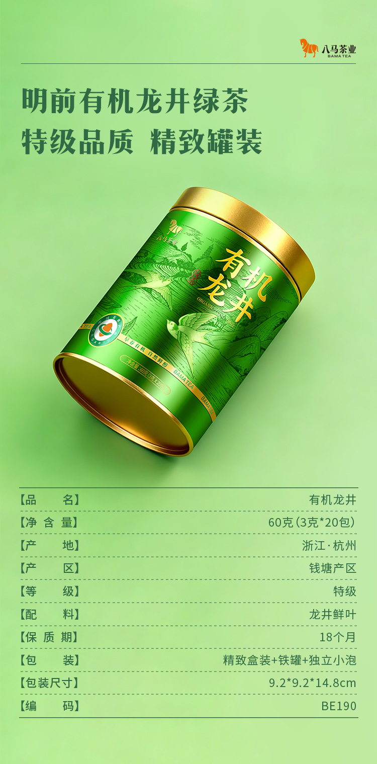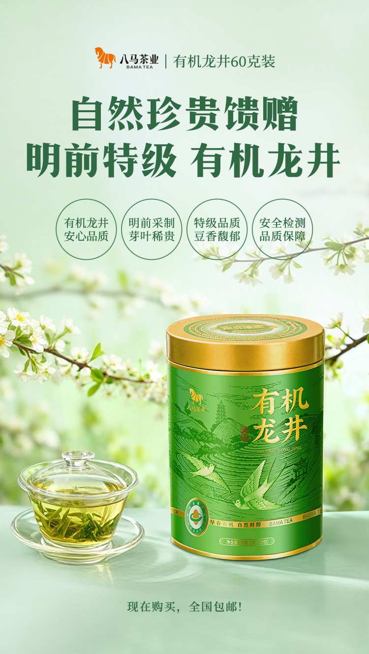【2026年春茶】八马茶业丨春鲜·有机龙井明前龙井特级品质60g
