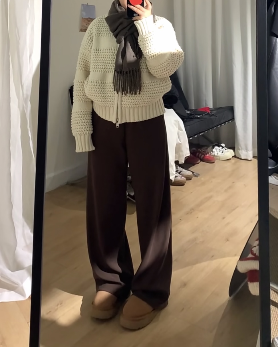 面料超舒服 采用羊绒一体的针织面料,附带发热纤维 外层山羊绒,腰部松紧腰抽绳设计,版型宽松直筒 日常穿搭,运动都可以 ,百搭不挑人!