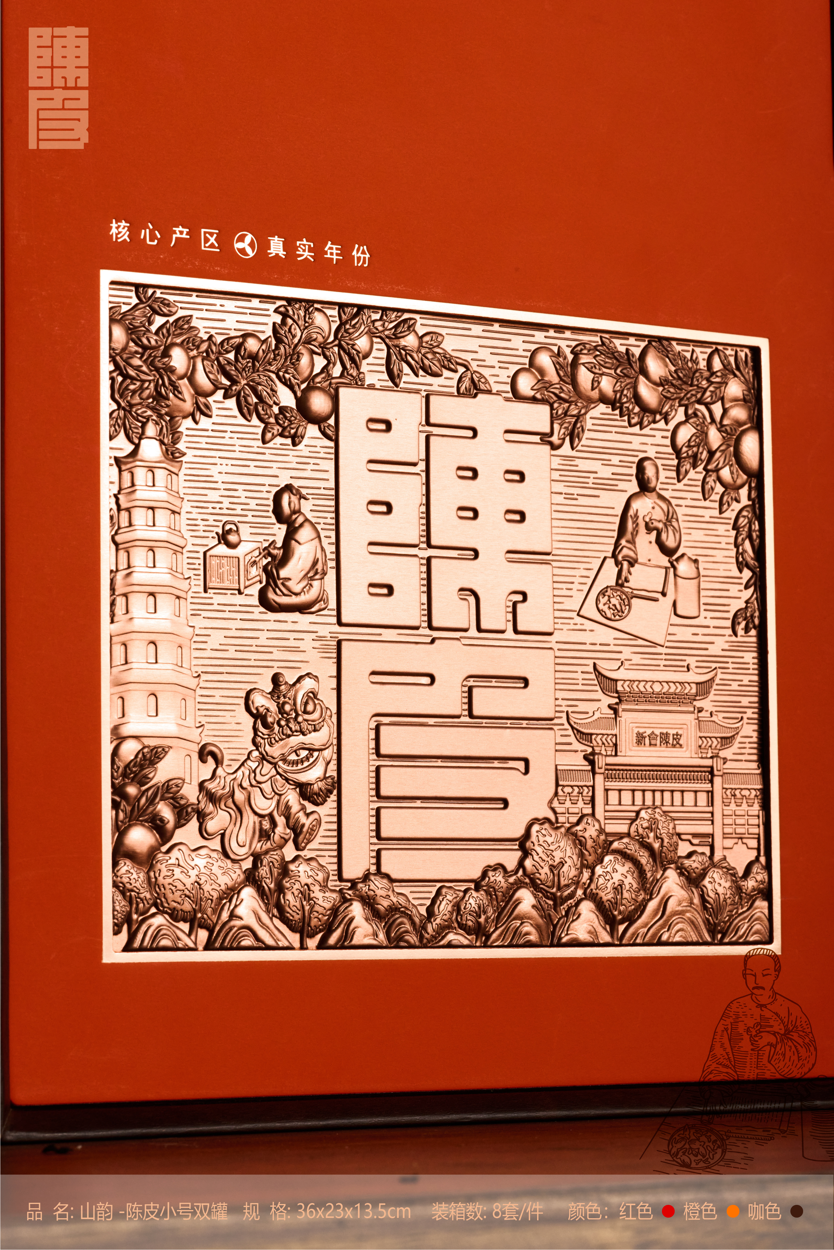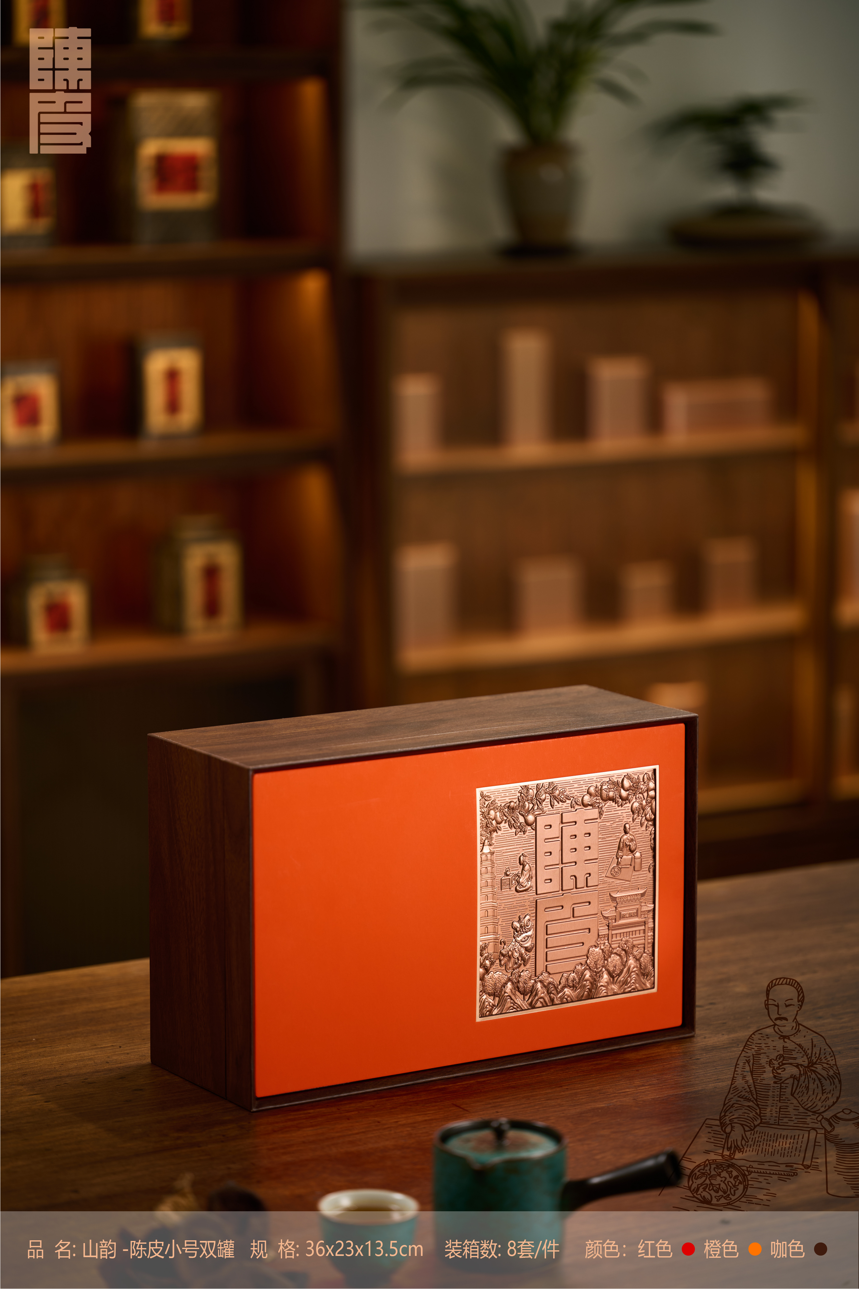 山韵【陈皮双玻璃罐小号 红色】60元一套/一箱8套