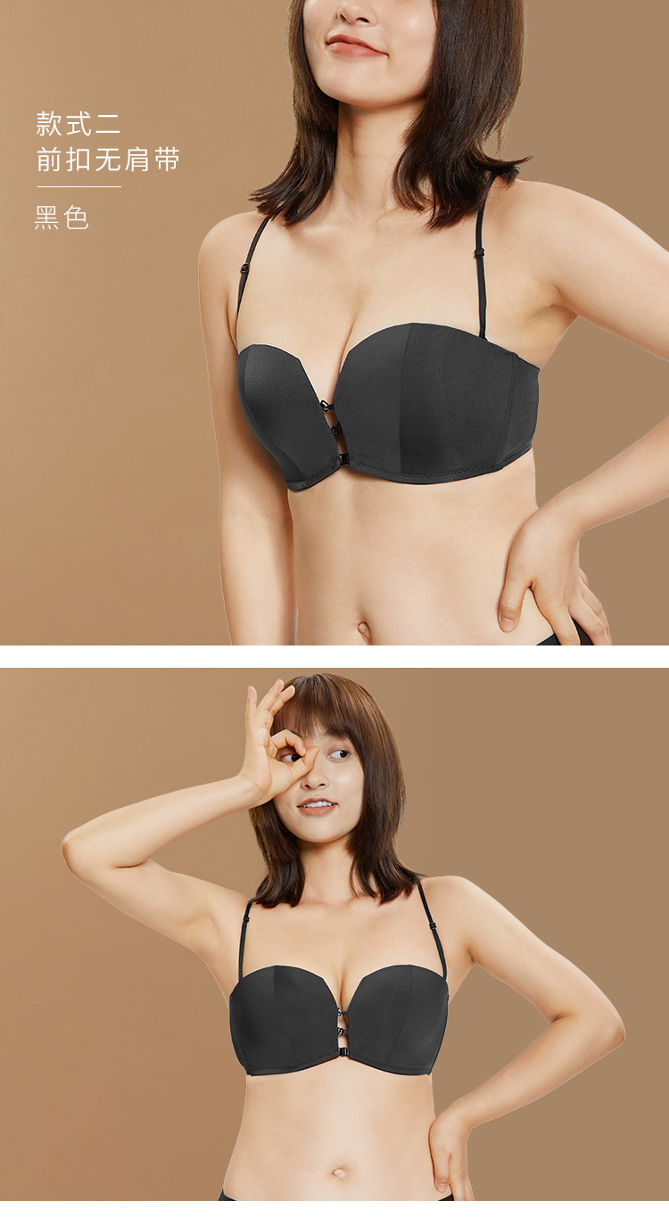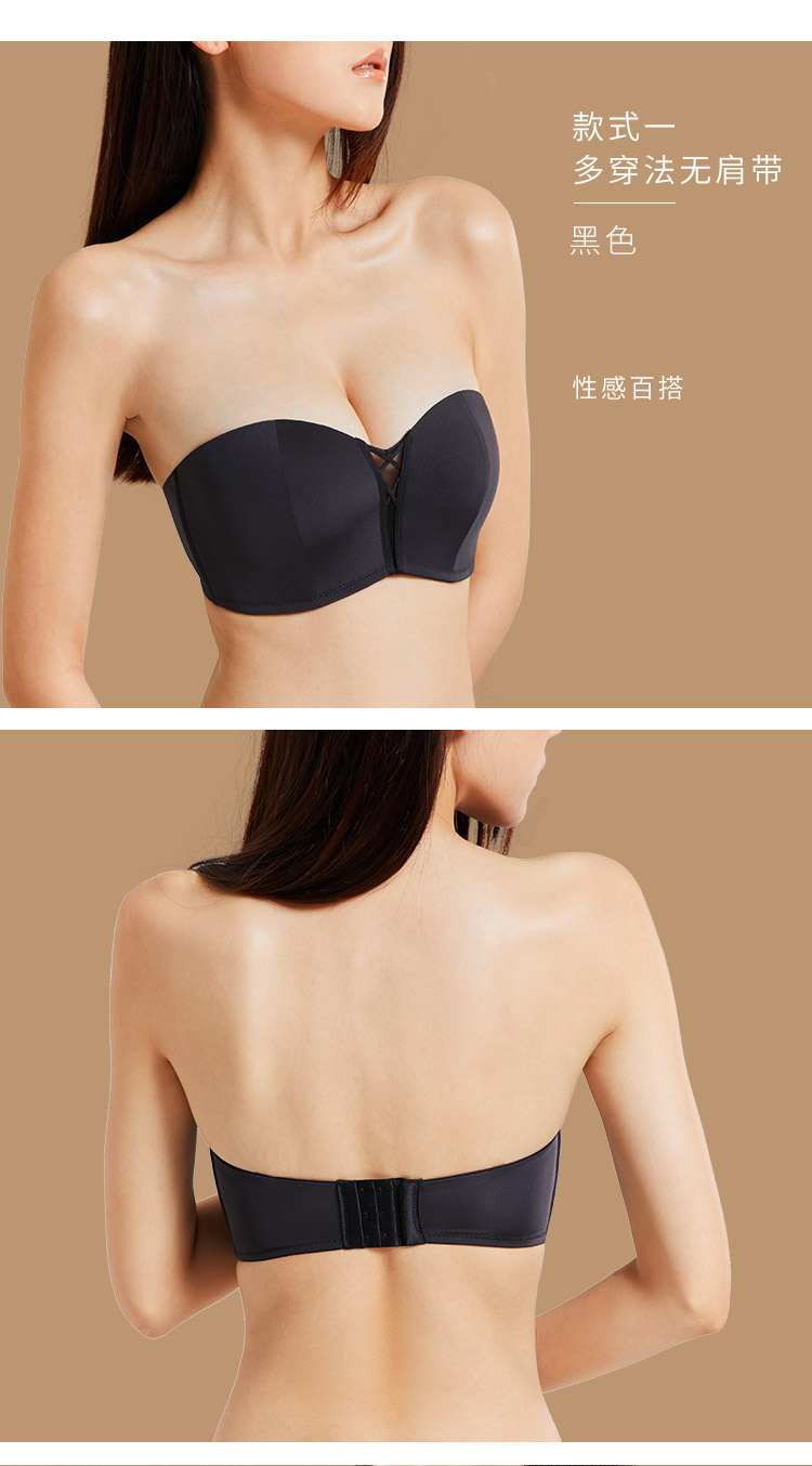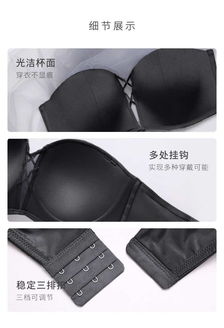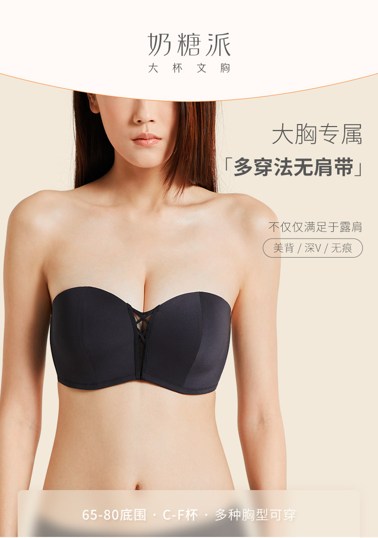 奶糖派大杯文胸前后扣多穿法光面抹胸文胸无肩带美背露背大胸内衣
