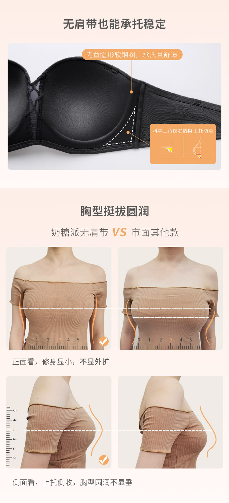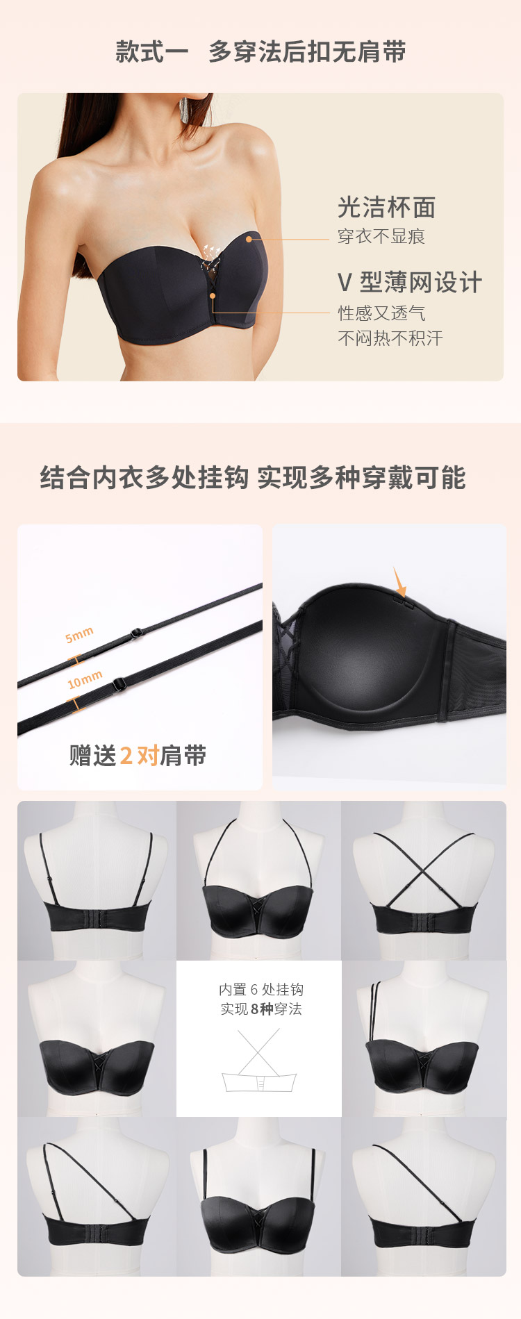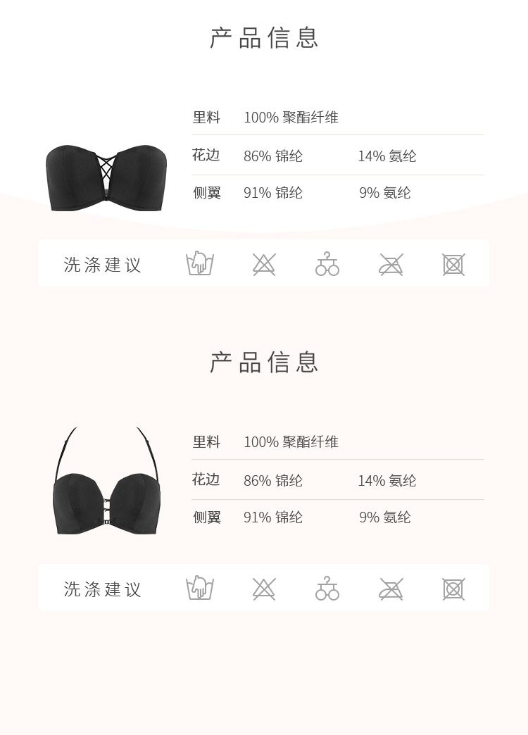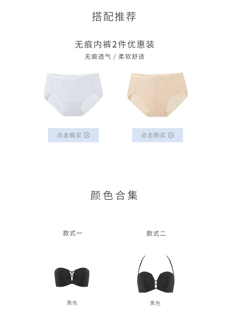 奶糖派大杯文胸前后扣多穿法光面抹胸文胸无肩带美背露背大胸内衣
