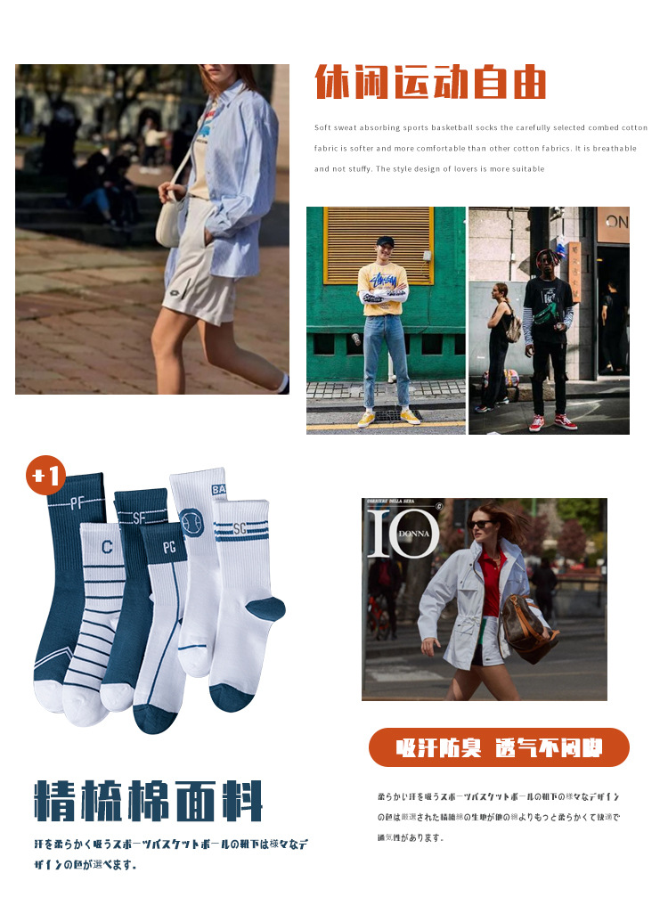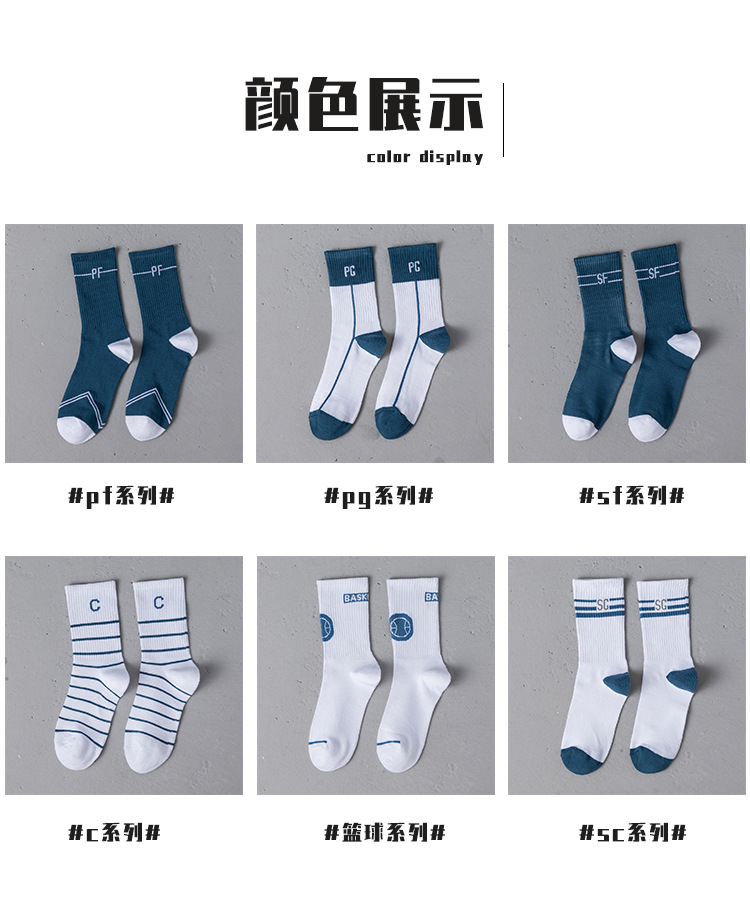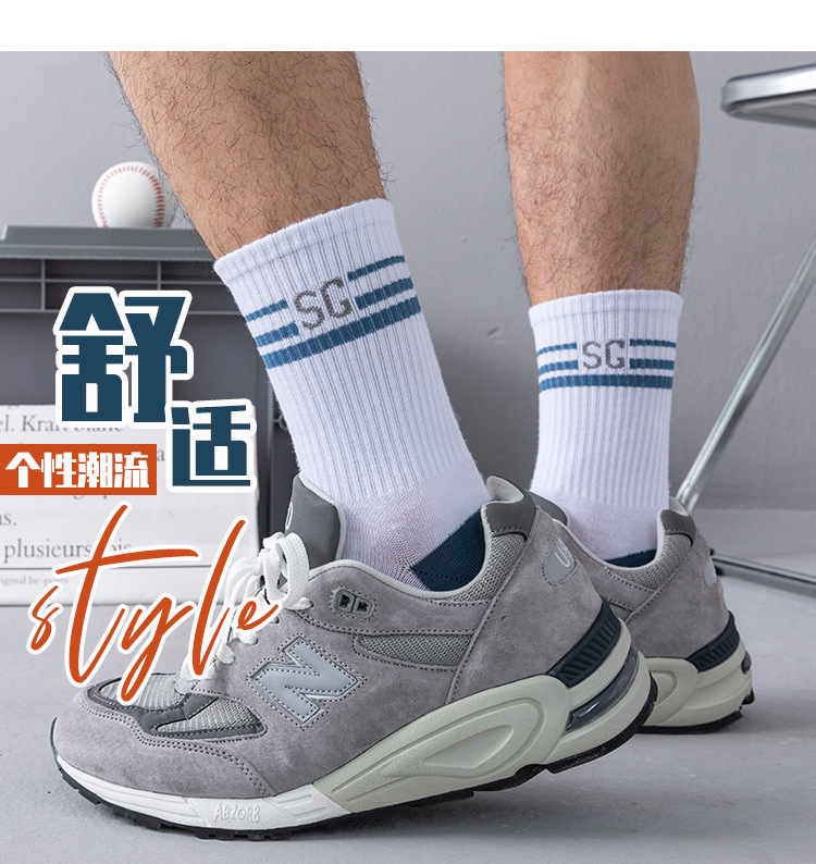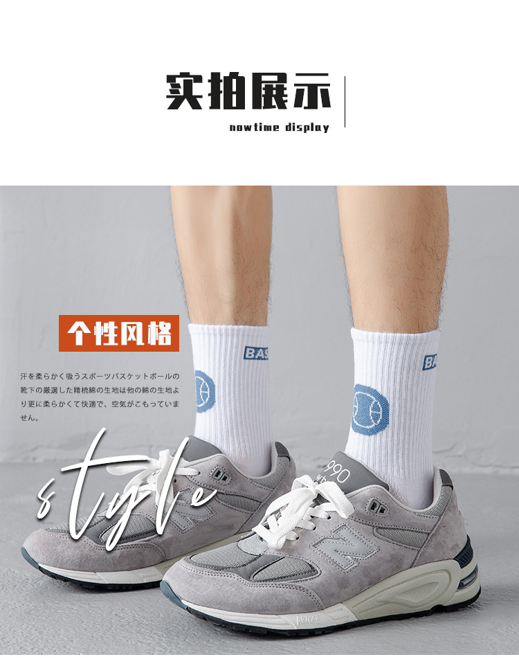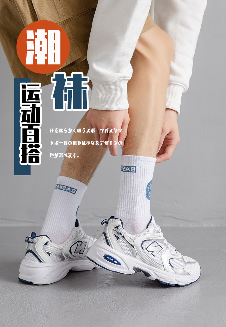 【日用百货】运动袜子男中筒袜秋冬款ins潮棉质吸汗透气篮球袜字母