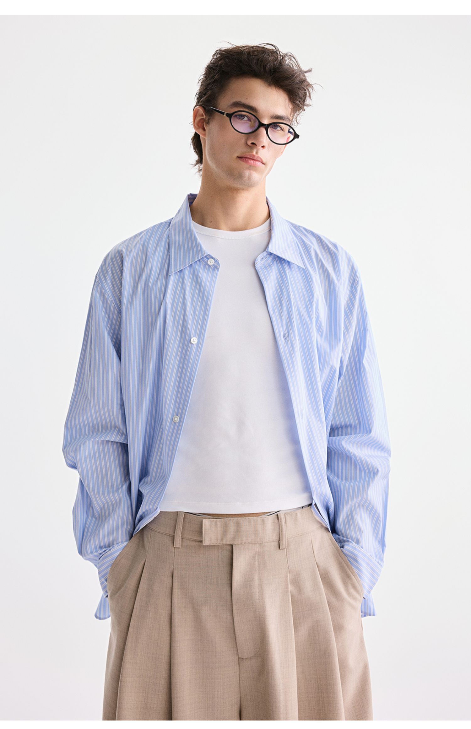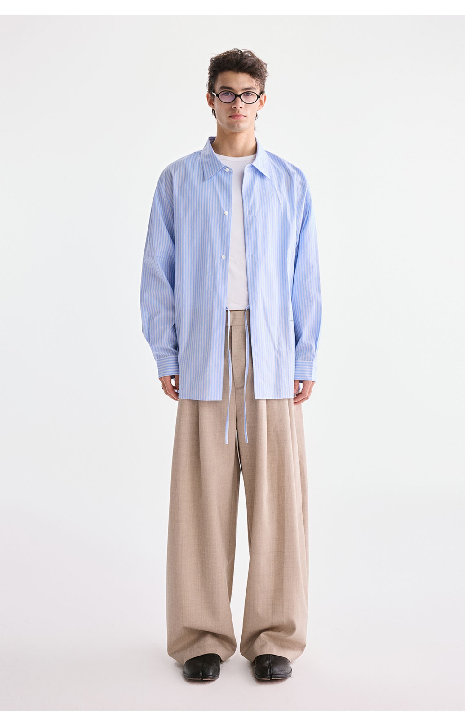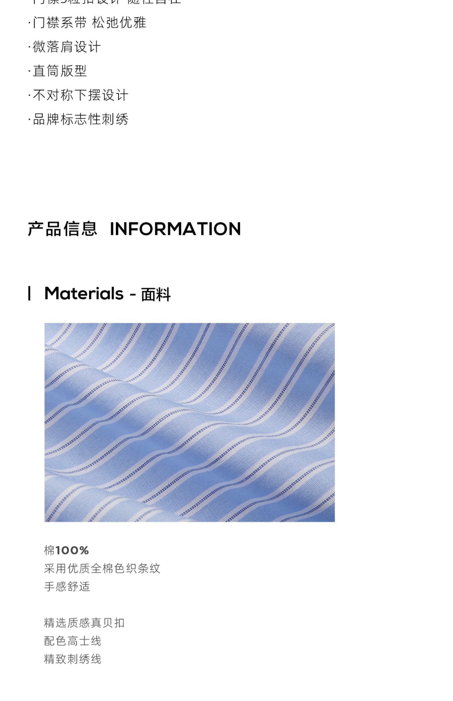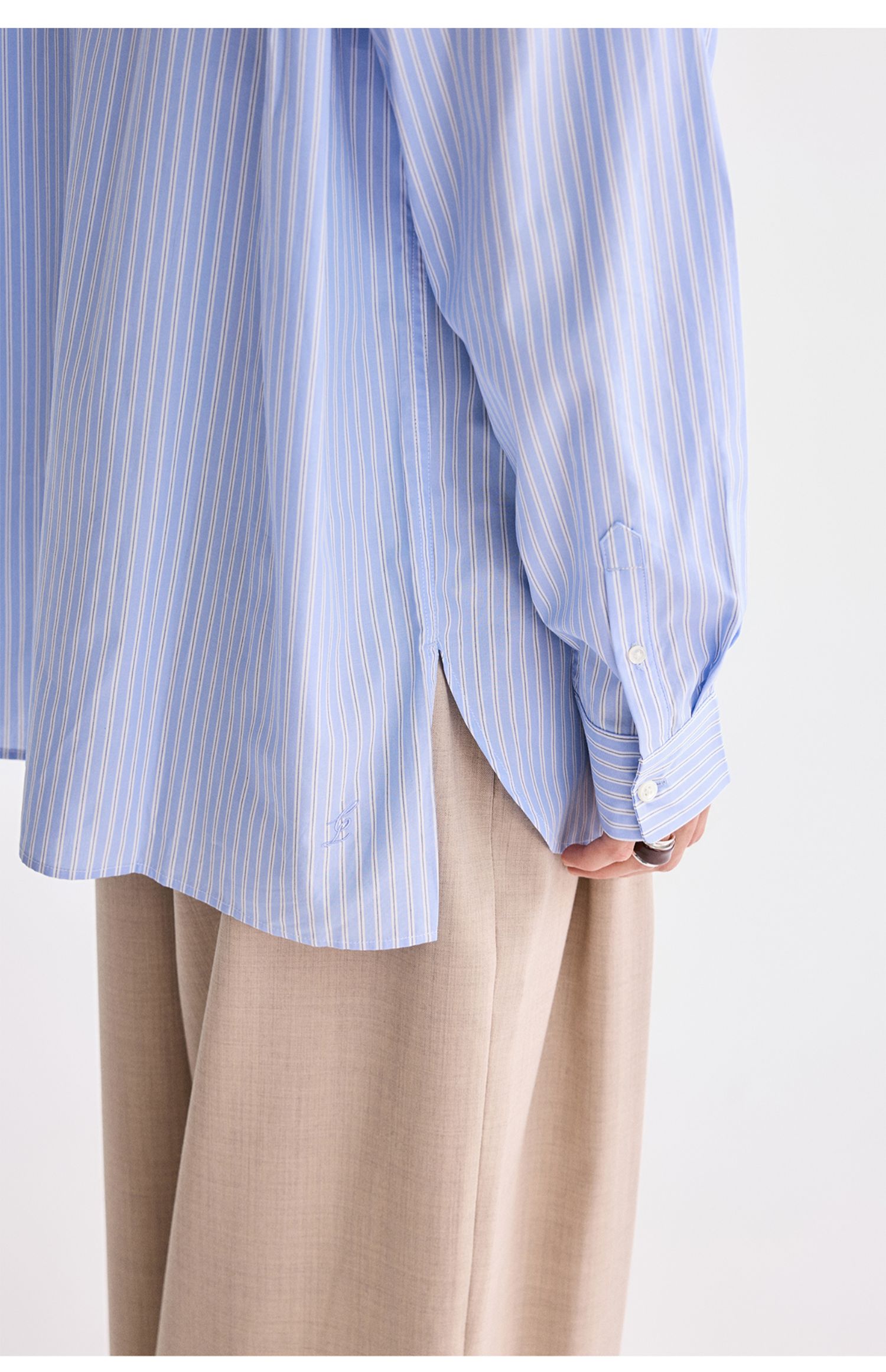 棉仓3621004004-【浪漫雅趣】腰间系带优雅蓝白条纹长袖衬衫