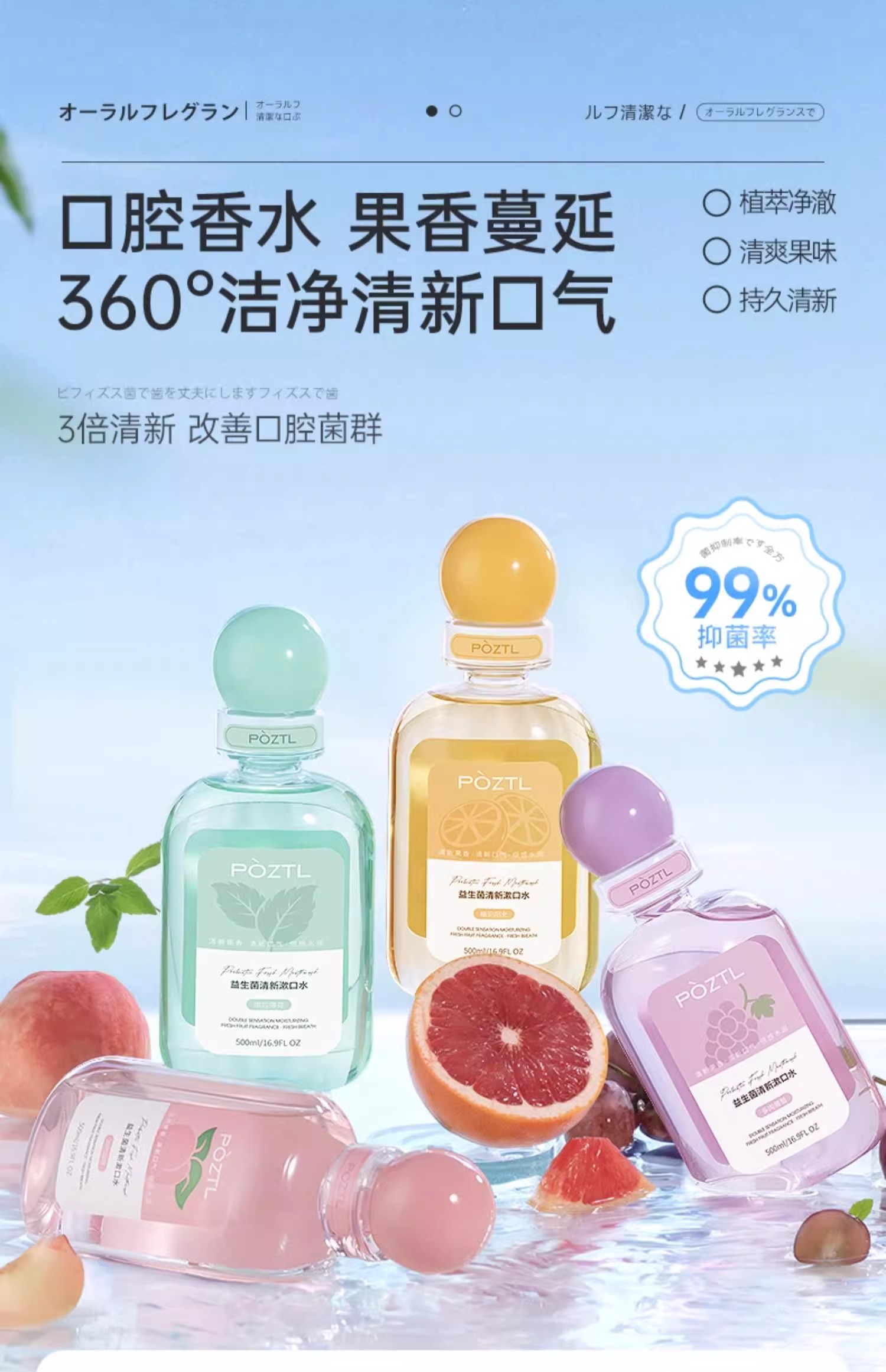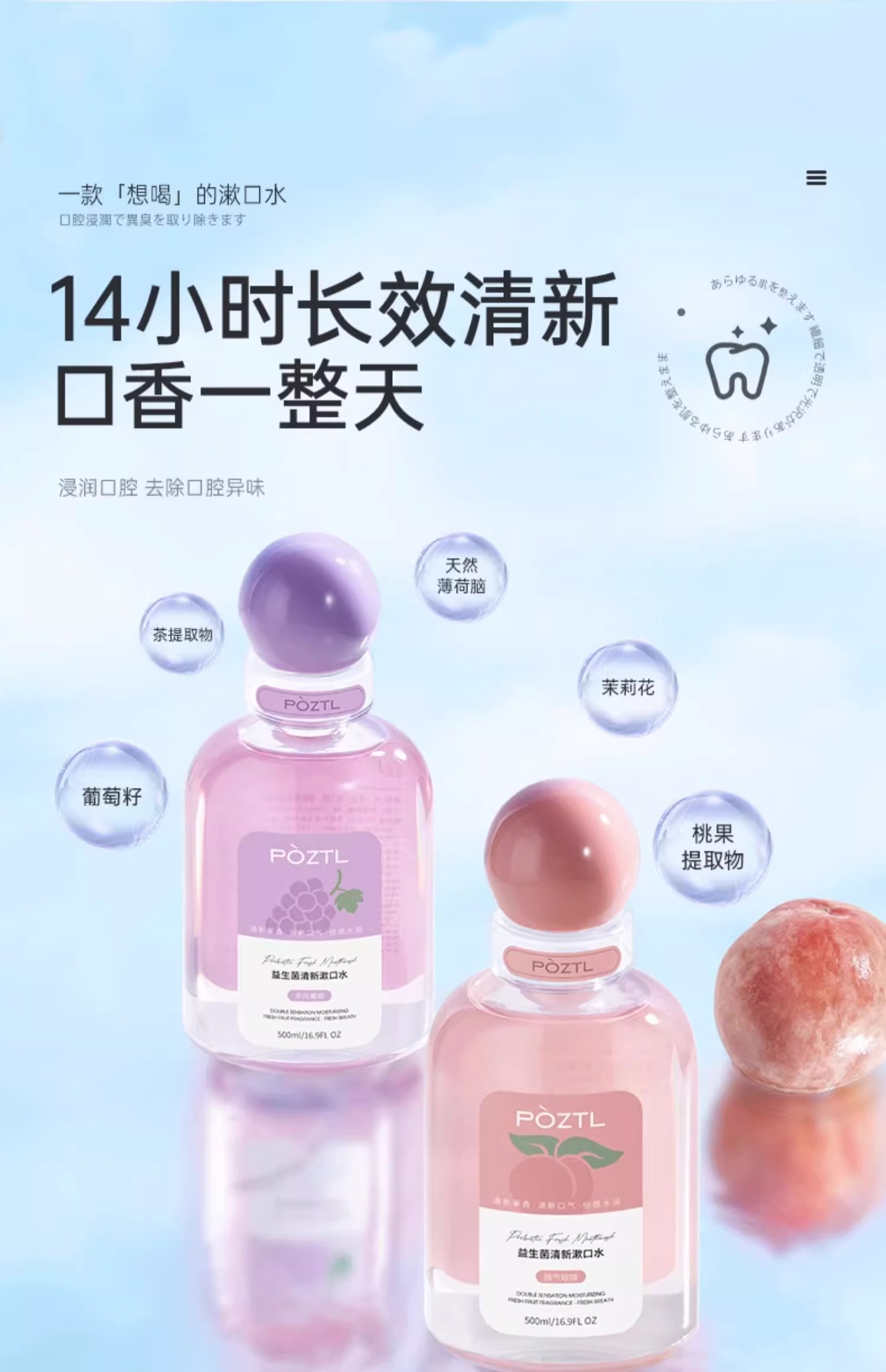 【POZTL泊紫汀兰 大容量益生菌漱口水】买一送一【500MLx2瓶】,四个口味, 强健牙齿,卷走口臭,牙龈灭火!
