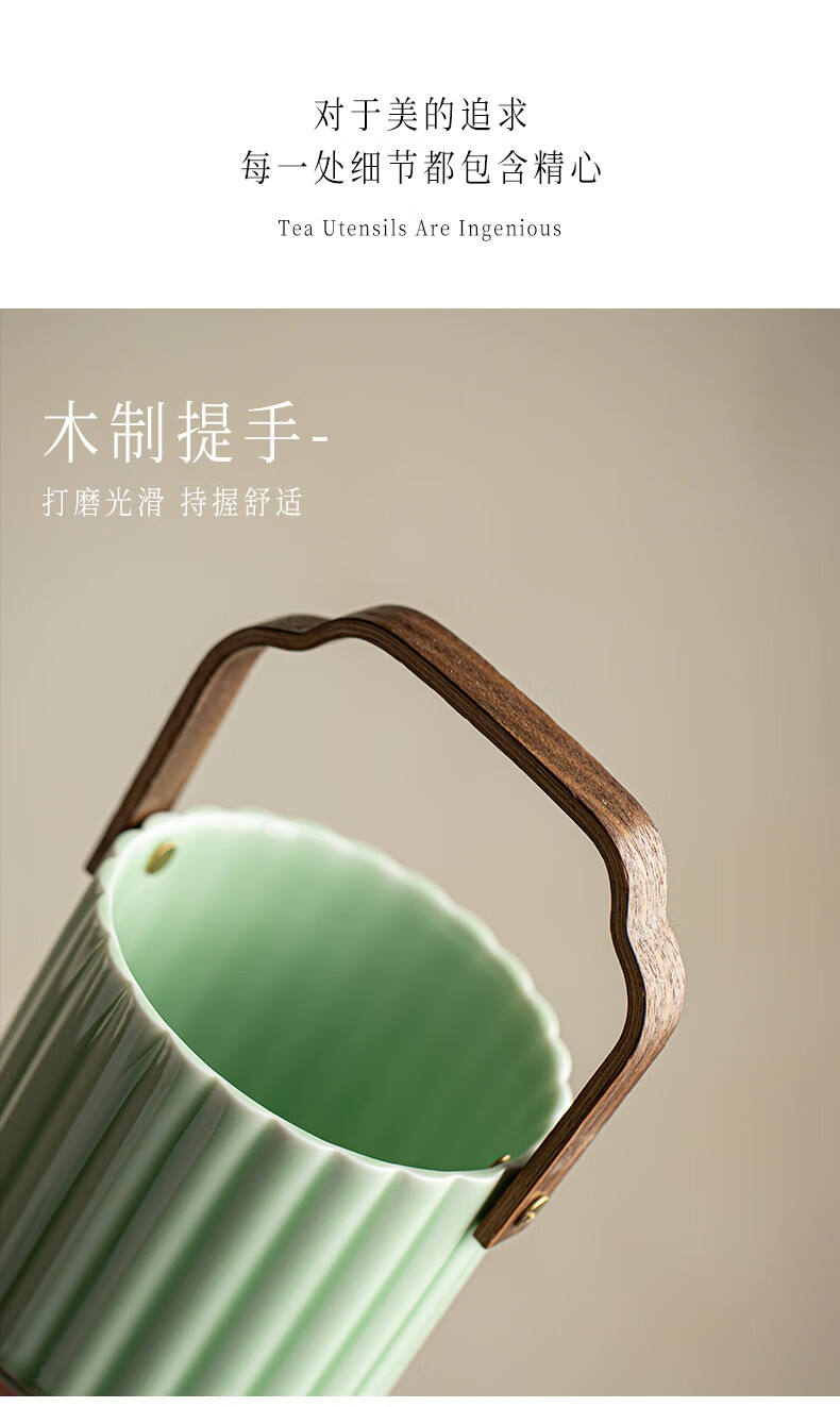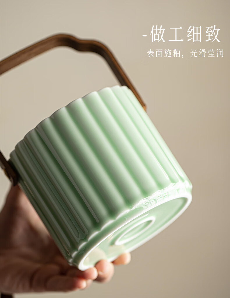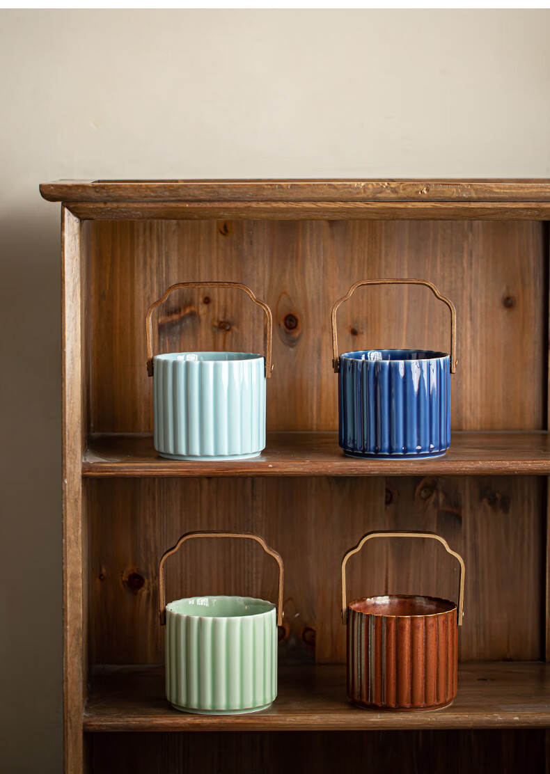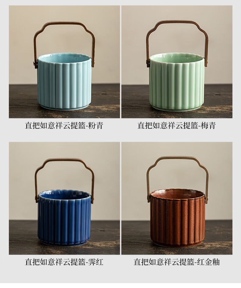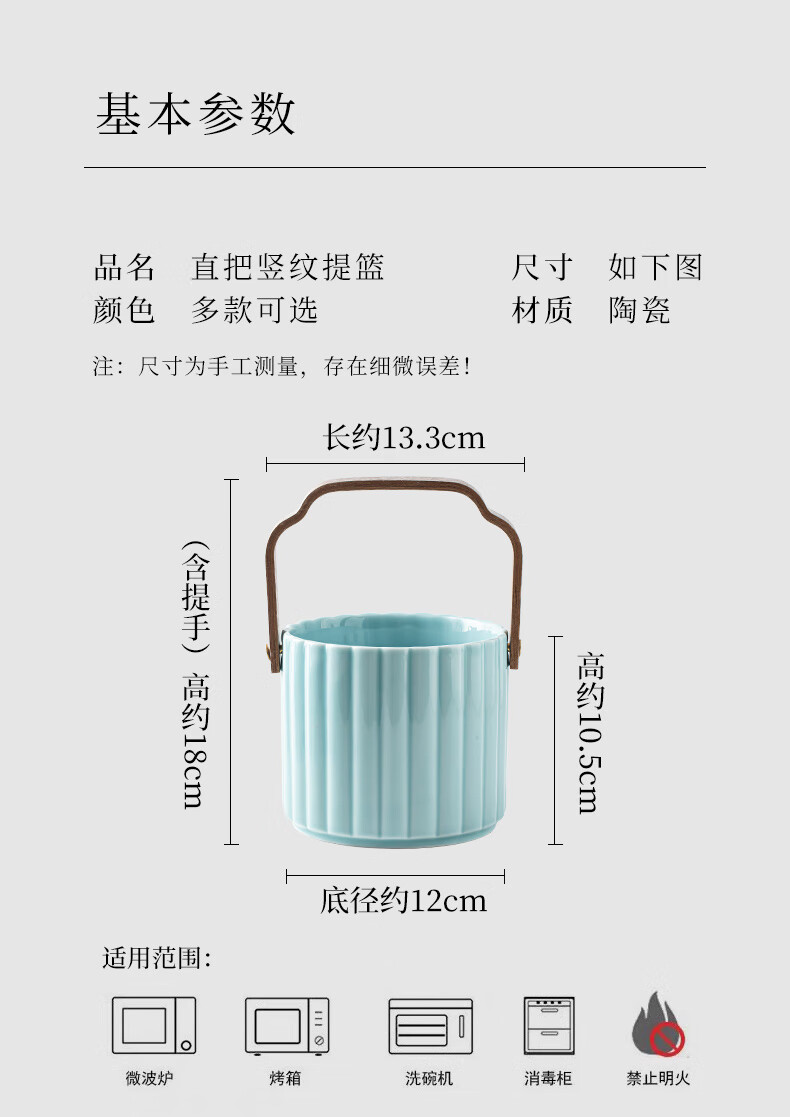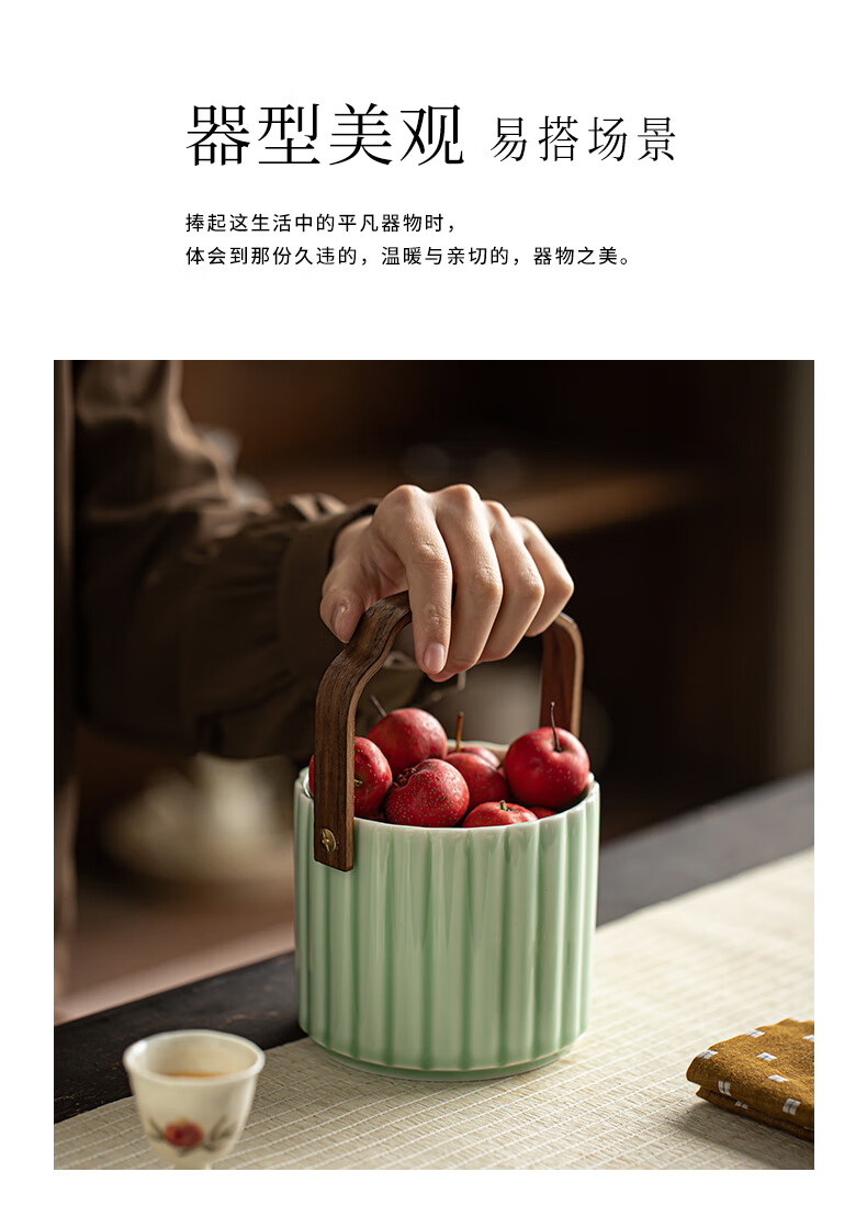 【直把竖纹提篮】陶瓷复古手提果盘家用零食糖果盒精致高端轻奢坚果水果篮点心盘子