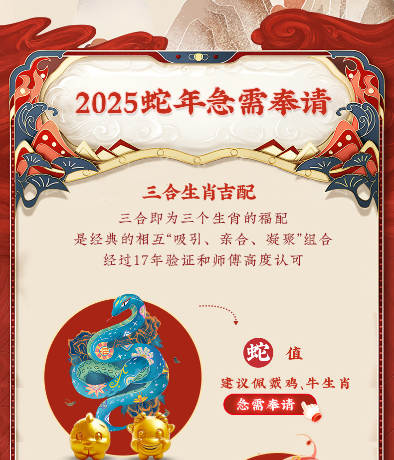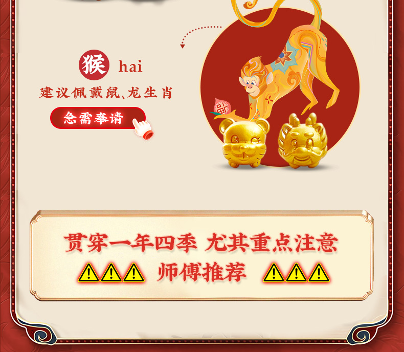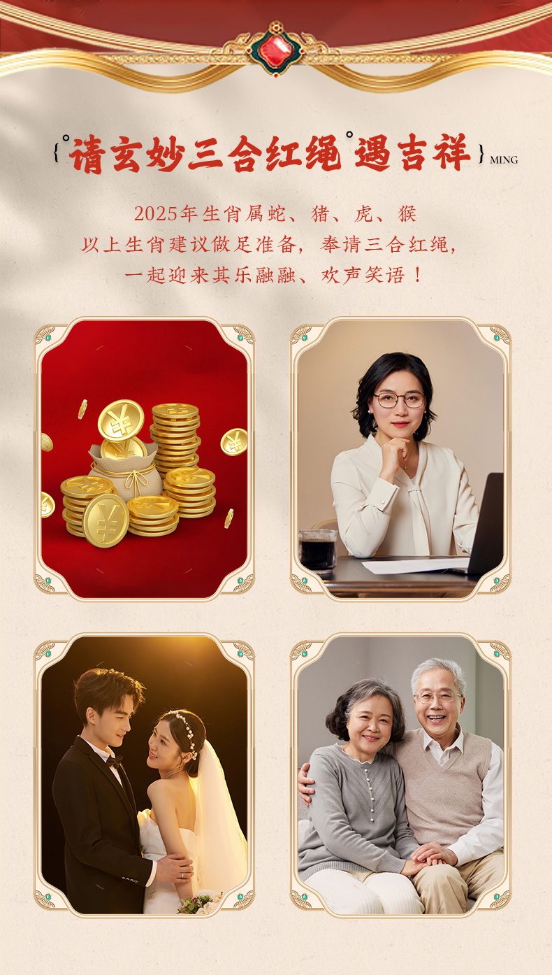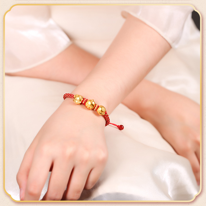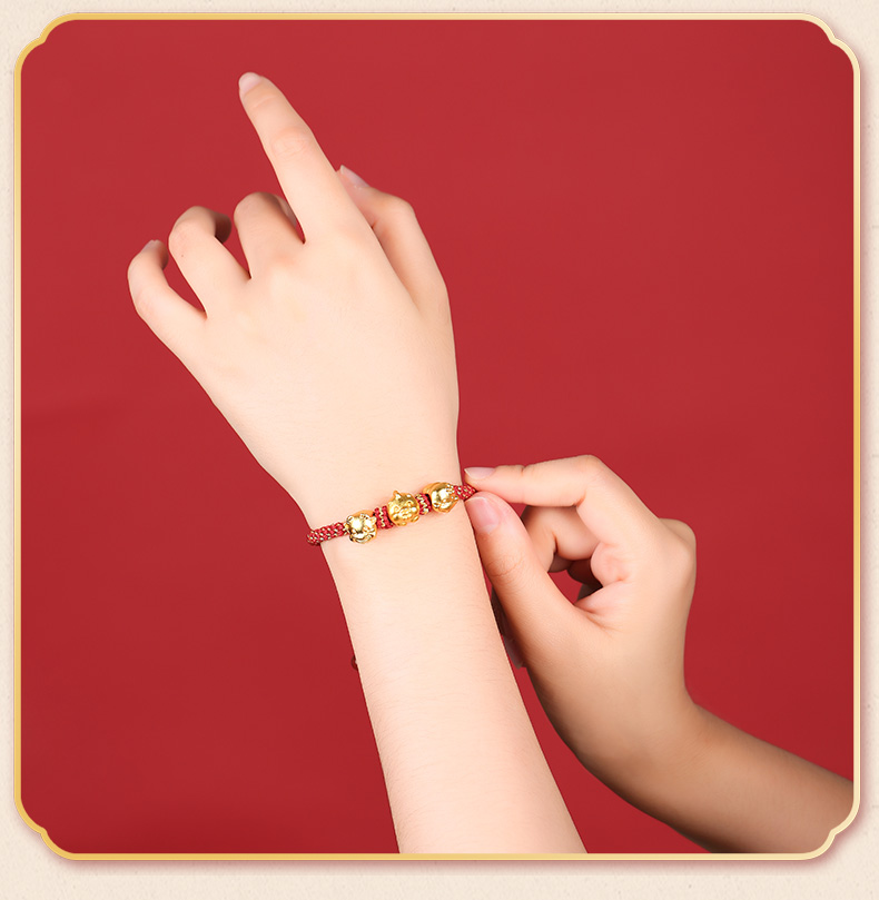 灵机吉品 2025乙巳蛇年玄妙三合红绳沙金手链 十二生肖蛇猪虎猴