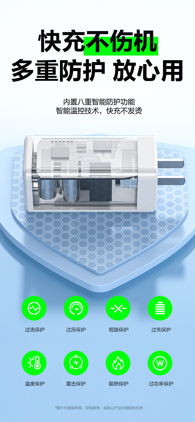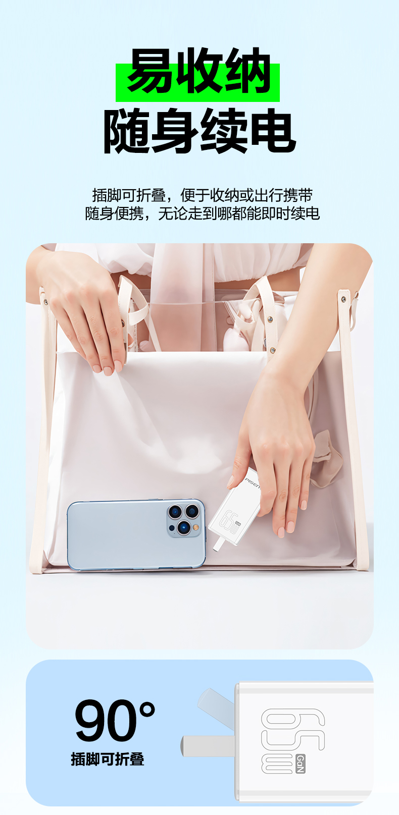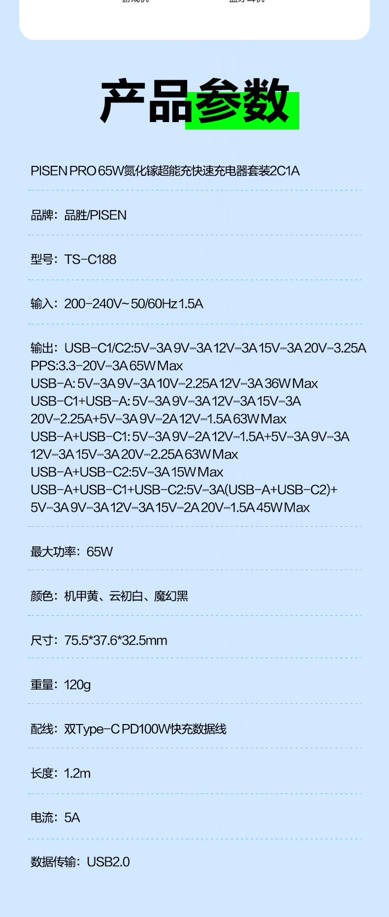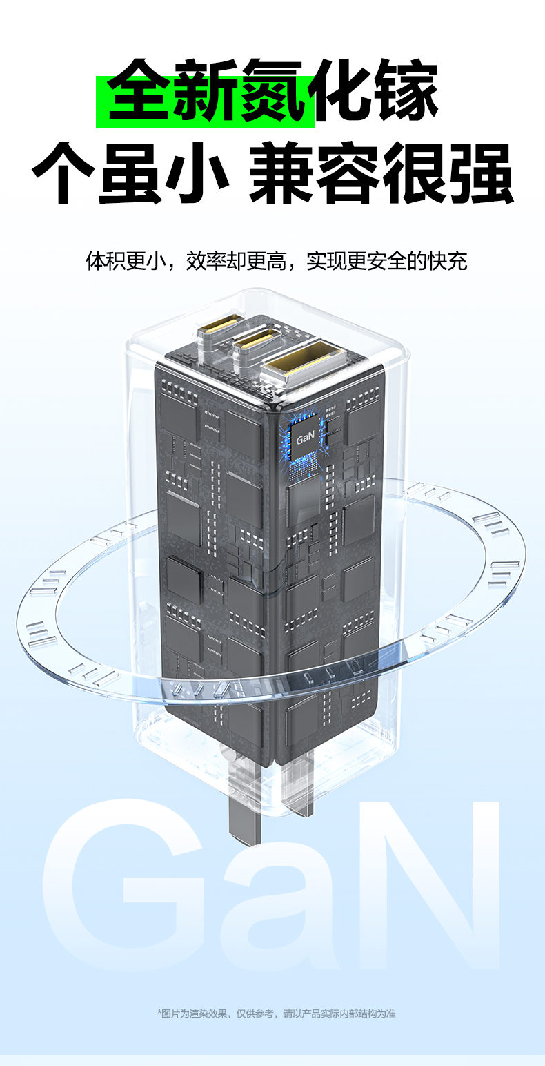 品胜 65W氮化镓超能充快速充电器2C1A 双Type-C口+USB接口 支持苹果PD快充笔记本快充