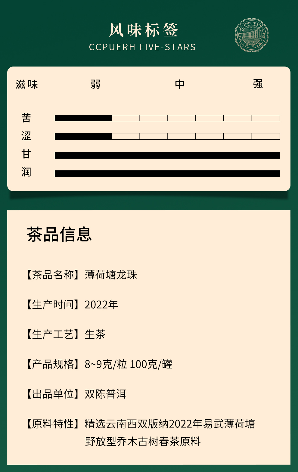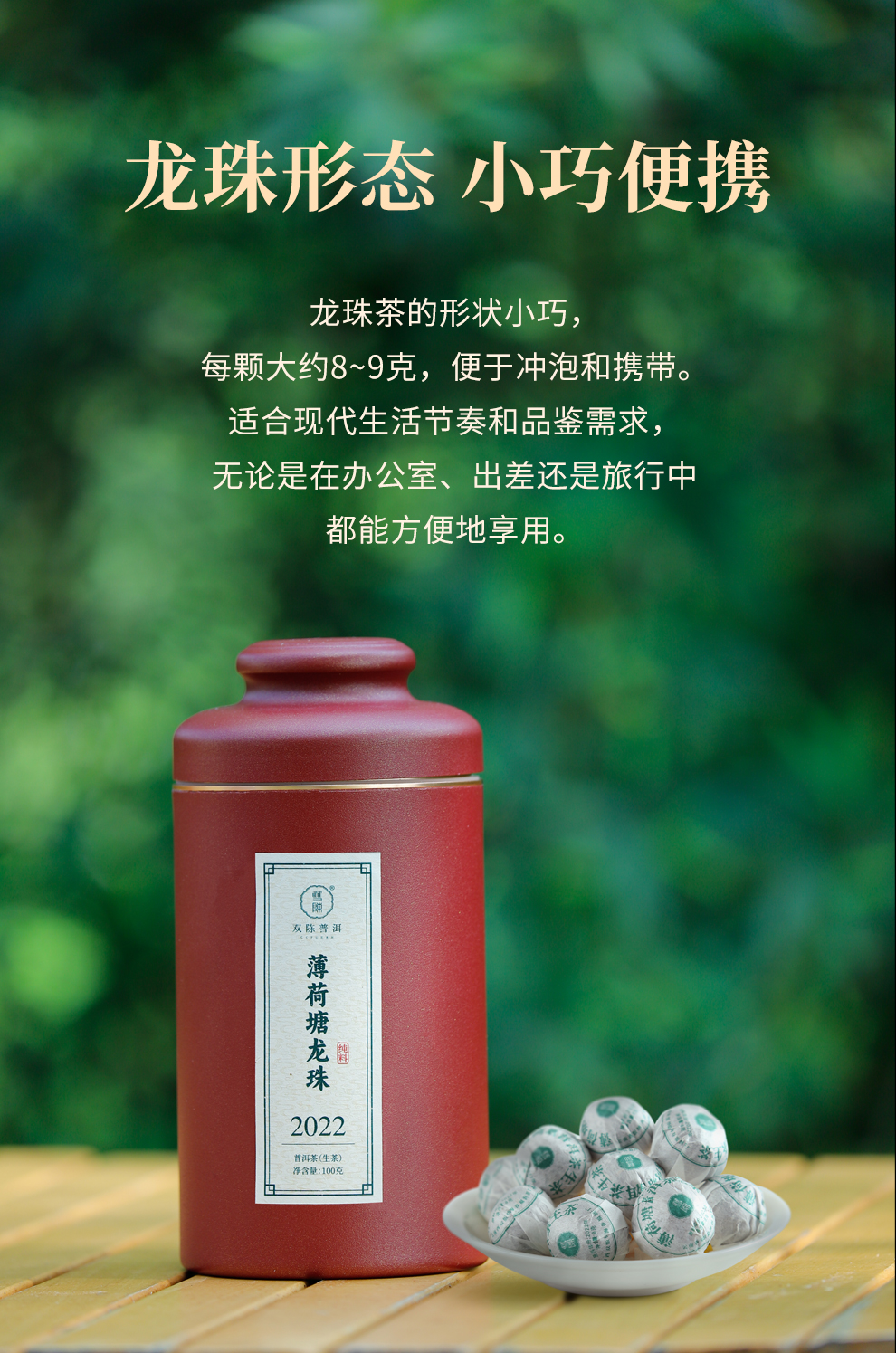 2022年薄荷塘龙珠罐装100克云南易武普洱生茶甜润甘爽龙珠茶8-9克/粒