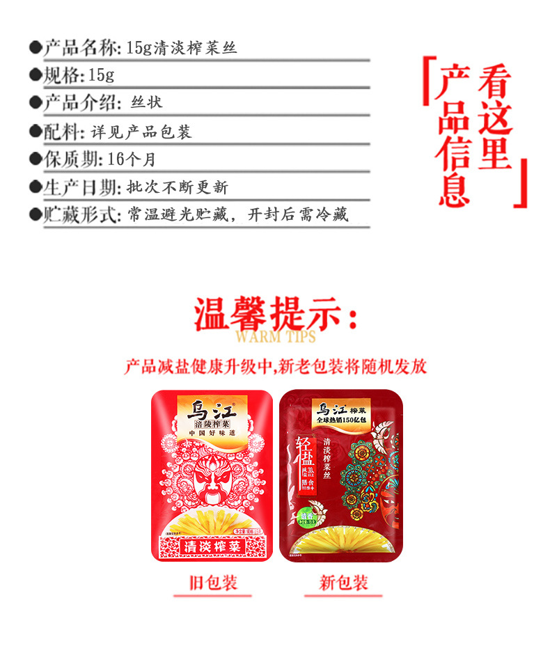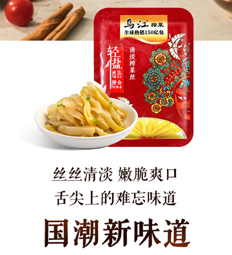 乌江涪陵榨菜70g 清爽鲜爽榨菜丝开胃下饭菜咸菜腌菜袋装