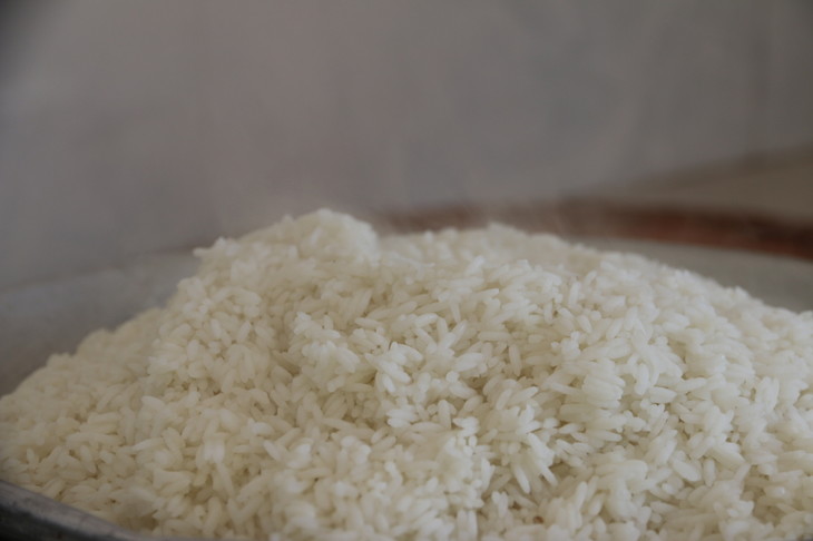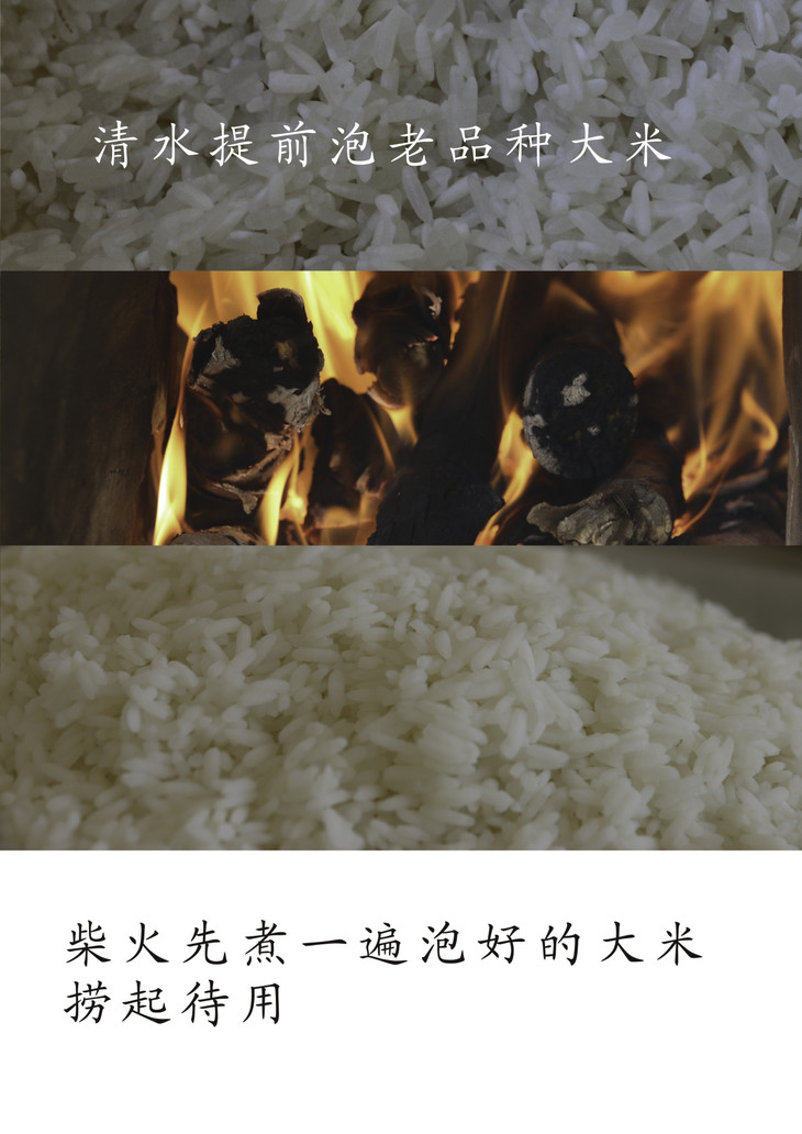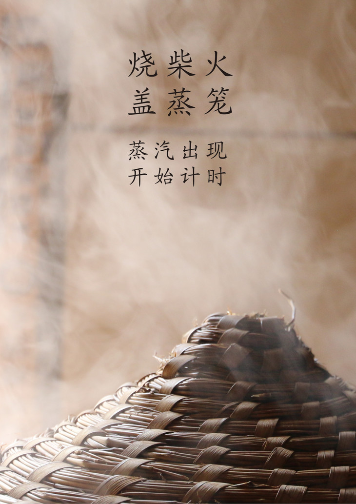 除了桂圆肉、酸枣仁和薏仁之外,还有一个重要辅料,它不在成品中,却发挥了特别作用,那就是蒸制时用到的生态大米。柴火土灶,竹制蒸笼,用煮好的大米铺满笼底,让大米和剁细的桂圆肉在120小时的蒸汽中相互融合,充分润燥。