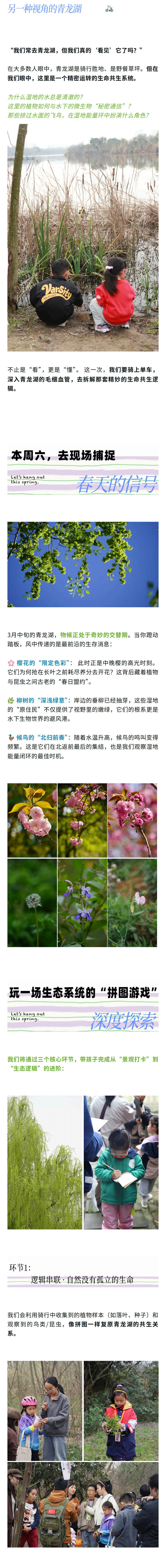 3.28下午场【骑进春天里,造一座掌心湖,遇见青龙湖的湿地生命】生态逻辑串联,收集植物样本,观察鸟类昆虫,复制微缩生态系统