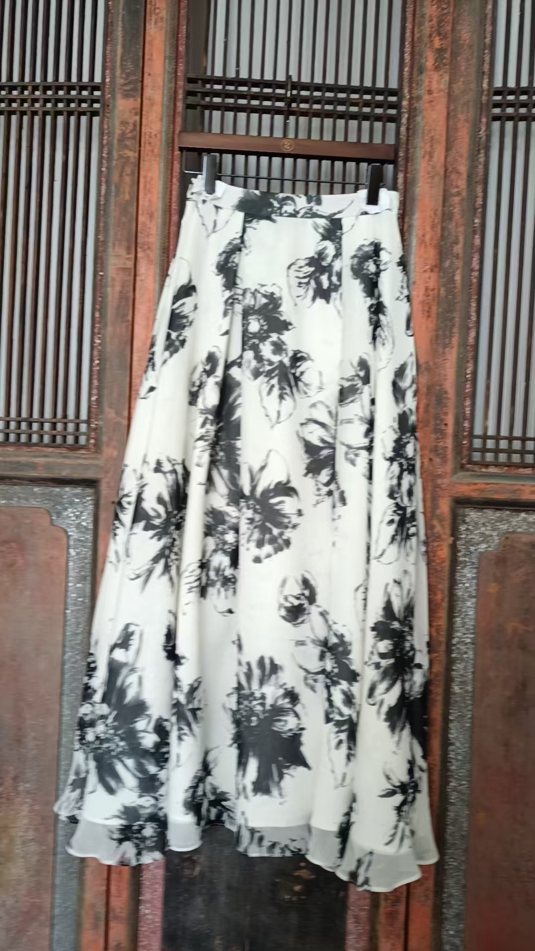盛唐牡丹| 抽象水墨花纹真丝雪纺半裙
