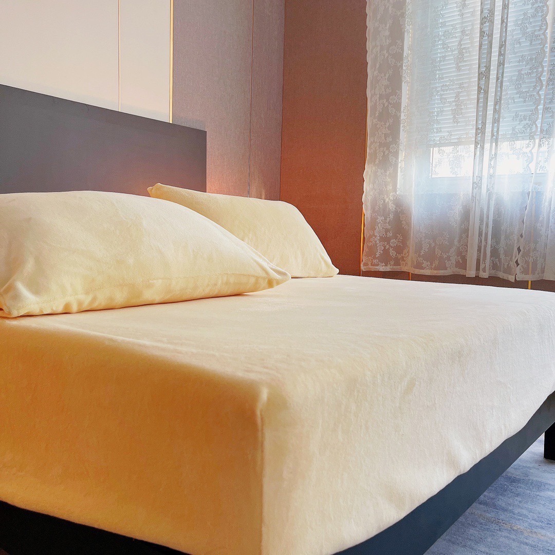 细密绒毛,提升柔软度和保暖度,云端触感,贴身面更暖!床笠侧高30cm,适用于99%的床垫