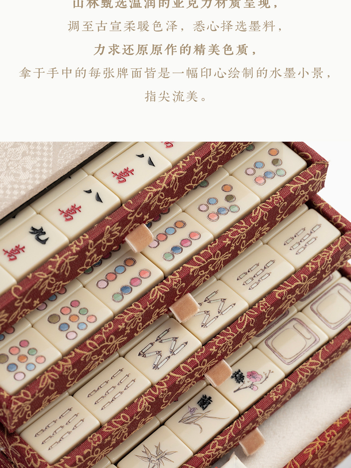 围暖 林曦水墨艺术作品衍生温润亚克力锦盒麻将 山林曦照