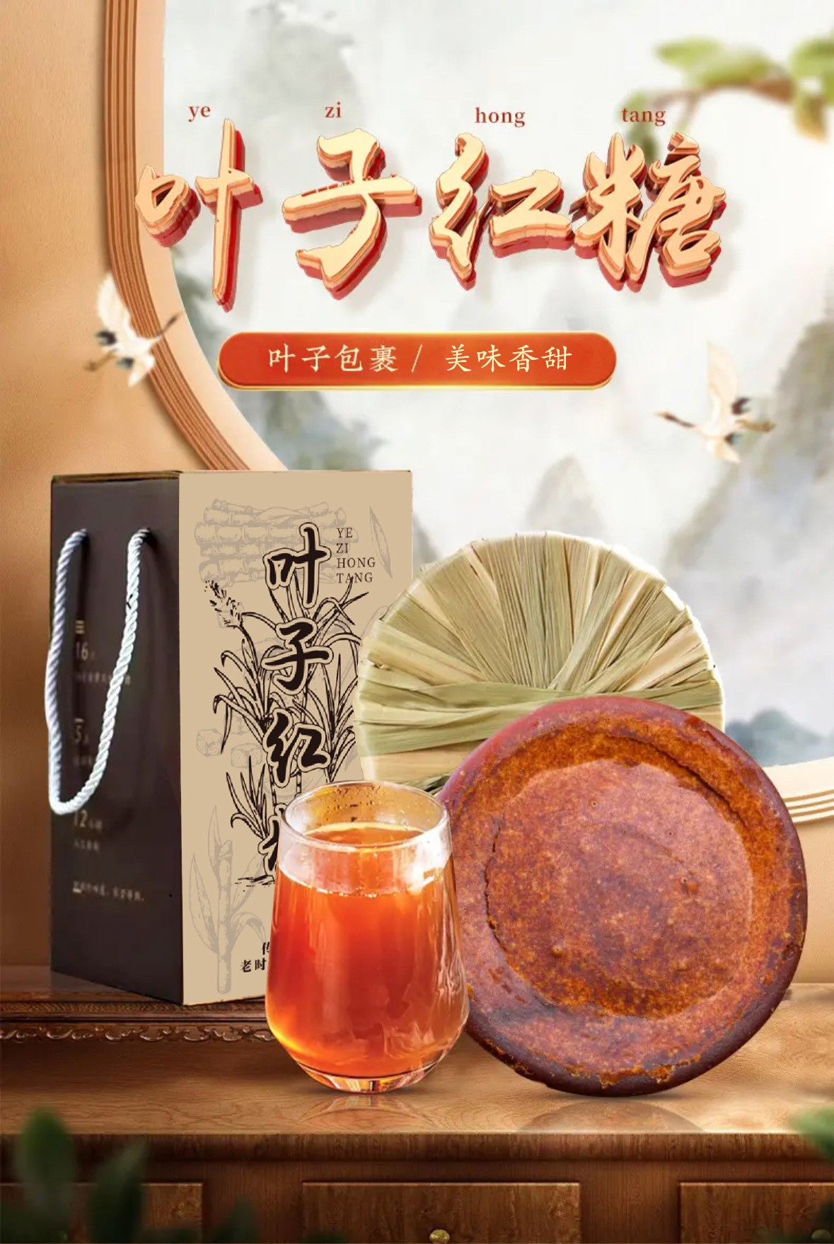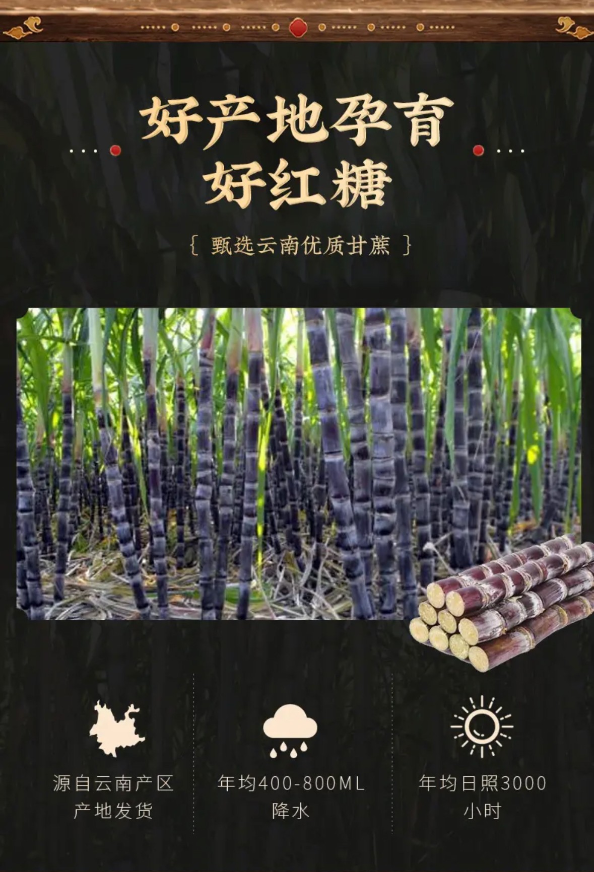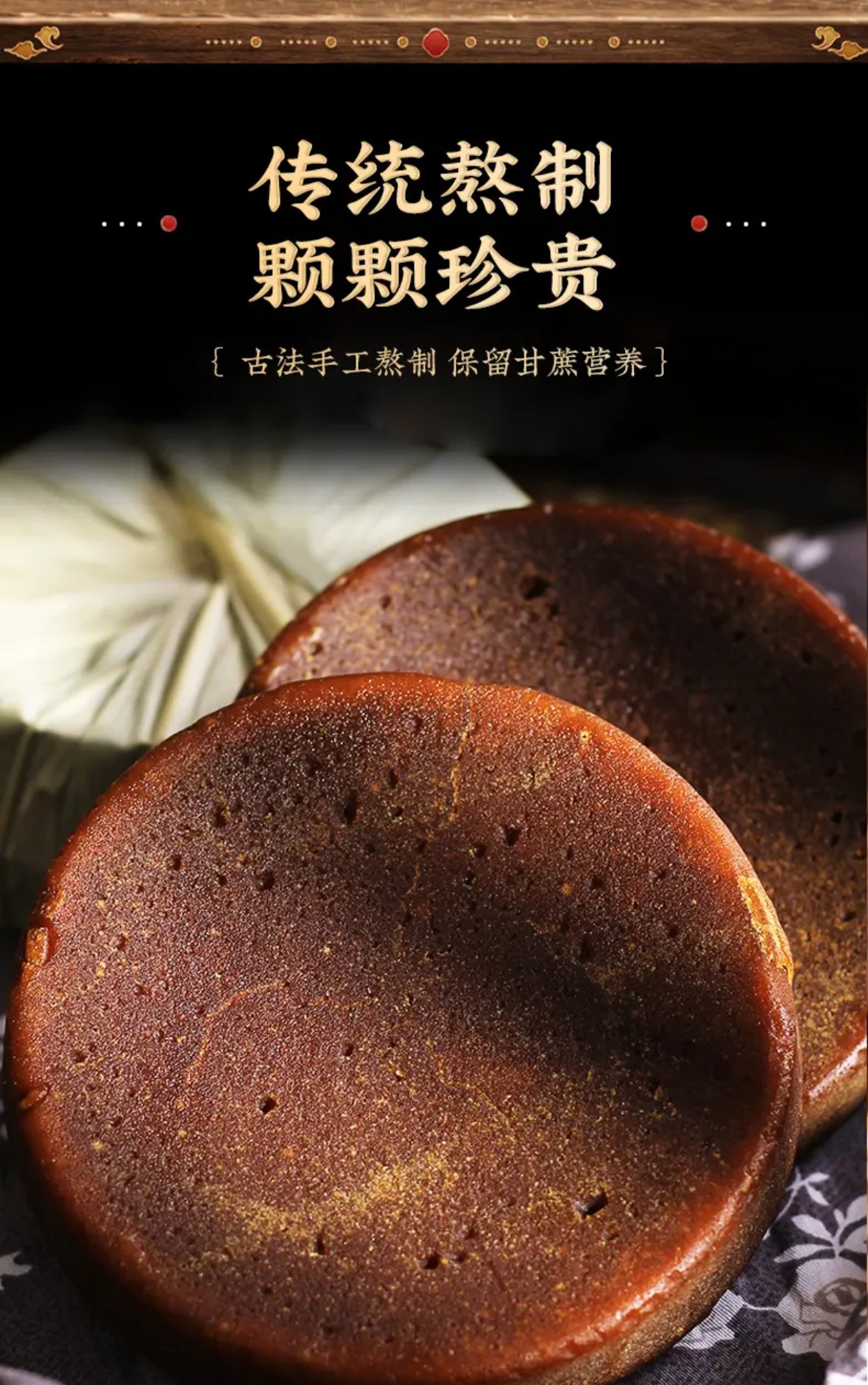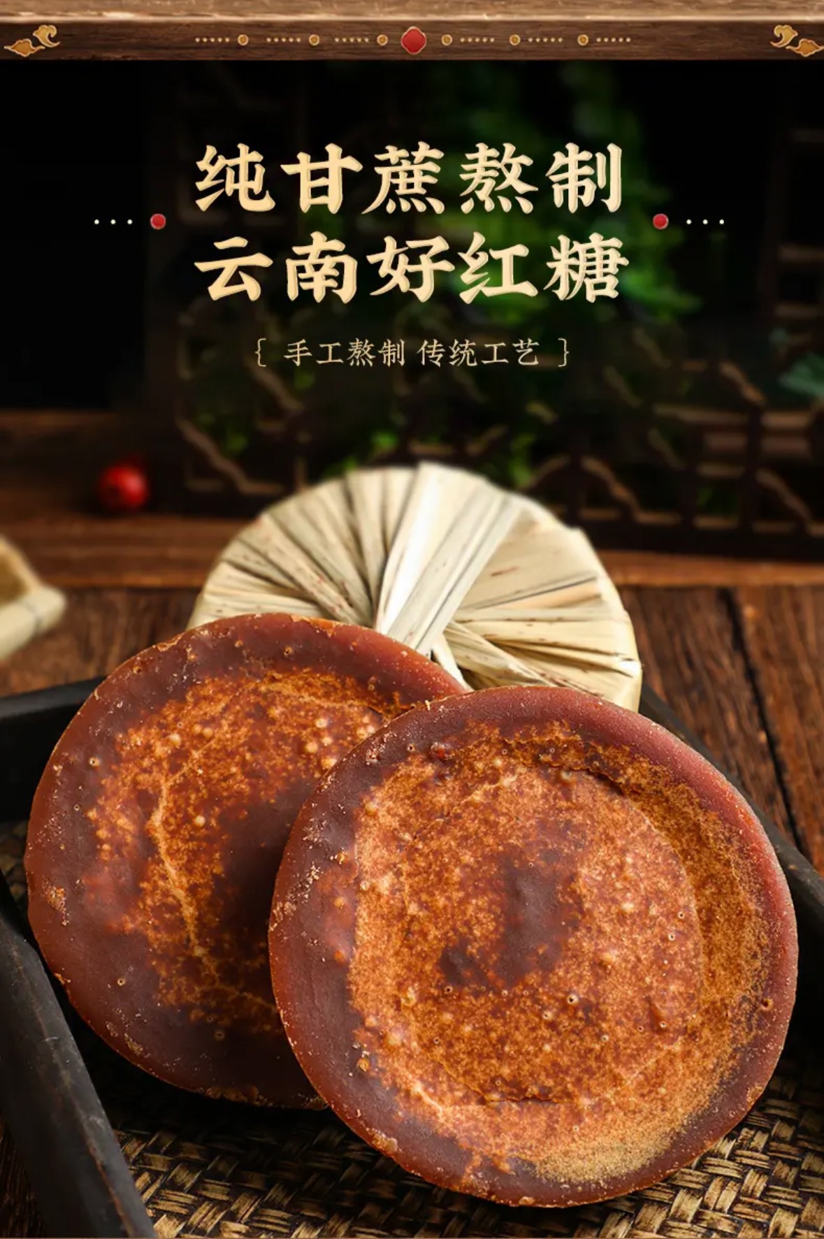 买1送1【云南特产原浆红糖】全手工熬制 16斤甘蔗榨1斤糖 配料只有甘蔗 0添加 只有甘蔗甜味 甘蔗叶包裹 保留原香