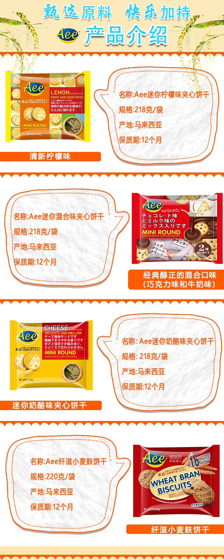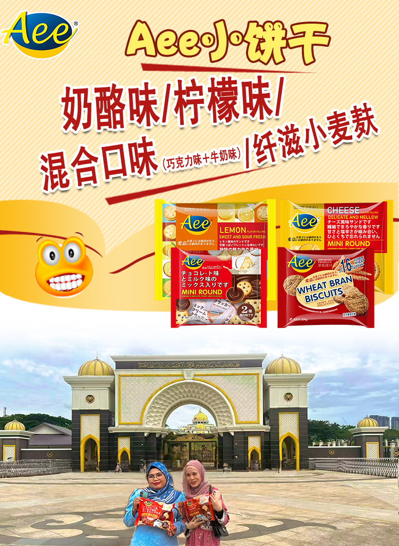 Aee马来西亚进口小圆饼柠檬味218g+奶酪味218g