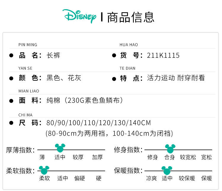 迪士尼童装 男童长裤春秋运动裤儿童裤子休闲裤中大童束脚裤211K1115