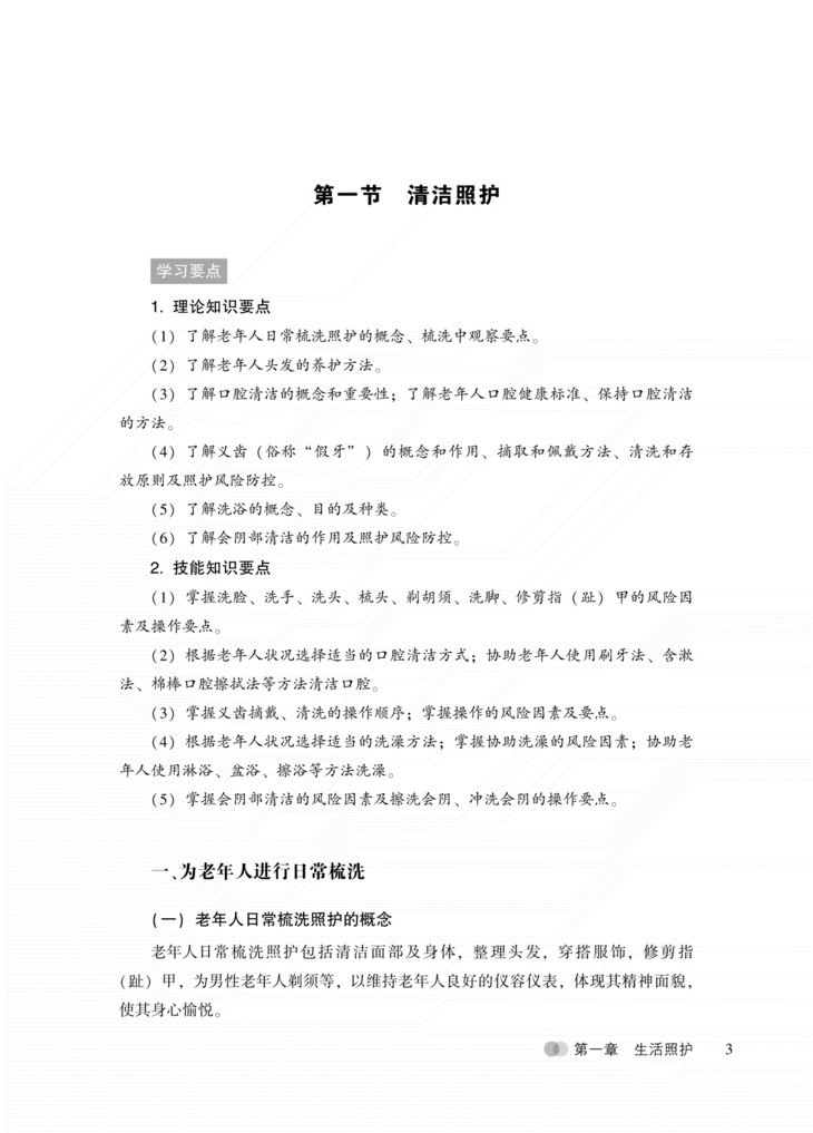 本套教材既可用于养老护理员职业技能等级培训、认定,也可作为养老服务一线从业人员、家庭养老照护人员及相关专业在校学生的学习资料。