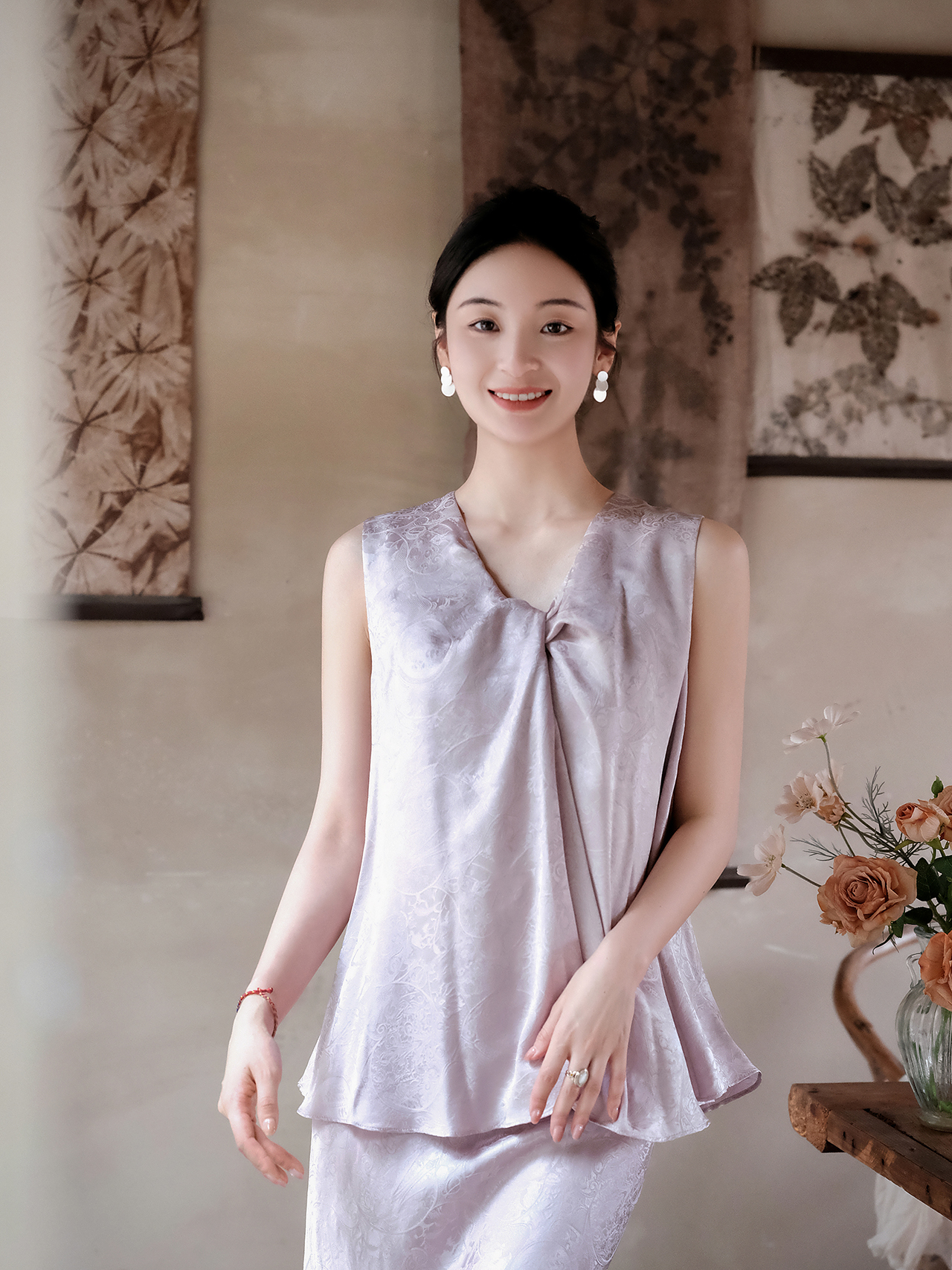 盛唐牡丹| Paisley纹真丝提花扭结背心
