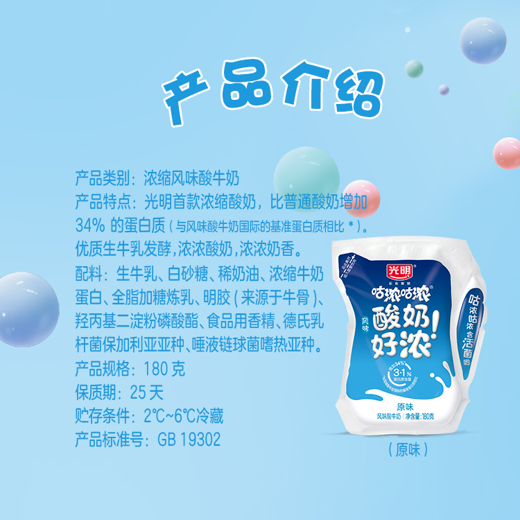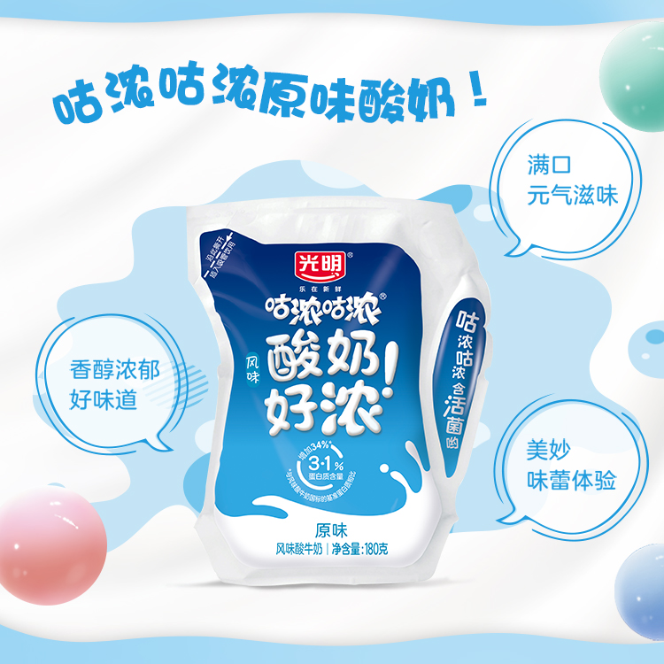 光明咕浓咕浓轻巧包原味酸牛奶180g,保质期25天