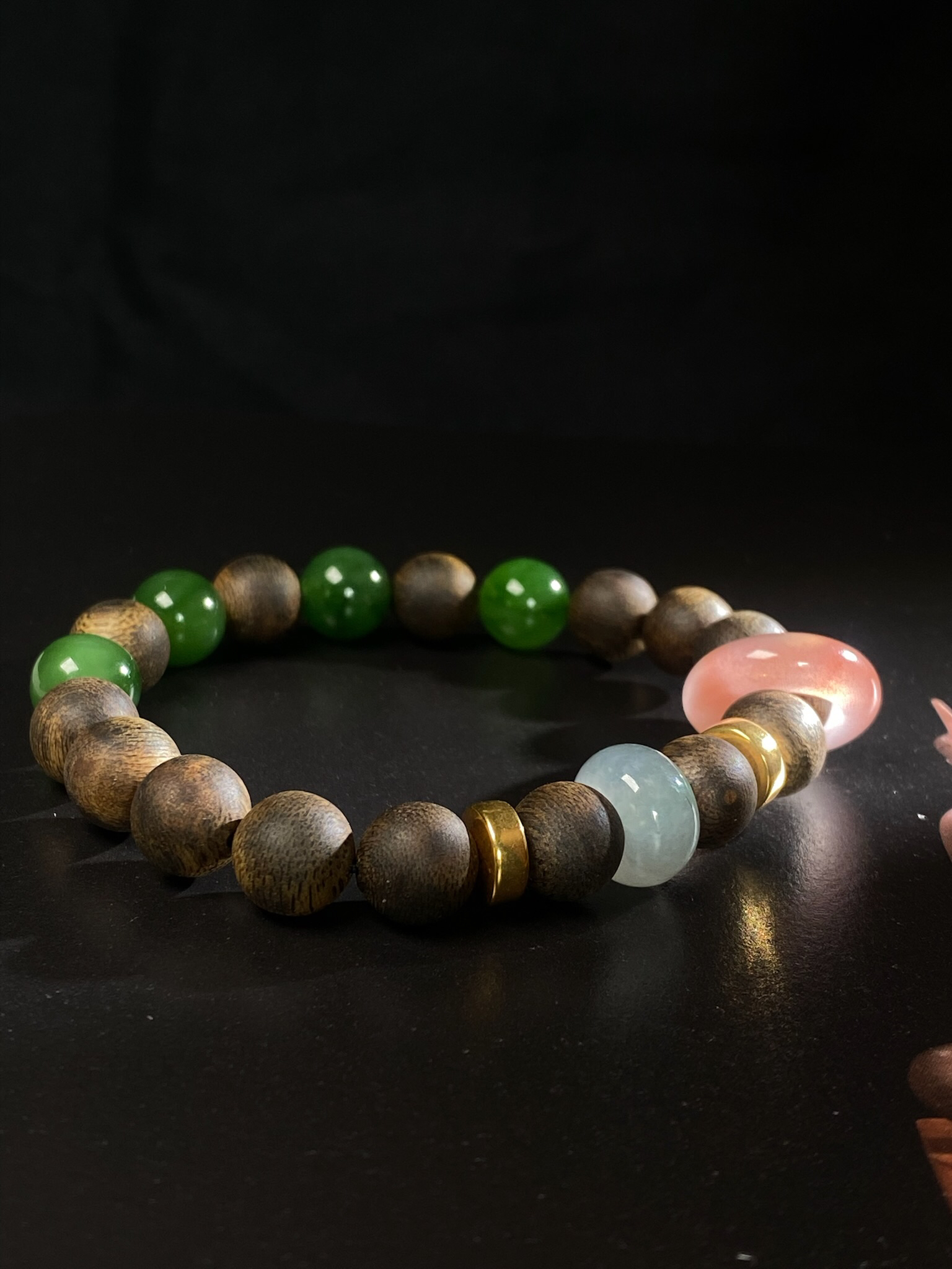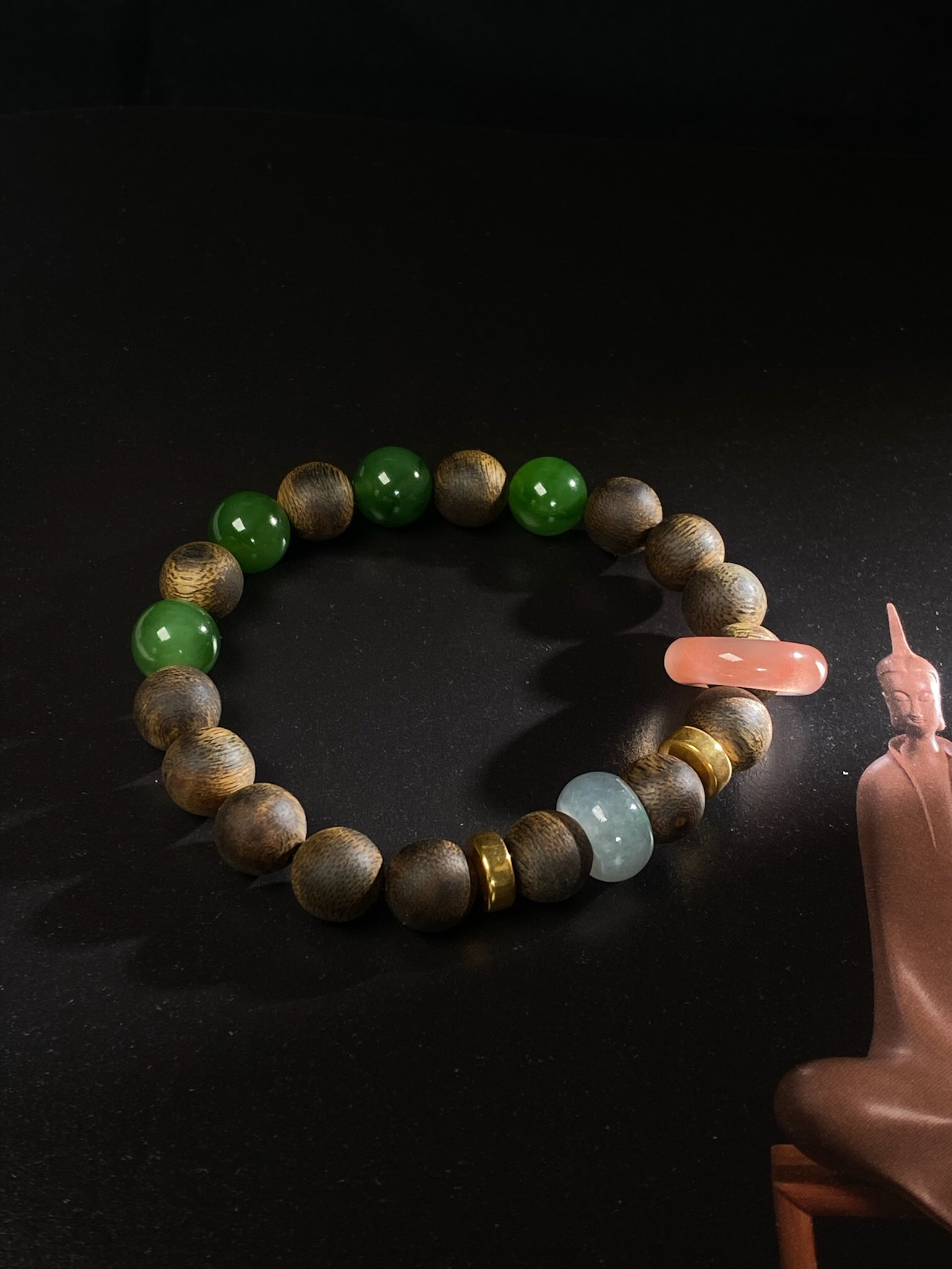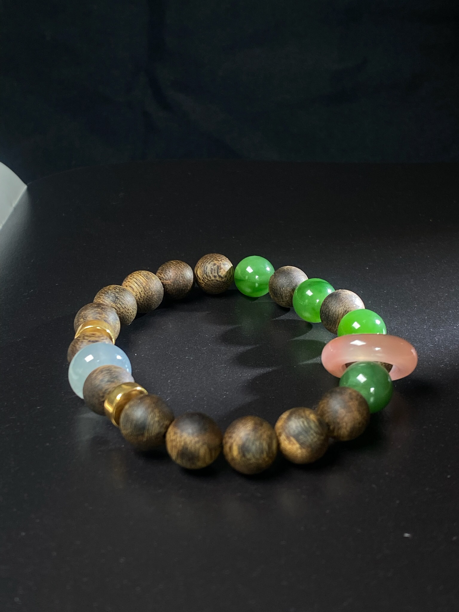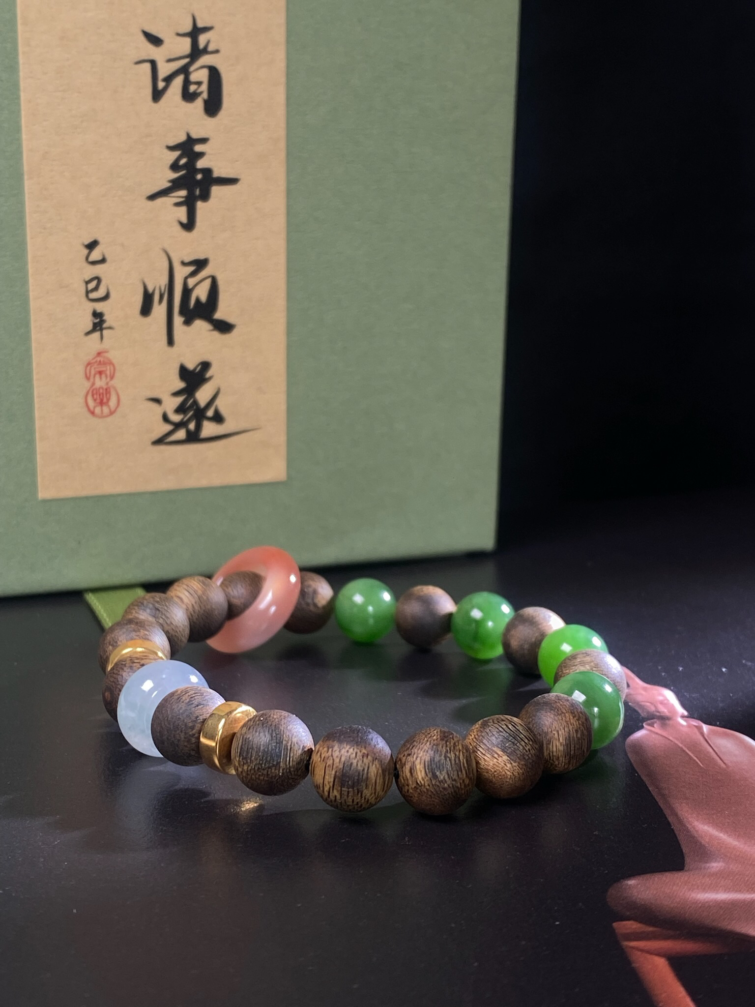 XY0060原创沉香DIY圆珠手串碧玉南红跑环