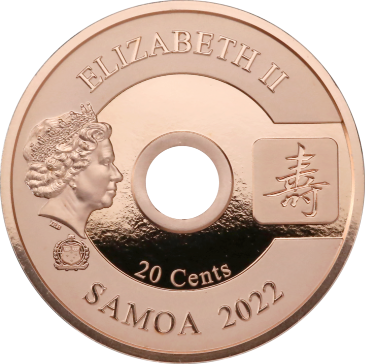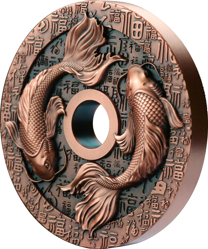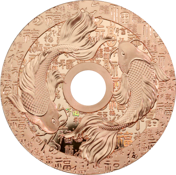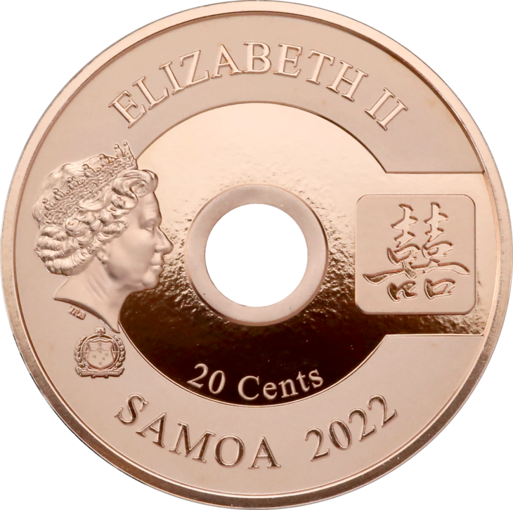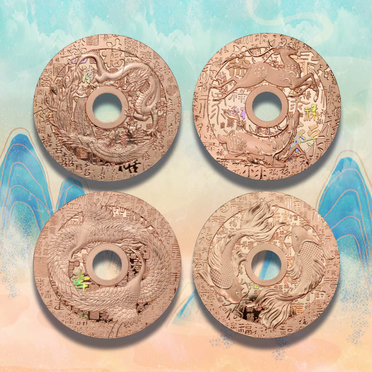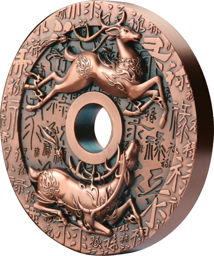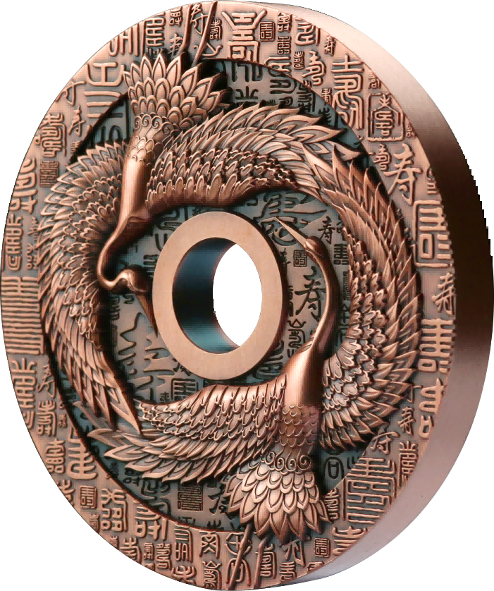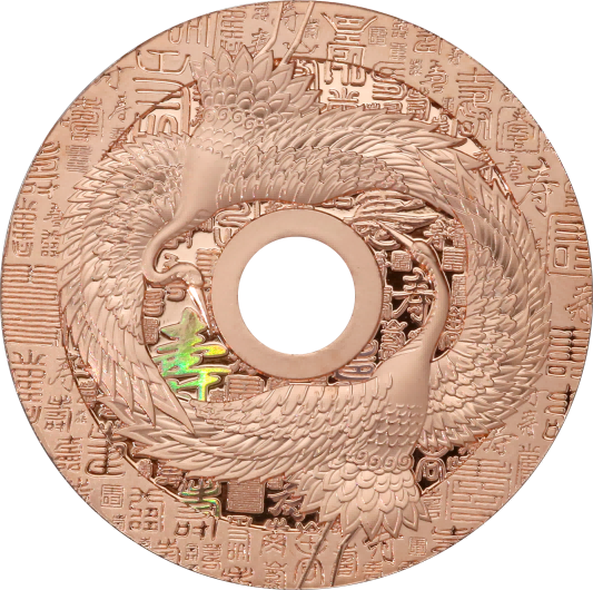 虽然是铜币,但是却使用了浮雕、全息幻彩和镜面等贵金属币才会使用的高端工艺,中间镂空设计。