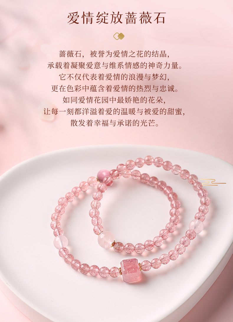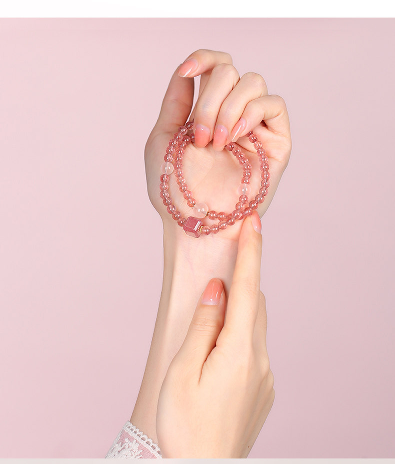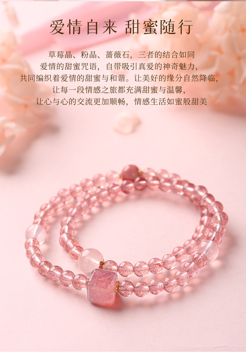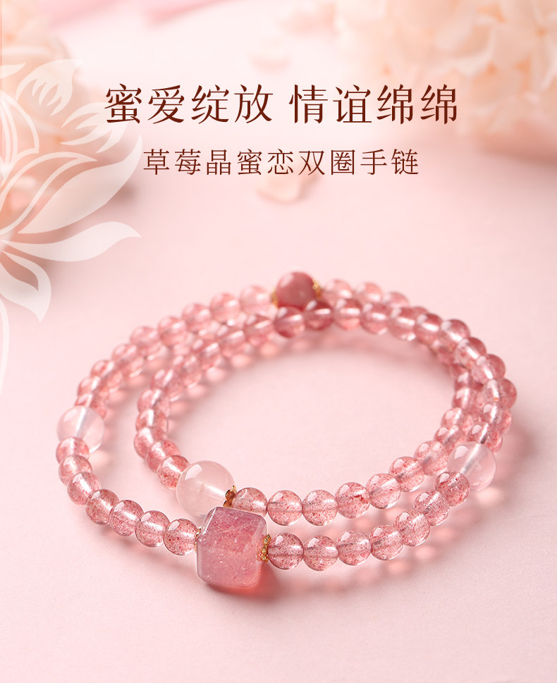 【祈愿吉品】草莓晶蜜恋双圈手链良缘粉水晶手串