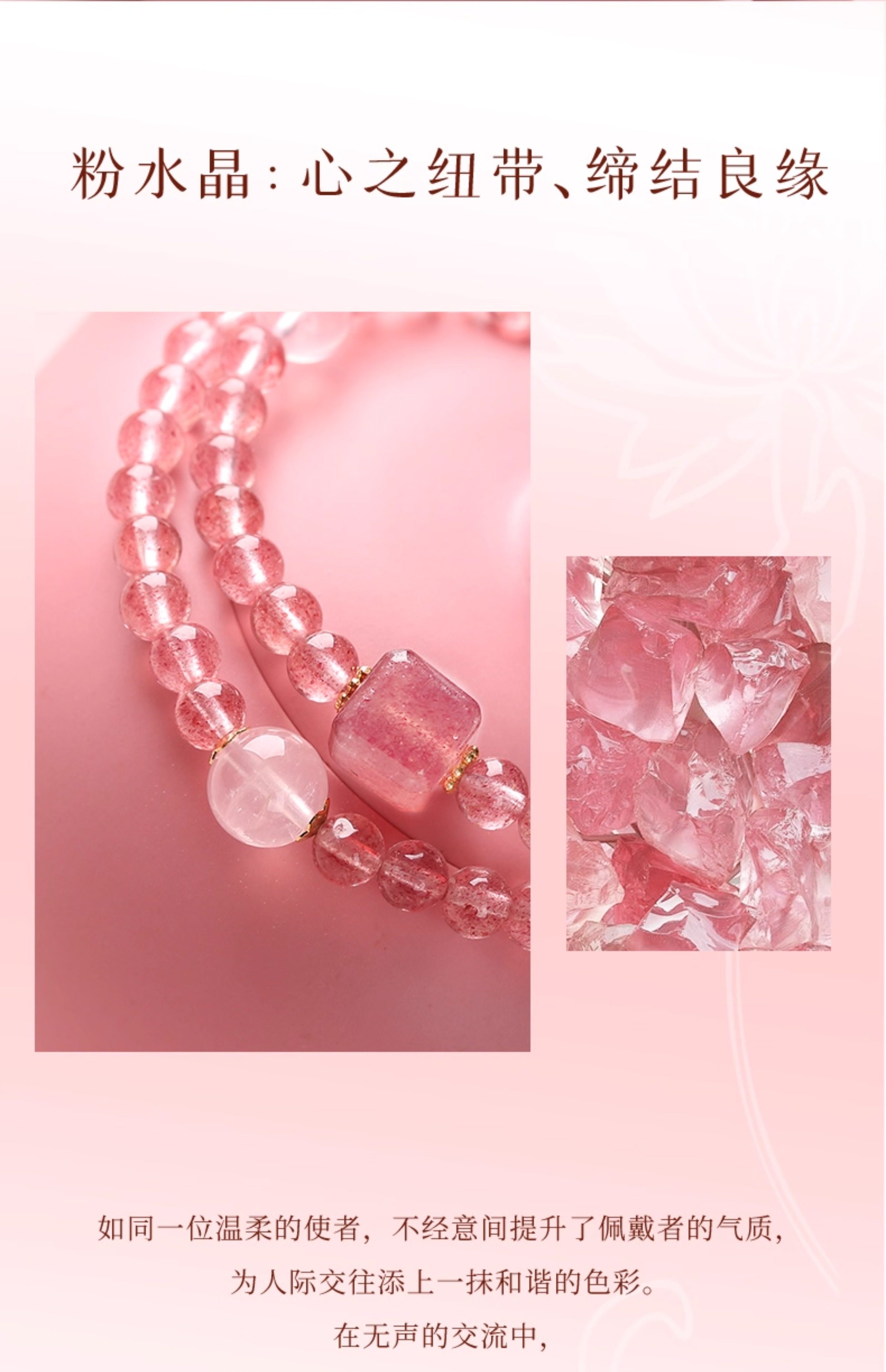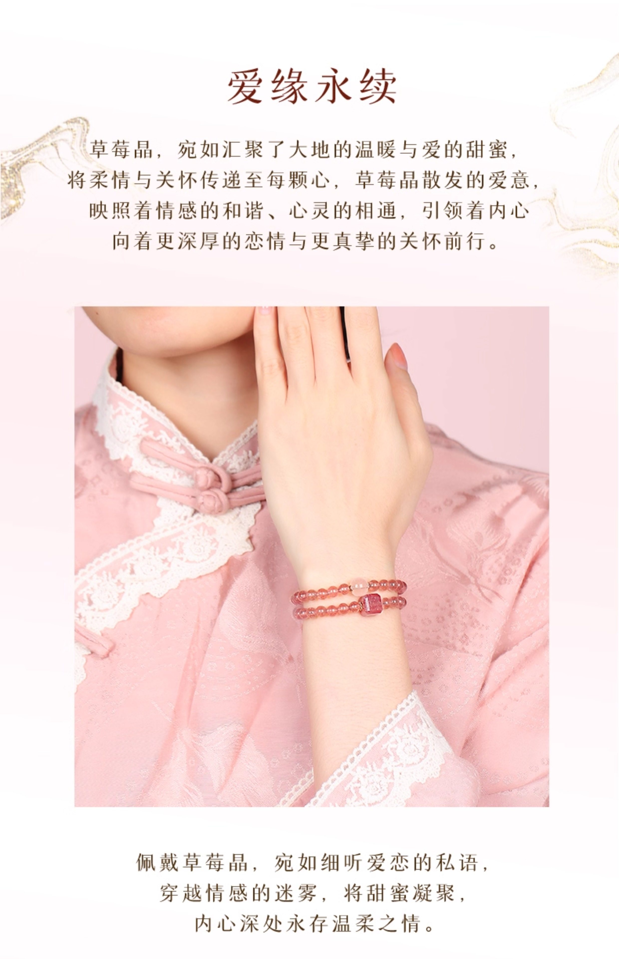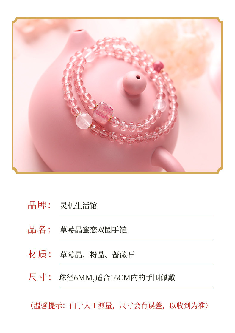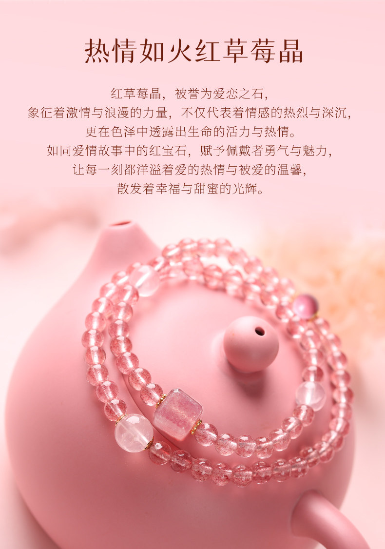 【祈愿吉品】草莓晶蜜恋双圈手链良缘粉水晶手串