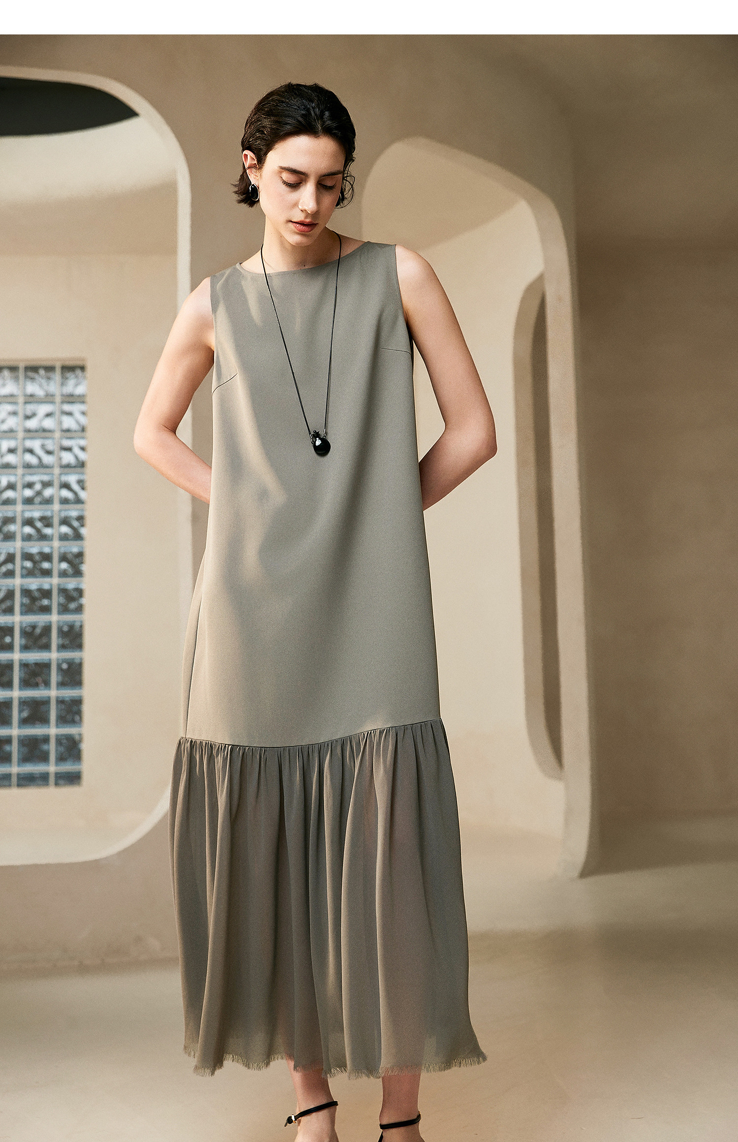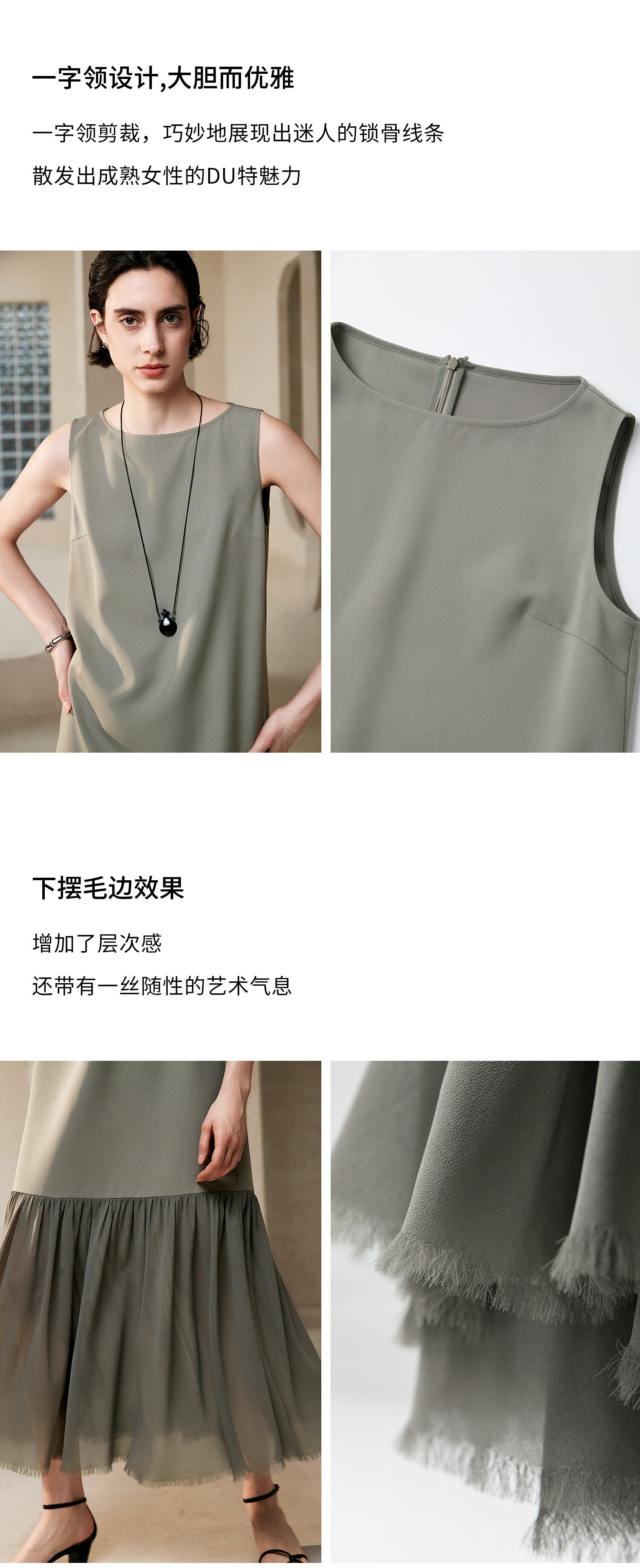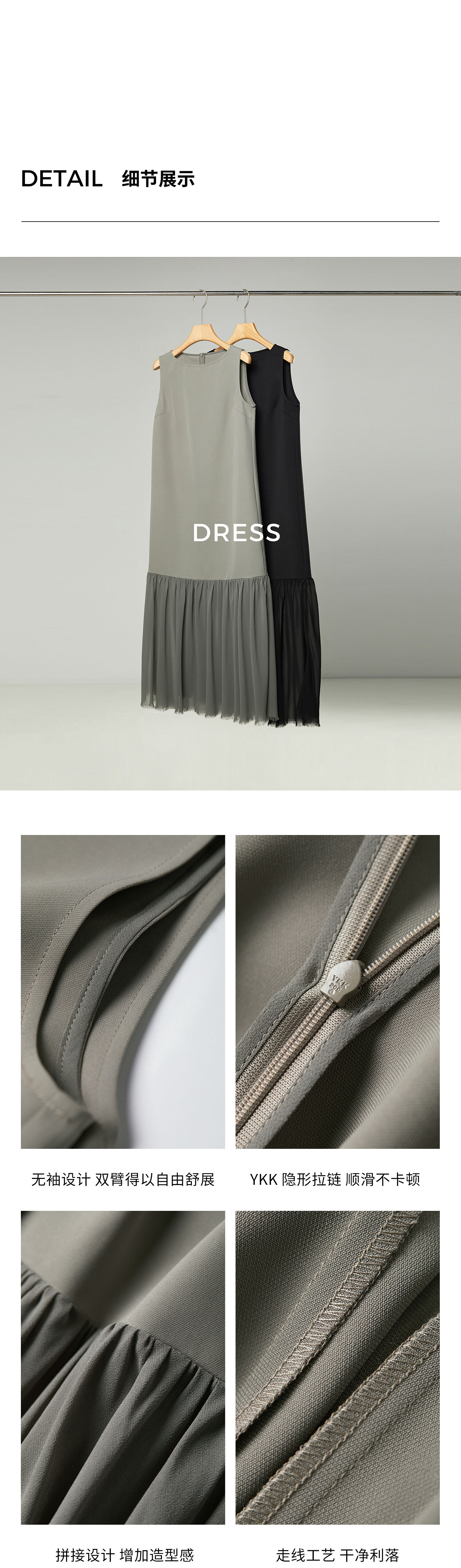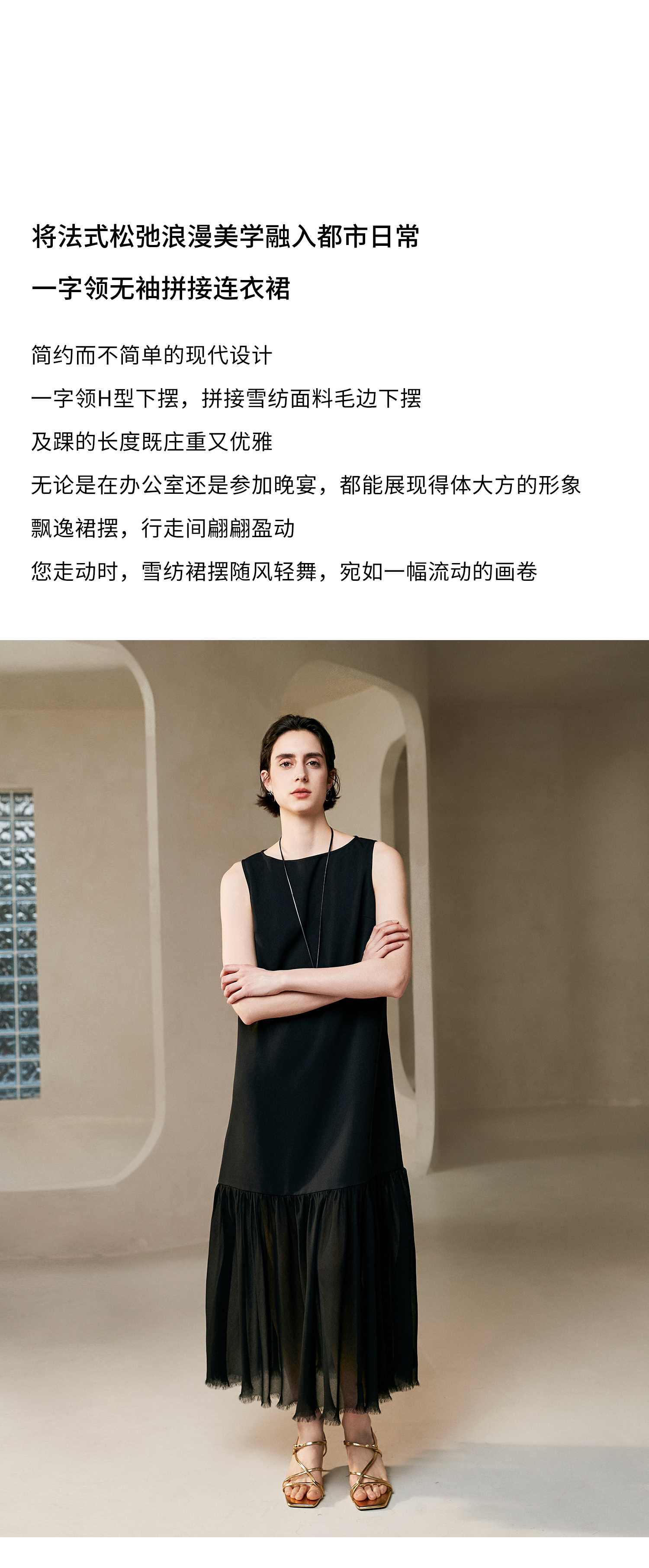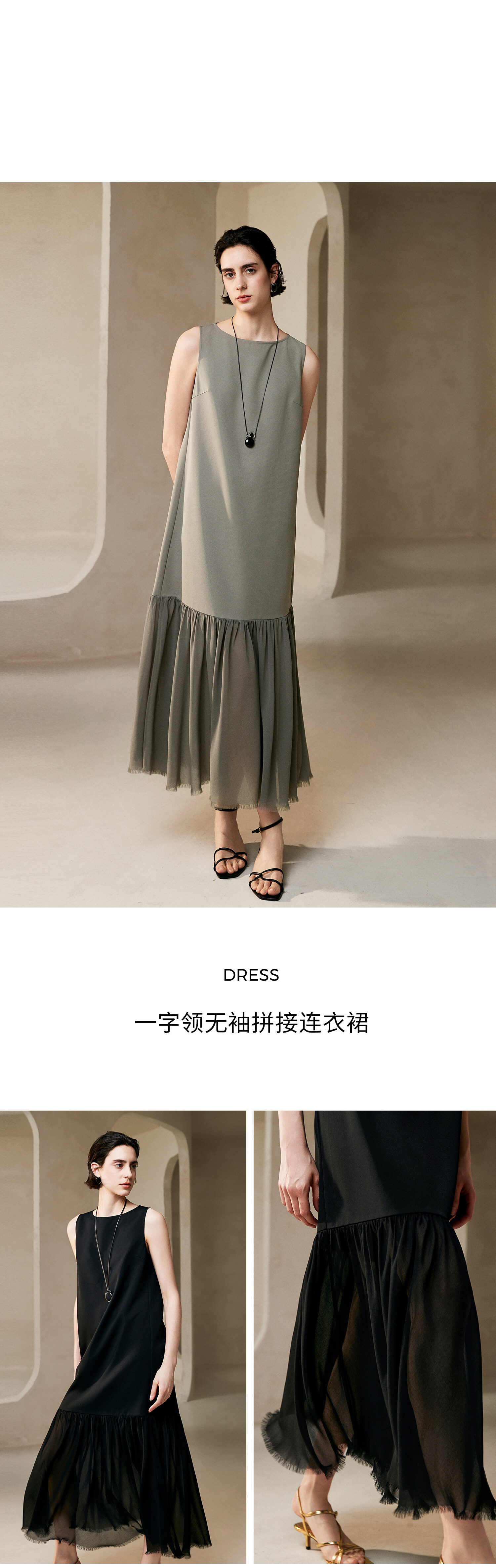 棉仓363616022初棉一字领无袖拼接连衣裙