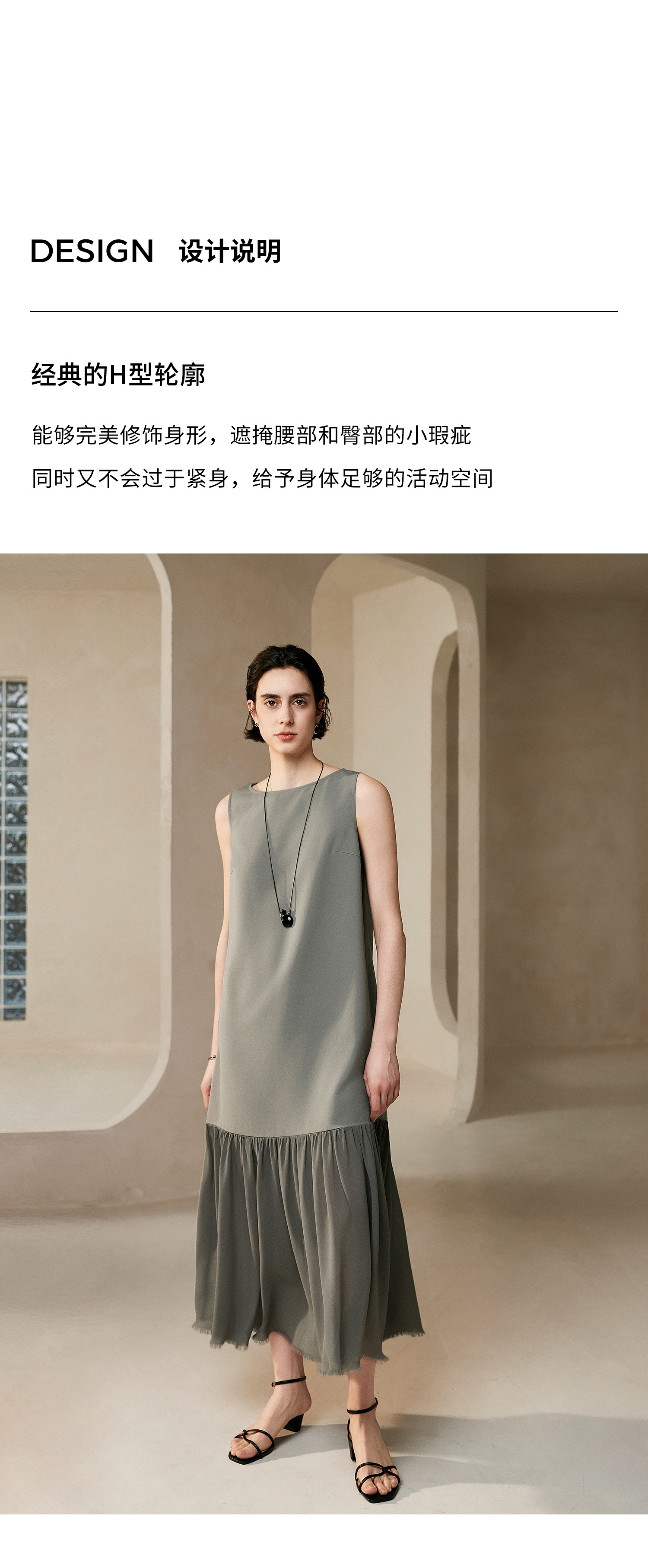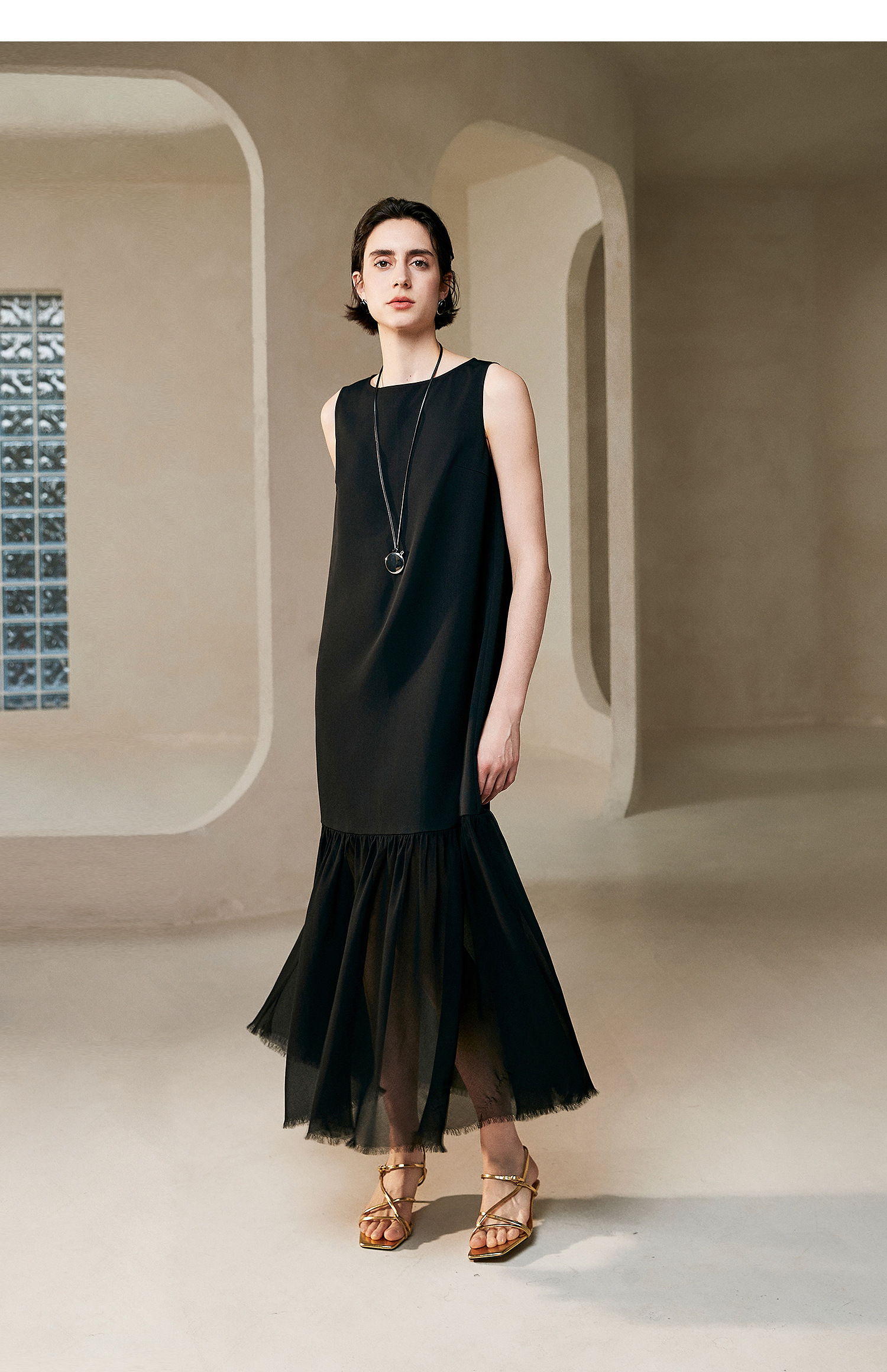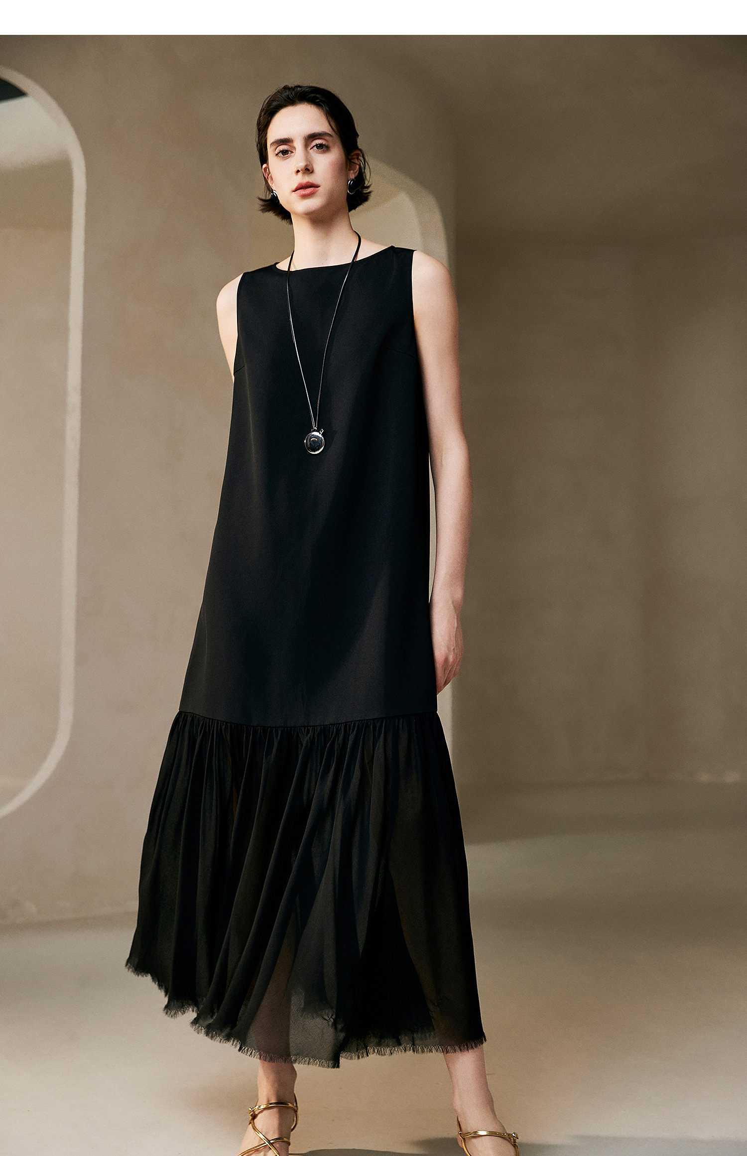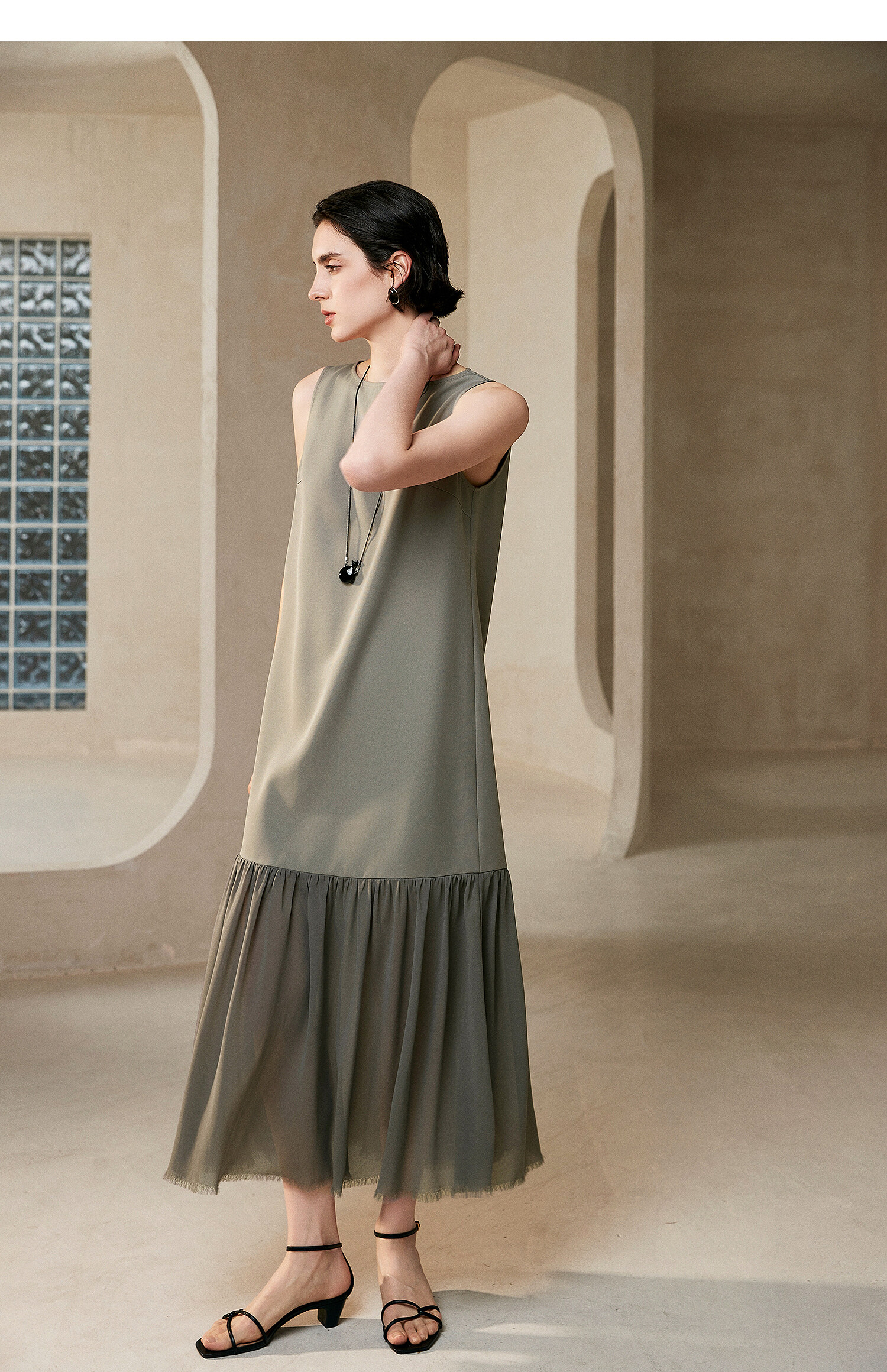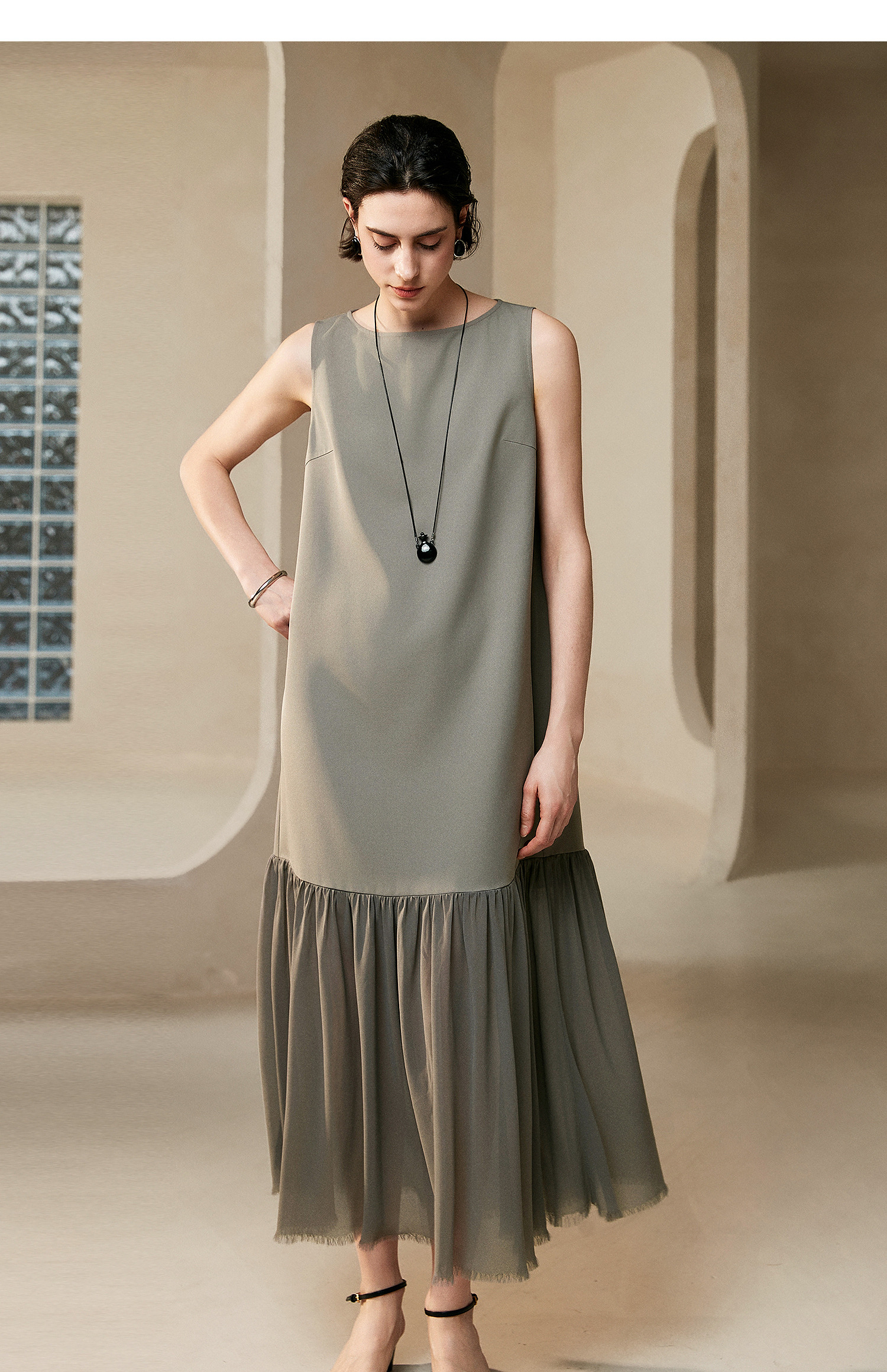 棉仓363616022初棉一字领无袖拼接连衣裙