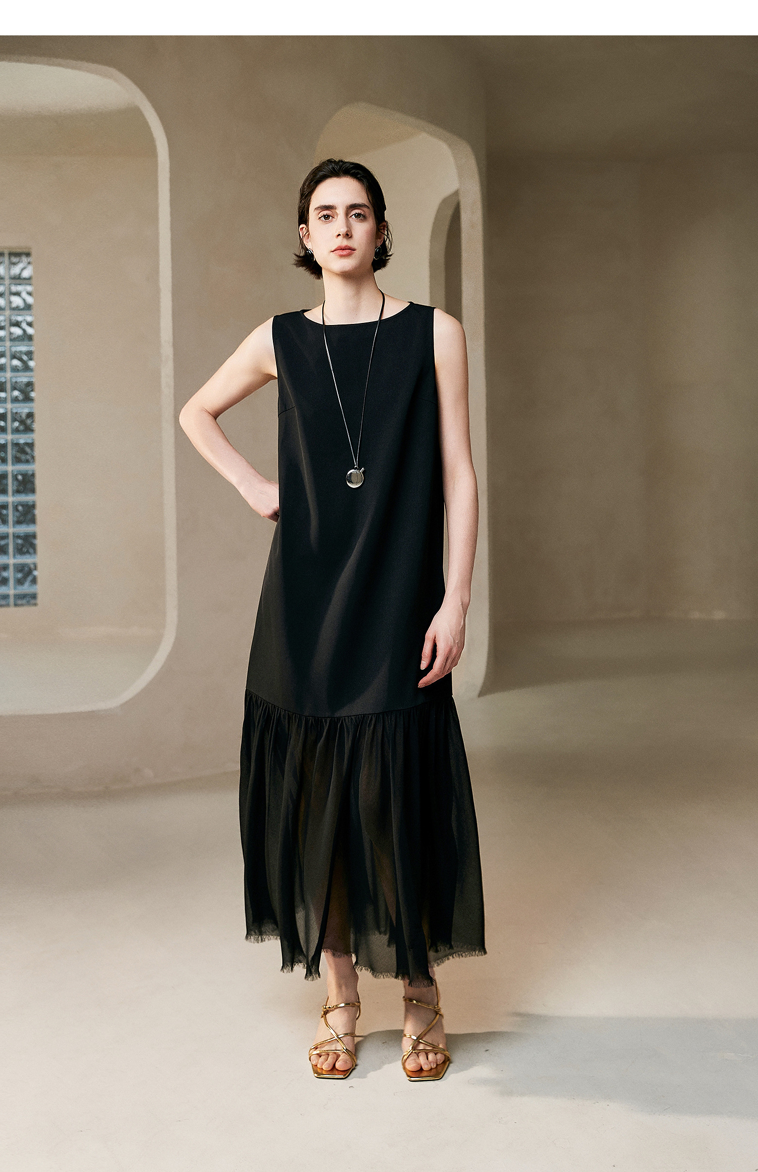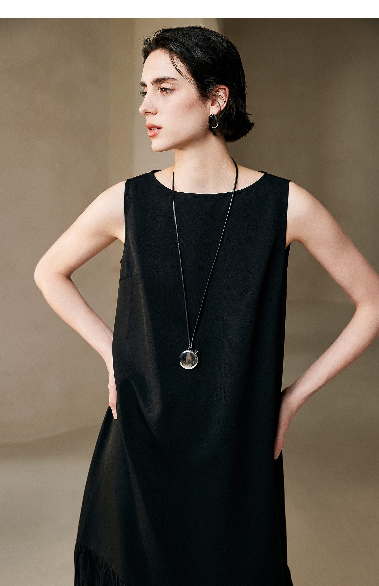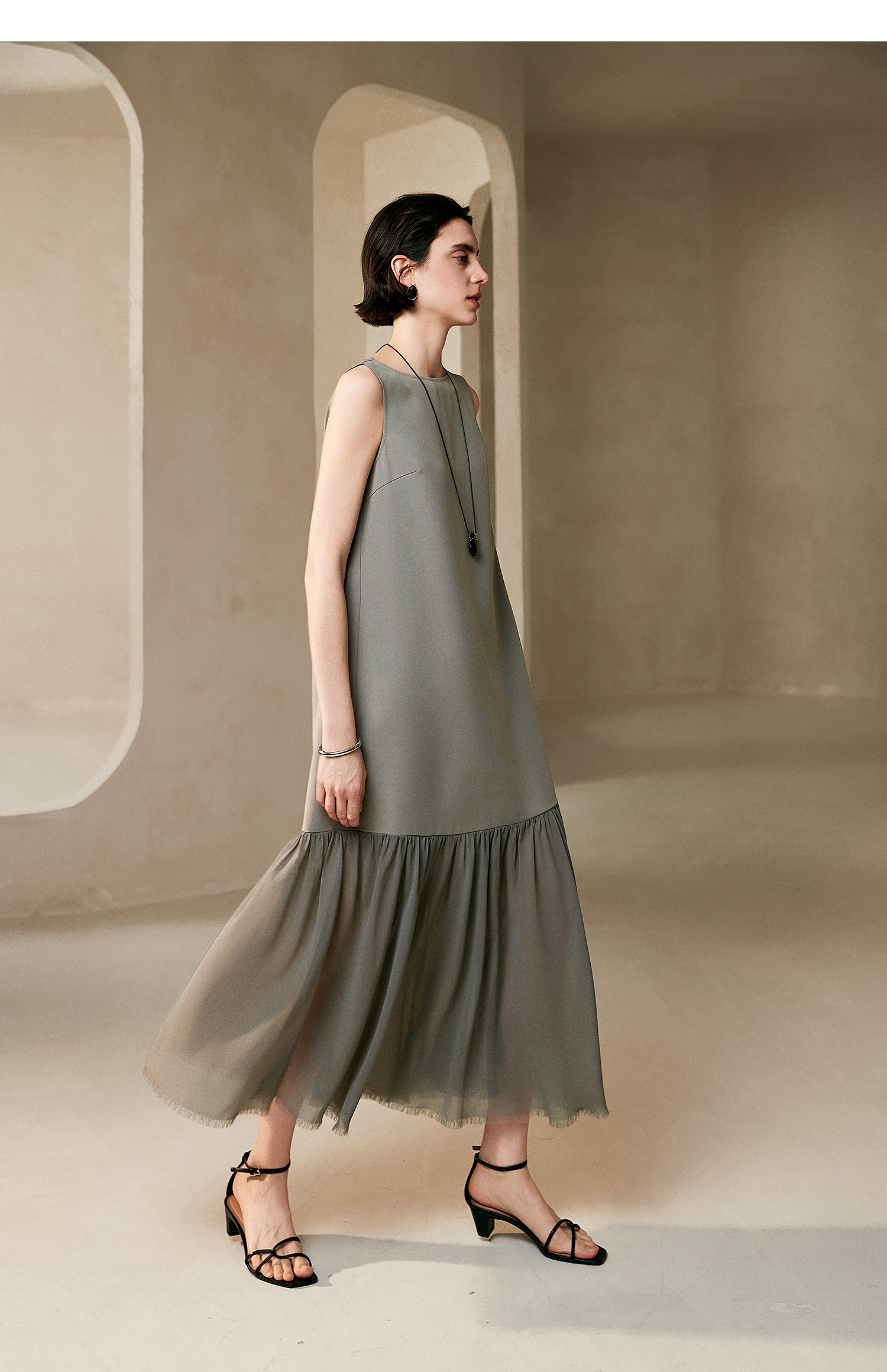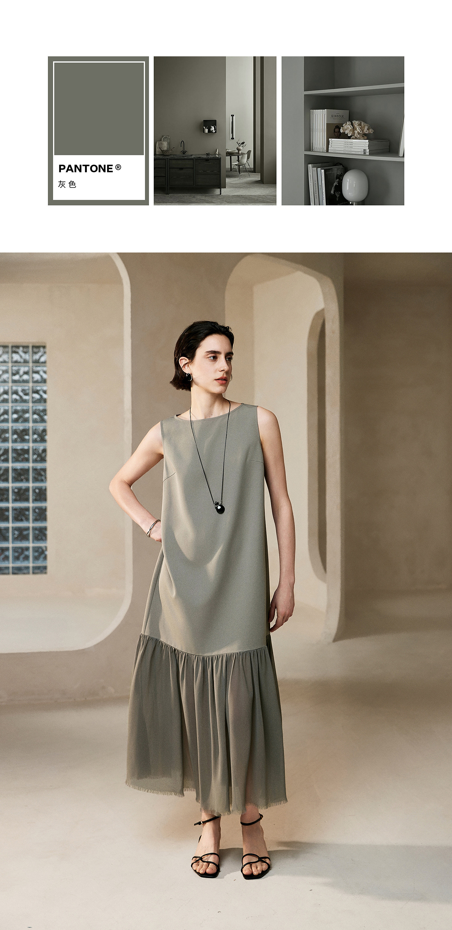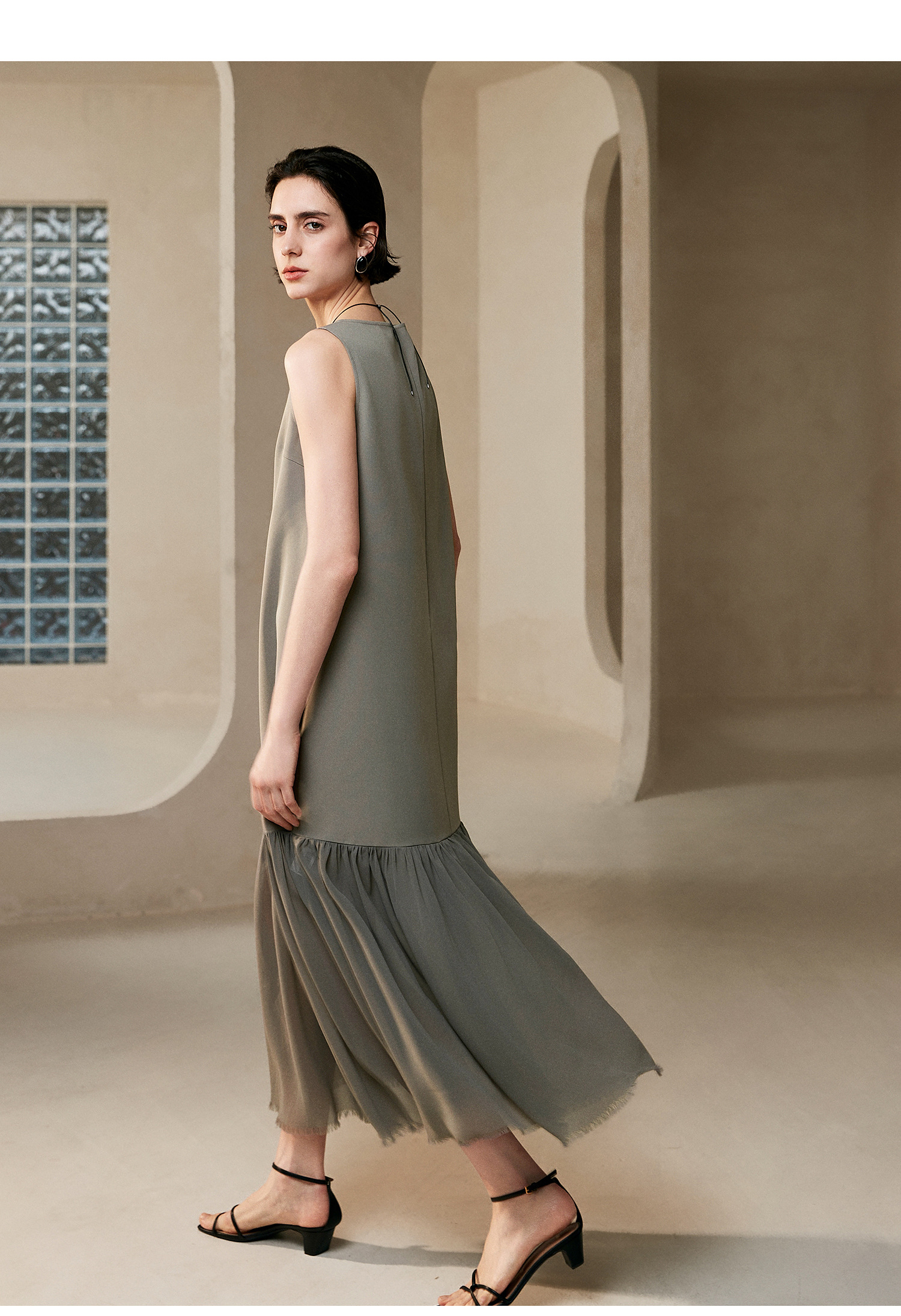 棉仓363616022初棉一字领无袖拼接连衣裙