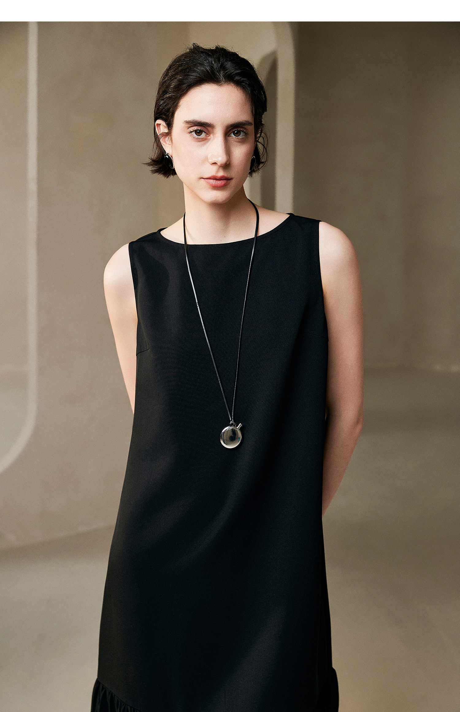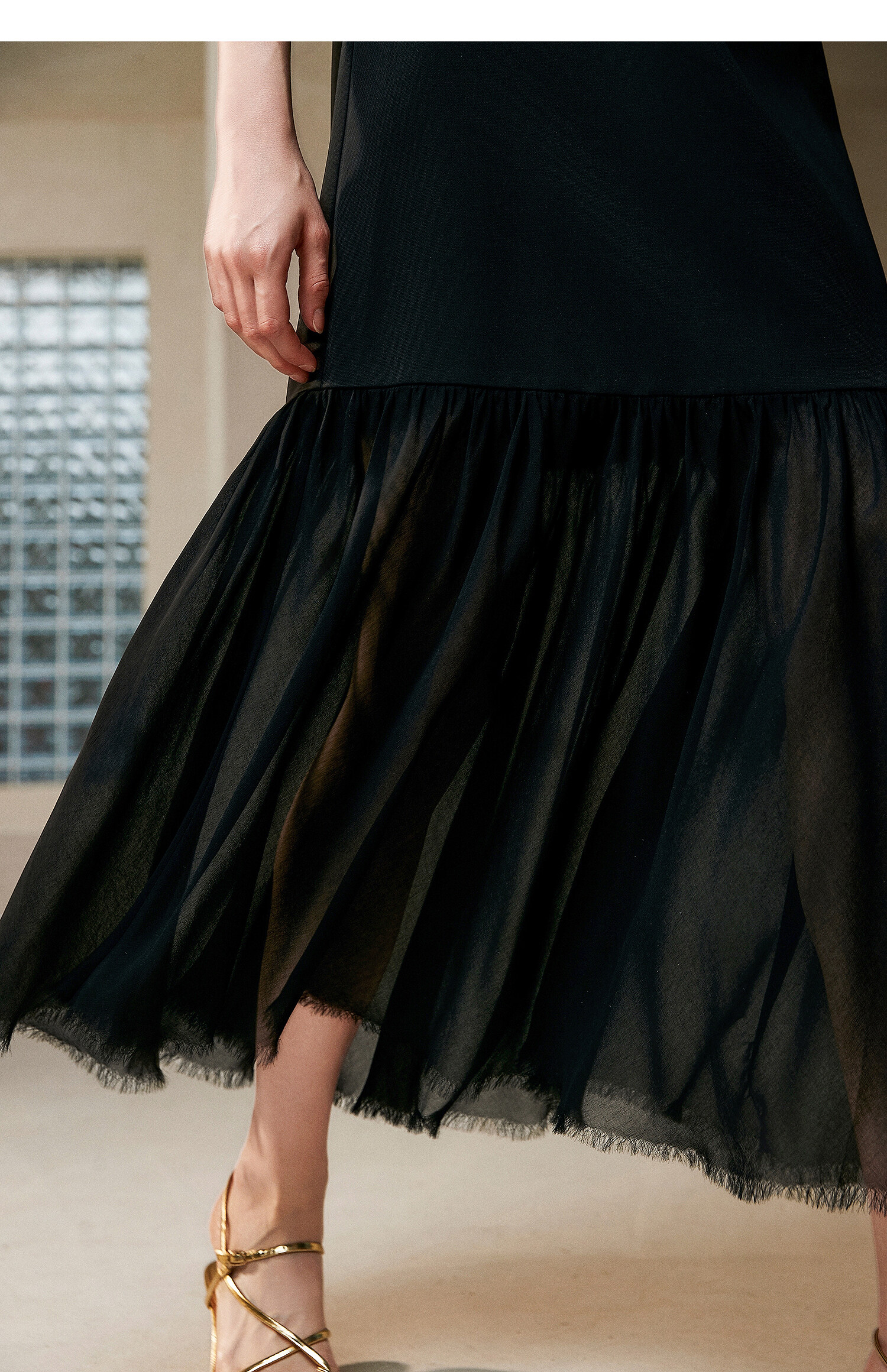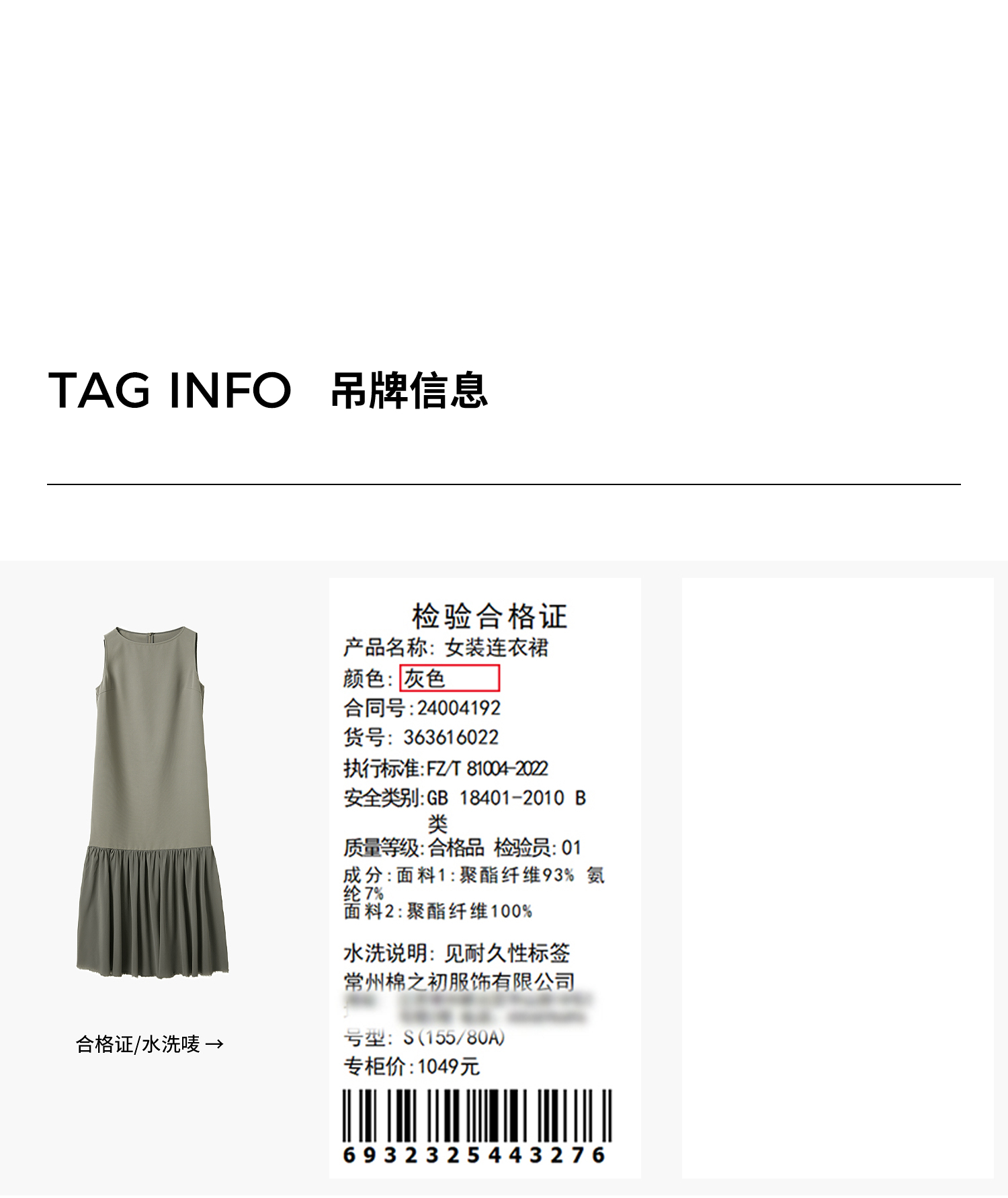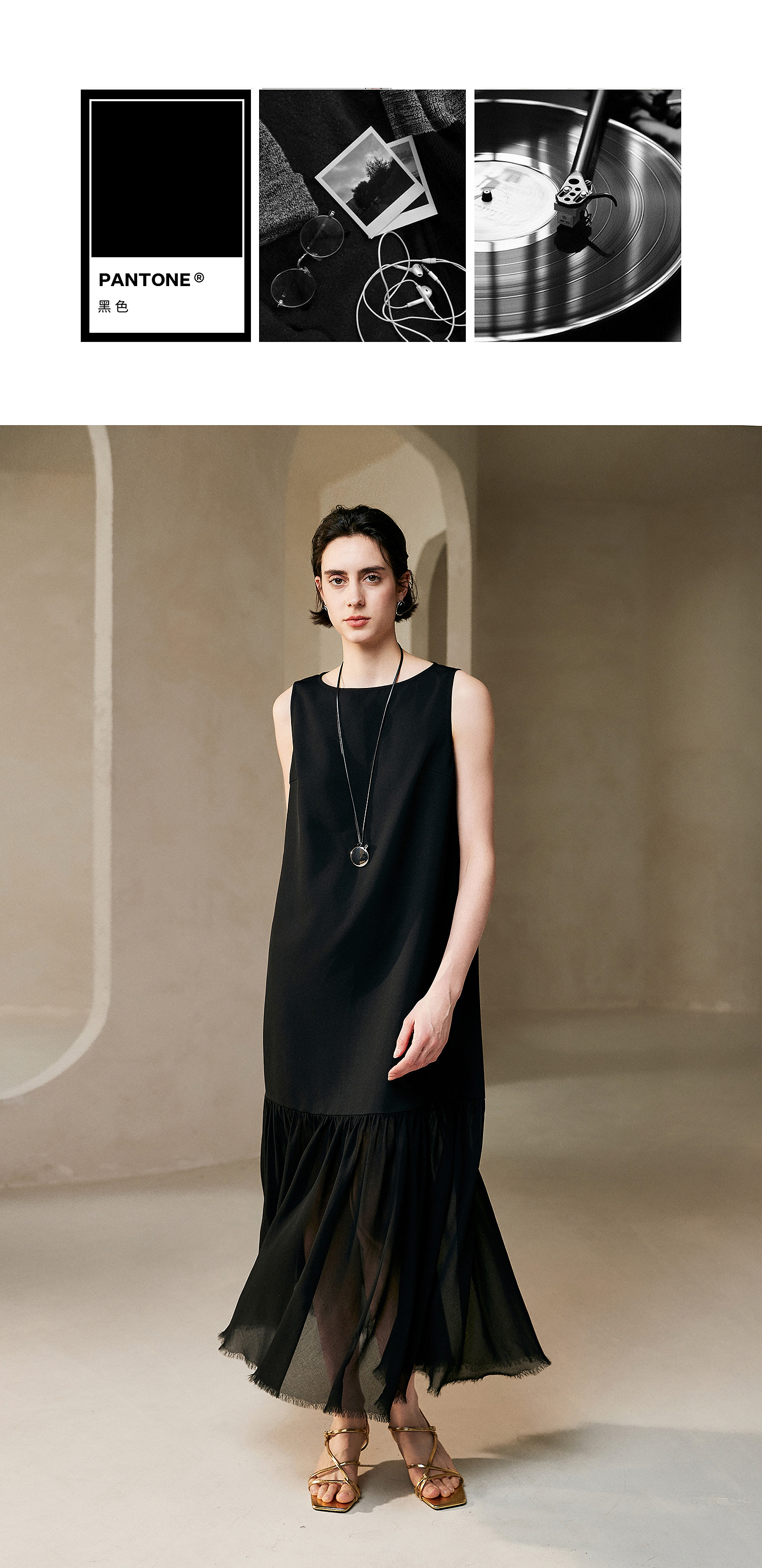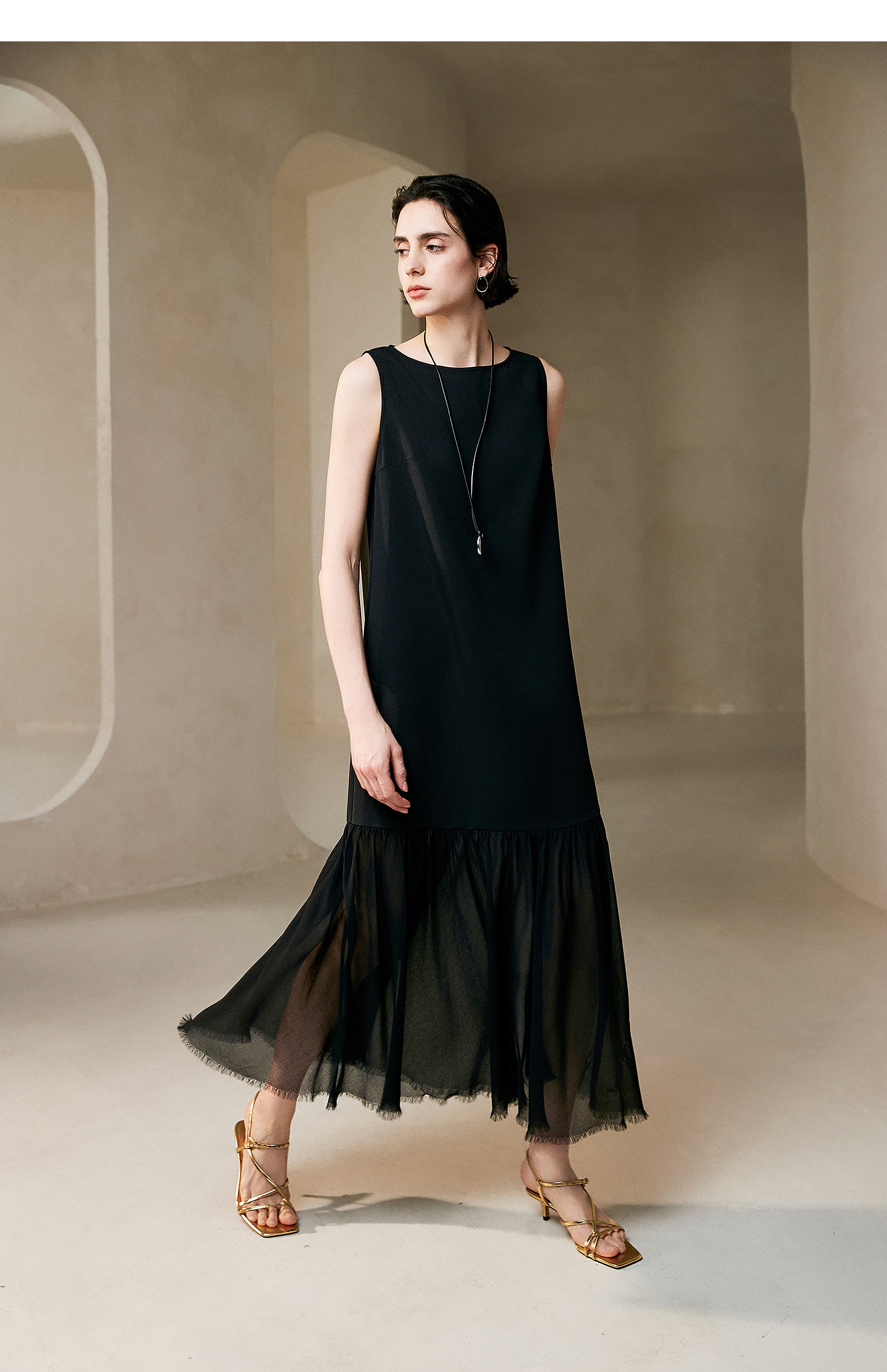 棉仓363616022初棉一字领无袖拼接连衣裙