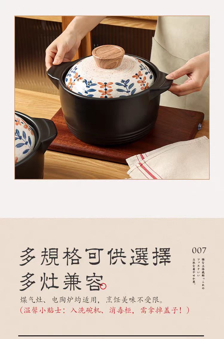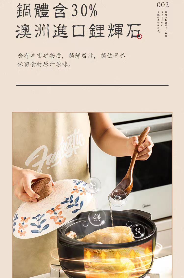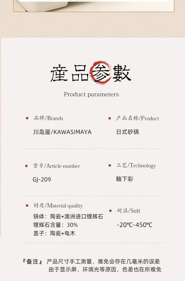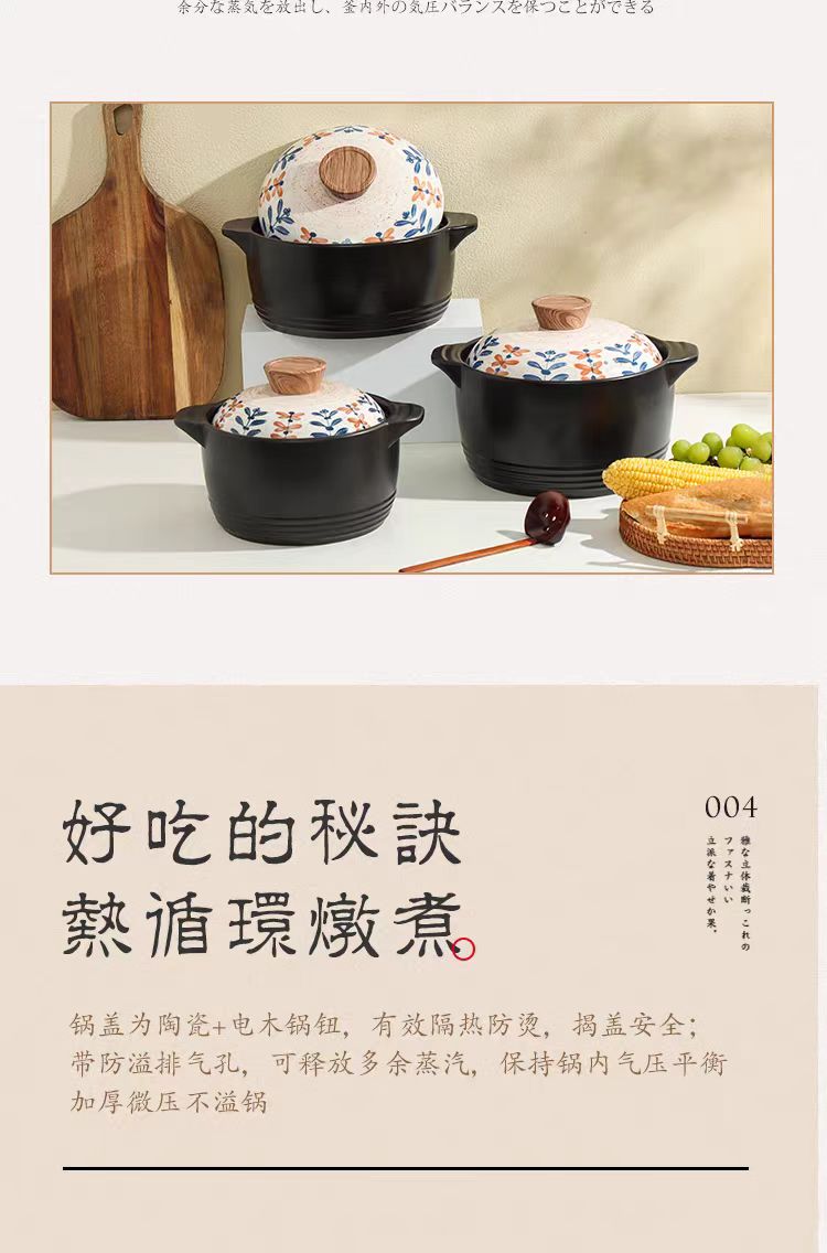 4楼Eubelle欧蓓 川岛屋日式砂锅煲耐高温 燃气灶 大容量炖汤煲汤锅 活动价:158元