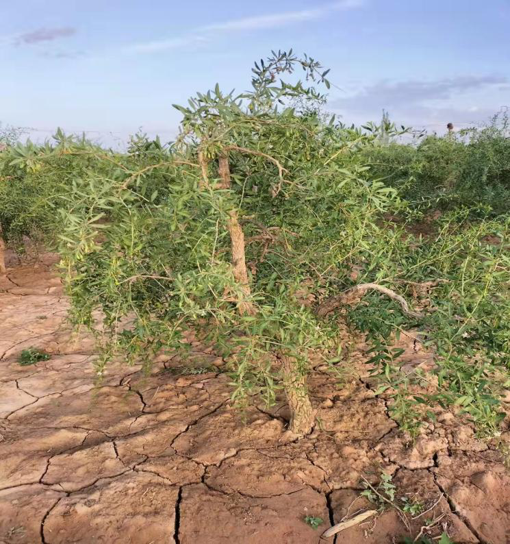 2012年天气大旱,引黄河水灌溉,修渠铺渠花了整整两年时间,枸杞颗粒无收。那一年爷爷76岁,爸爸41岁,枸杞树2岁。