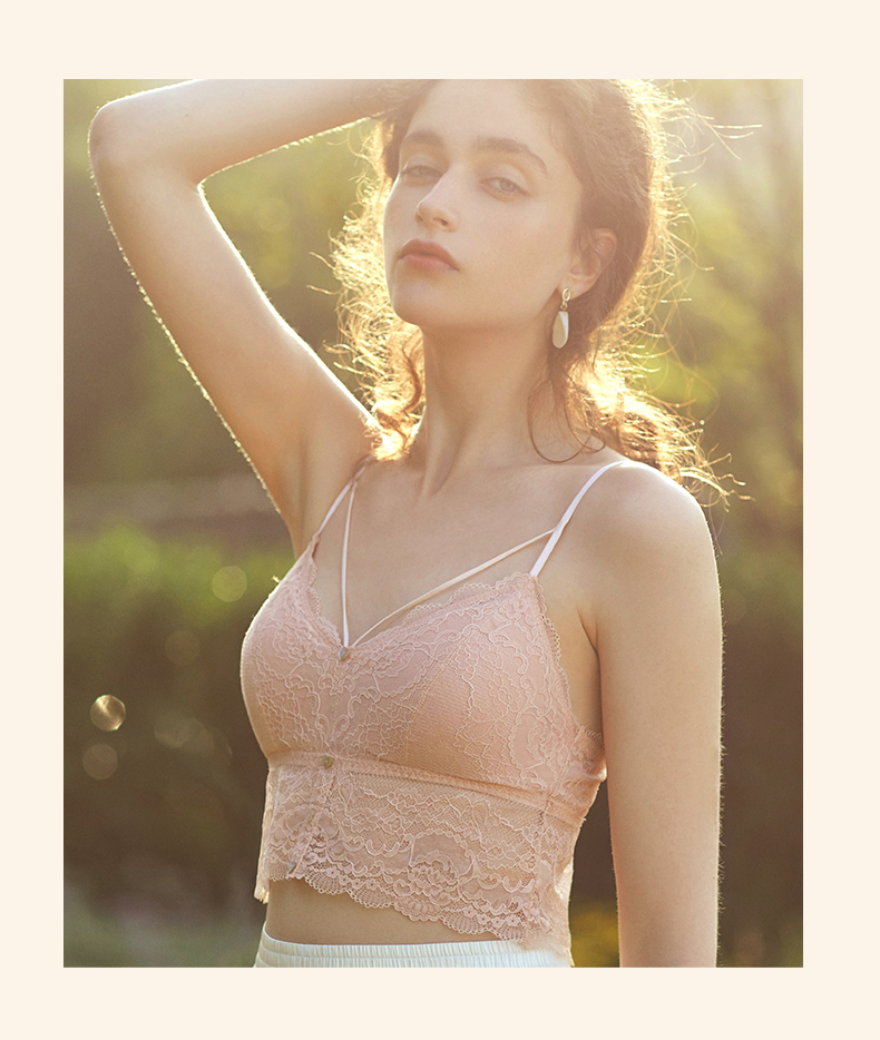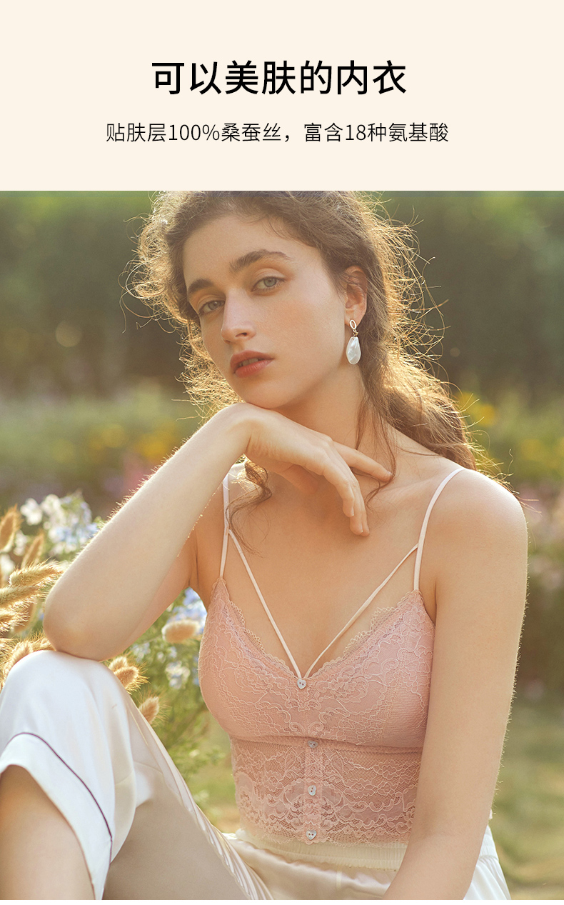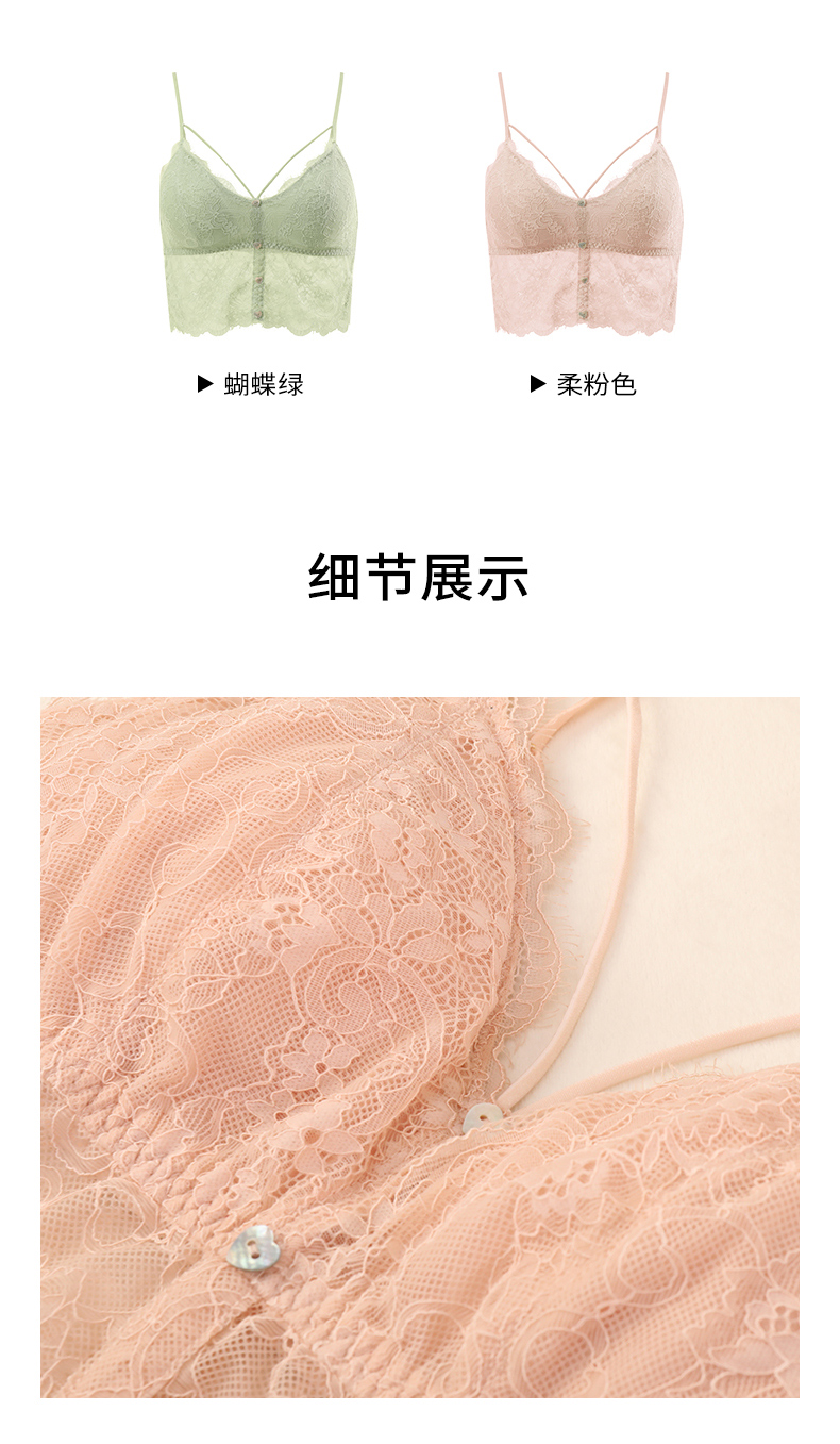 金三塔法式少女内衣园中少女纯欲绑带爱心扣胸罩真丝无钢圈文胸 NZFBC396
