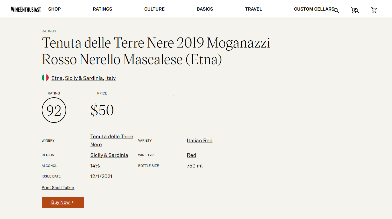 这份殊荣,便属于今日主角——来自意大利西西里亚岛火山埃特纳(Etna)的Tenuta Delle。
